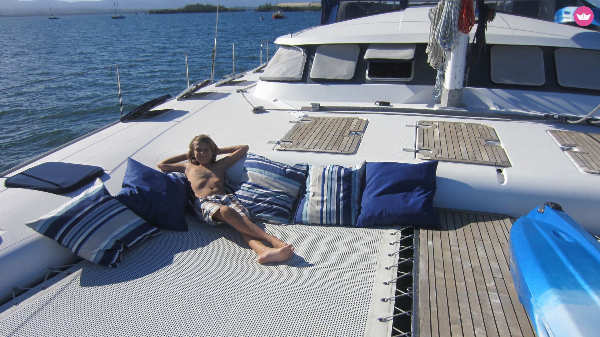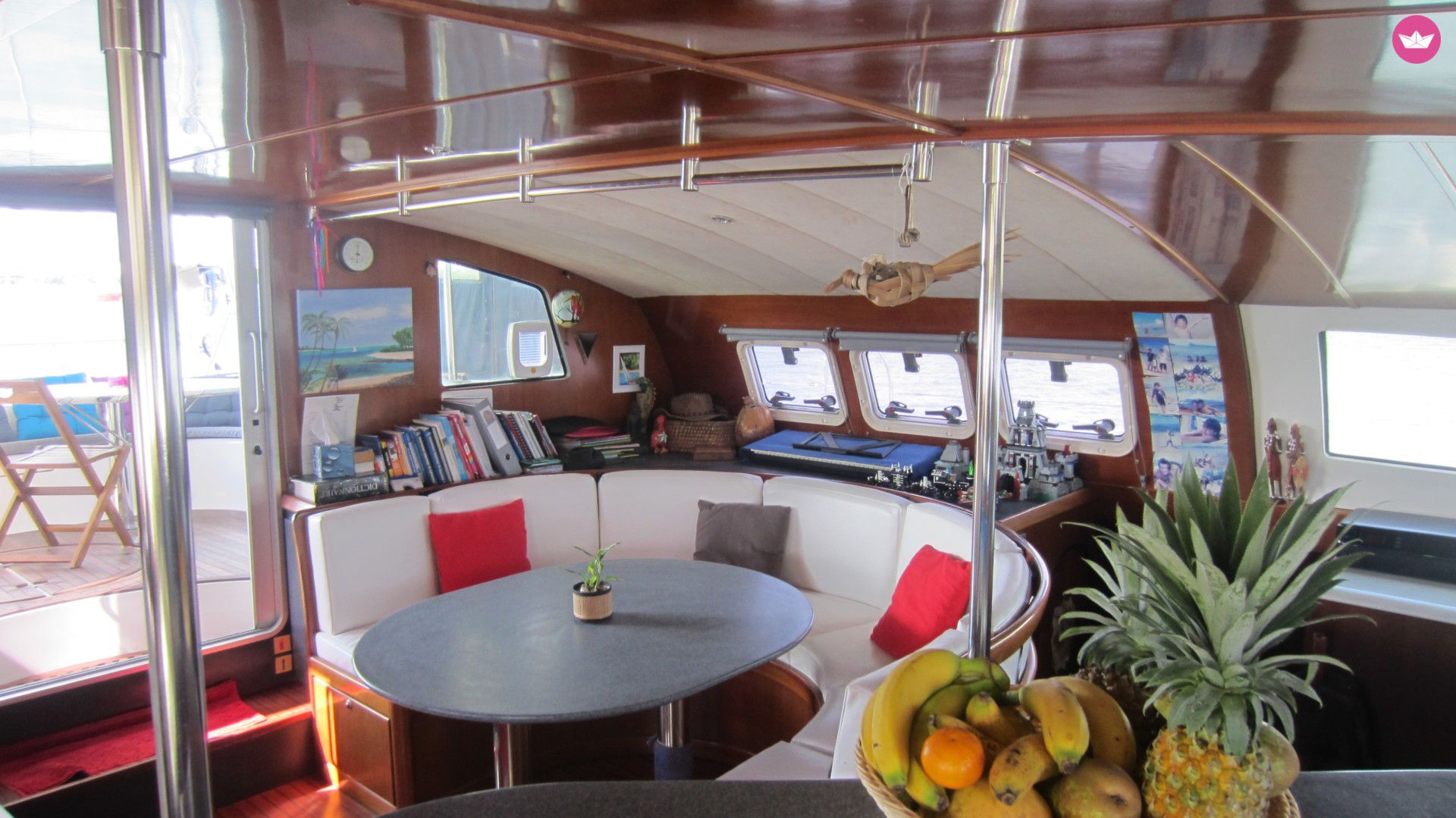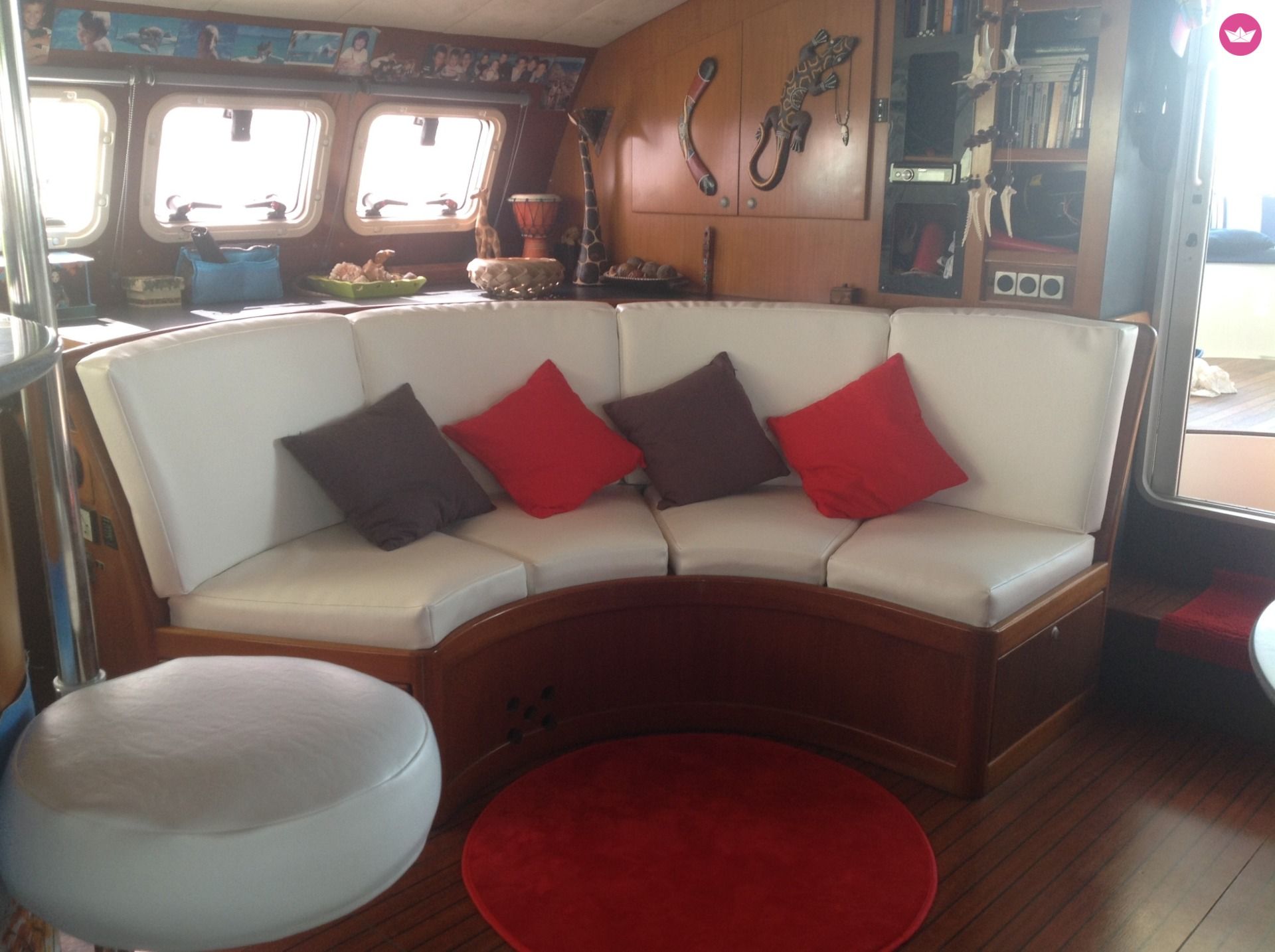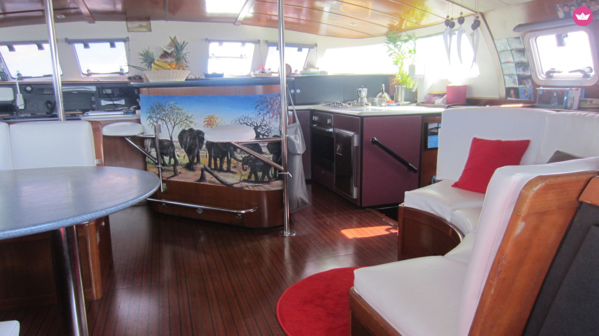 Description of Pascal's catamaran , En grand voyage autour du monde, venez profiter de notre expérience en vous proposant des croisières de rêves au rythme de notre parcours. Catamaran de 17 mètres offrant de très grands volumes et espaces de vie. Entièrement équipé pour un tour du monde en complète autonomie (eau, électricité, réfrigérateur, congélateur...) Nous vous invitons à venir passer une croisière inoubliable à bord du Islands Coyote ou nous vous feront découvrir la navigation sous voile, la ballade aquatique, la ballade en canoë kayak, la plongée sous-marine, la chasse sous marine, la pêche au gros... Le tarif est une formule en pension complète pour 2 personnes et par semaine. A votre service Pascal le skipper, Mireille votre hôtesse, Swann le mousse, Beepbeep le chat du bord et plume la dernière recrue (petite chienne shitzu). Capacité d'accueil maxi 6 personnes/3 cabines privées avec toilettes privés. Les réservations s'effectues à la cabine. Listes des prix pour 7 jours : Basse saison de octobre à mai inclus Prix 7 jours pour 2 personnes basse saison : 5 320€. Prix 7 jours pour 4 personnes basse saison : 8 100€. Prix 7 jours pour 6 personnes basse saison : 10 500€. Haute saison de juin à septembre inclus Prix 7 jours pour 2 personnes haute saison : 6 385€. Prix 7 jours pour 4 personnes haute saison : 9 320€. Prix 7 jours pour 6 personnes haute saison : 12 600€. Notre catamaran Marquise 56 du chantier Fountaine Pajot de 17,2 mètres par 8,15 mètres, vous assurera une croisière confortable et en toute sécurité sur une unité offrant de très grandes qualité marine. CONDITIONS : - Inclus dans le tarif : la cabine double pour deux personnes, le skipper, l’hôtesse, la literie (draps, serviettes de toilette), les repas (petit-déjeuner traditionnel français, déjeuner de type snack et dîner avec dessert), équipements de pêche au gros, équipements de chasse sous marine, 2 canoës kayak, équipement (palme masque et tuba) pour le snorkelling. - Non inclus dans le tarif : Les vols et billets d'avion, les transferts aéroport, les activités, restaurants et excursion à terre, les boissons (une carte de boissons est disponible à bord), les heures moteur pour le groupe électrogène et les moteurs : 20€/heures, les frais de port, de marina et de bouées de mouillages. - En option : plongée bouteilles, 3 équipements complets et neufs ainsi qu'un compresseur de plongée. Pour les enfants bouée tractée derrière l'annexe. A notre bord pas de croisière en trop grand nombre, l'ambiance est plutôt familiale et en réservation privative. Nos croisières sont modulables, afin de profiter pleinement des mouillages sans naviguer chaque jour, il est préférable de choisir des durées de 12 à 15 jours. - Notre capacité d’accueil pour le plus grand confort de tous est d'un maximum de 6 personnes. Le programme de 2018/2021 : - De mai 2018 à mai 2021 : croisière Tahiti, croisière Tuamotu, croisière iles sous le vent, croisière polynesie, croisière marquises. A très bientôt pour partager avec vous des vacances inoubliables.