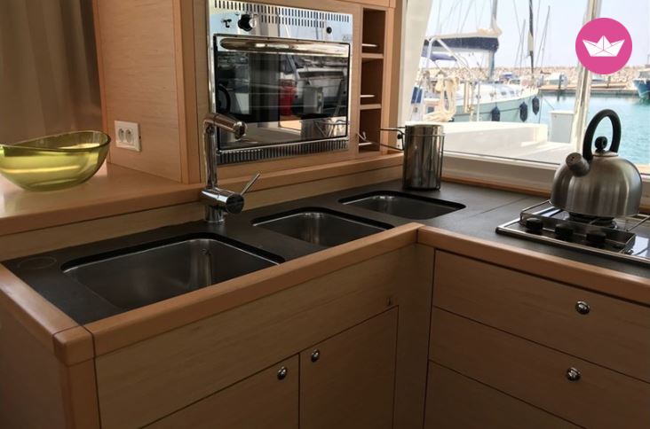 Description of Paolo's catamaran , "Ninfea" é un Lagoon 400 S2, tipico catamarano della casa costruttrice francese, un modello classico dotato di ogni comfort e moderno nelle sue dotazioni di bordo. Caloroso, e contemporaneo nei suoi interni, questo catamarano é adatto a qualsiasi tipo di navigazione sia essa sottocosta o d'altura. Gli spostamenti a bordo sono facili, il quadrato é grande e particolarmente luminoso. Insomma nel complesso questo restyling del lagoon 400 é sicuramento azzeccato con dettagli di pregio e una risistemazione degli spazi interni e cabine che aumenta lo spazio a bordo percepito. Il nuovo porto della Marina d’Arechi propone ormeggi dotati dei piu’ moderni sistemi di fornitura idrica, elettrica e sanitaria. In porssimità della marina troverete numerosi punti di ristoro tra cui una pasticceria artigianale per poter gustare il Babà di Napoli e alte prelibatezze di altissima qualità. Una spiaggia privata é a disposizione dei diportisti affacciata sul golfo di Salerno, tra costiera amalfitana e Cilento. Amalfi, Ischia e Capri sono facilmente raggiungibili dal golfo di Salerno. Una vacanza in barca in costiera amalfitana é un’esperienza unica in uno dei luoghi piu’ belli d’Italia e del Mediterraneo. Patrimonio modiale dell’UNESCO é nota per l’eterogeneità dei suoi centri dotati di carattere proprio con tradizioni locali proprie. Il Limoncello é uno dei prodotti tipici che potrete degustare, ma anche le Alici e le conserve di pesce di Cetara, cosi’ come le ceramiche prodotte e decorate a mano a Vietri.