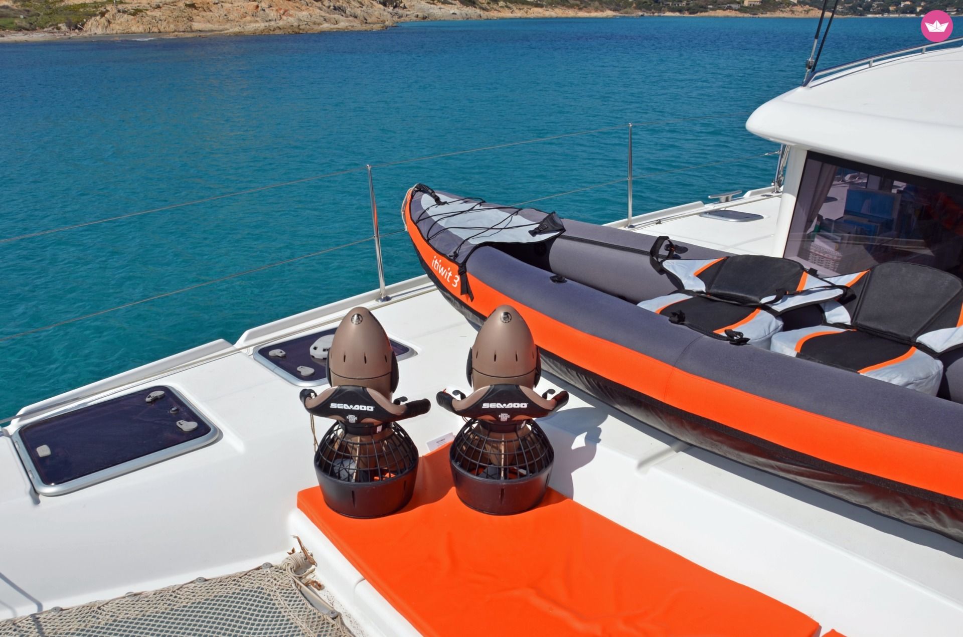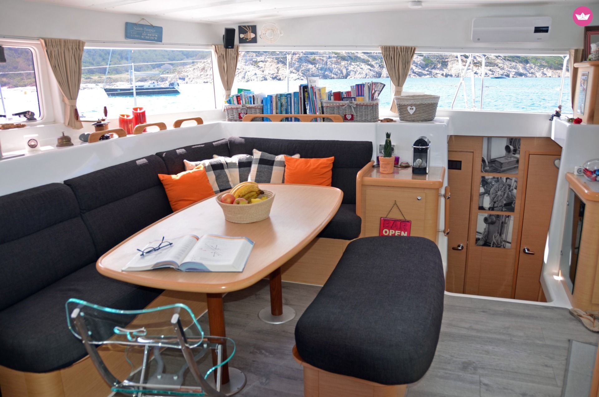 Description of François's catamaran , Bateaux de propriétaires, nous avons choisi le Lagoon 420 pour son confort et son habitabilité afin d'apporter à nos invités une attention toute particulière. Nous pouvons accueillir 10 personnes la journée et 4 personnes pour les séjours ( 2 cabines privatisées ). Notre catamaran est amarré au cœur de la magnifique cité lacustre de Port Grimaud. Nous organisons des croisières en pension complète (sauf l'alcool.) Les repas sont réalisés par Carole à partir de produits frais uniquement. Le linge de maison (draps, serviettes, draps de bains, ...) sont inclus. **** TOUT EST COMPRIS ***** CARBURANT COMPRIS. Ménage de fin séjour compris... Pas de mauvaises surprises Tout est prévu pour votre plaisir; masques, palmes, tubas, matériel de pêche, canoë 3 pl, 2 scooters sous-marin, paddle, Gopro, livres, tv par satellite, musique (15000 morceaux, connexion Bluetooth) Hi-Fi Bose intérieur et extérieur. Éclairage sous marin pour les bains de nuit... Nous déterminons ensemble, et avec Éole le parcours qui vous convient. Pour une escapade en Corse, nous contacter. Pour toute demande concernant journée + nuitée merci de nous contacter. A votre disposition pour trouver la formule la plus adaptée à votre projet ! Pour votre confort, nous avons à bord un Déssalinisateur, un groupe électrogène 8kw. 3 réfrigérateurs, 1 congélateur, Nespresso, 1 grande plancha uniquement le soir (pour le poisson pêché par exemple) 2 cabines équipées de literie de qualité 160x200 et de ventilateurs, elles ont leurs propres salles de bains et wc électriques. Annexe fond rigide avec moteur de 15cv. ****Vous n'avez que vos effets personnels à amener, votre sourire et votre bonne humeur*** Notre tarif du 15 octobre au 15 mai, déduire 10% Au plaisir de vous recevoir à bord. Pour tout autre demande nous contacter. Carole et François ⛵️⛵️ Tarif: la journée 1350€ - 2 jours 3097€ - 3 jours 4458€ - 4 jours 5591€ - 5 jours 6638€ - 6 jours 7567€ - la semaine 8387€ -