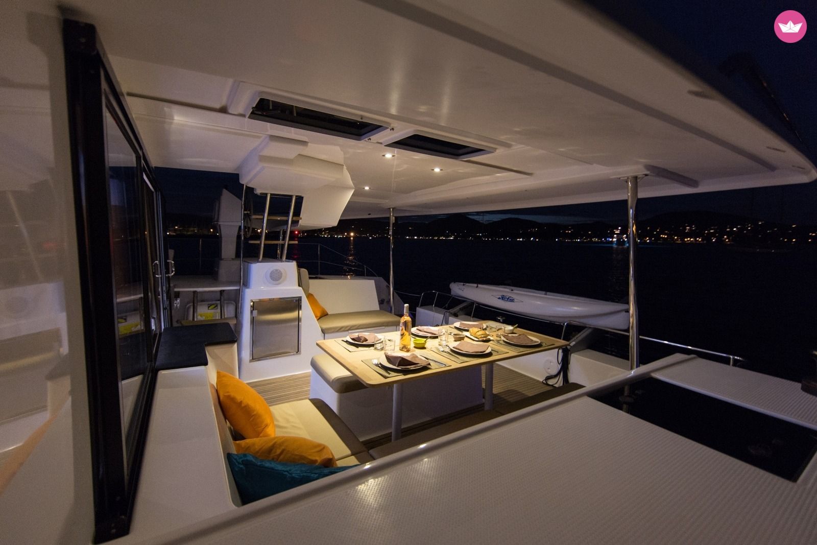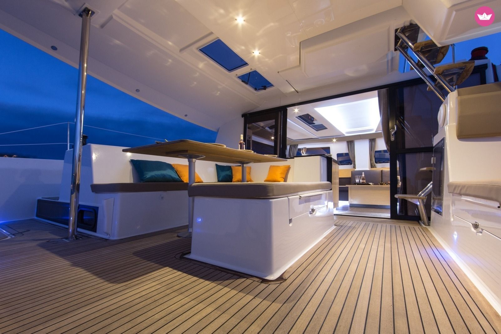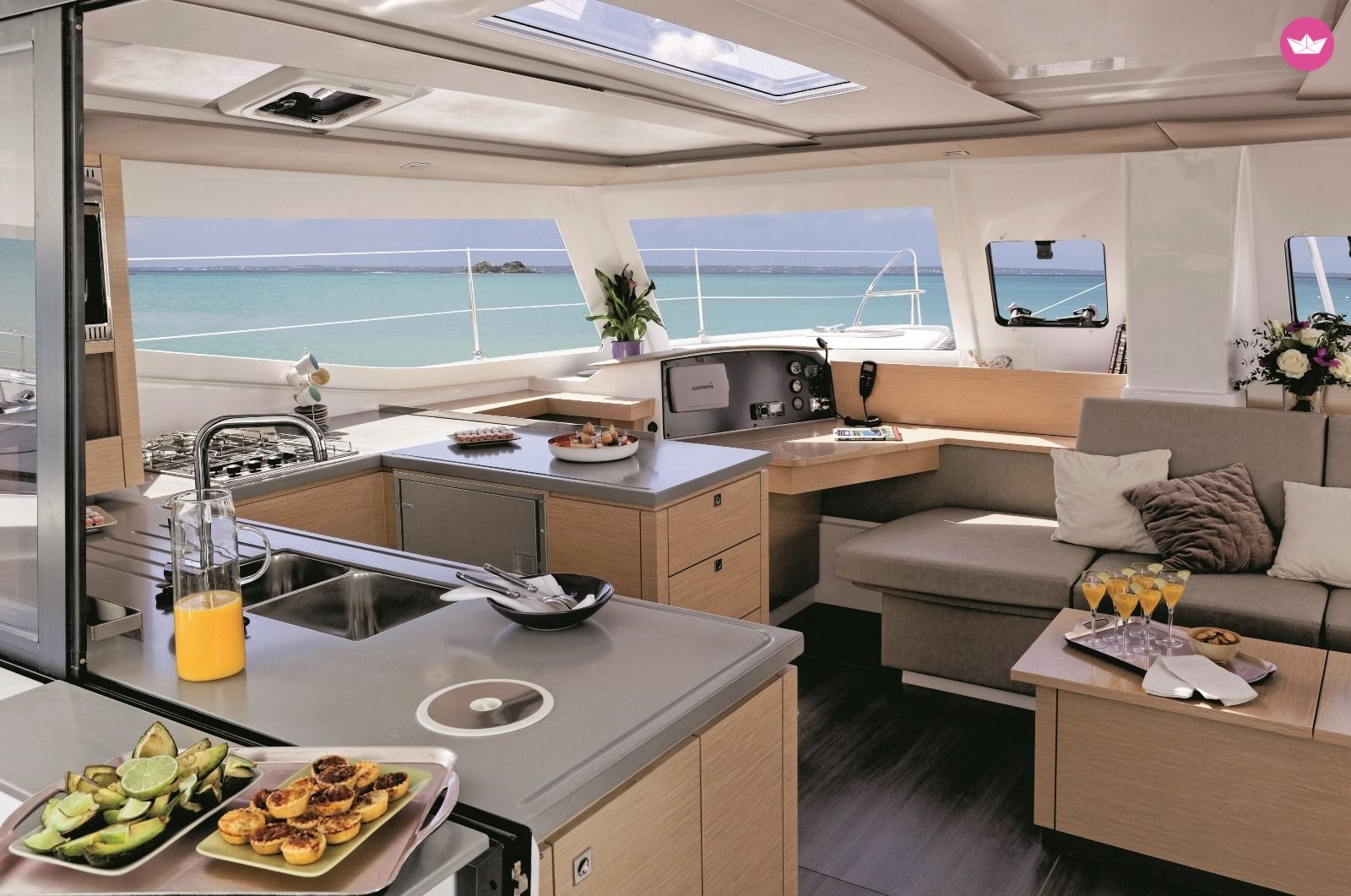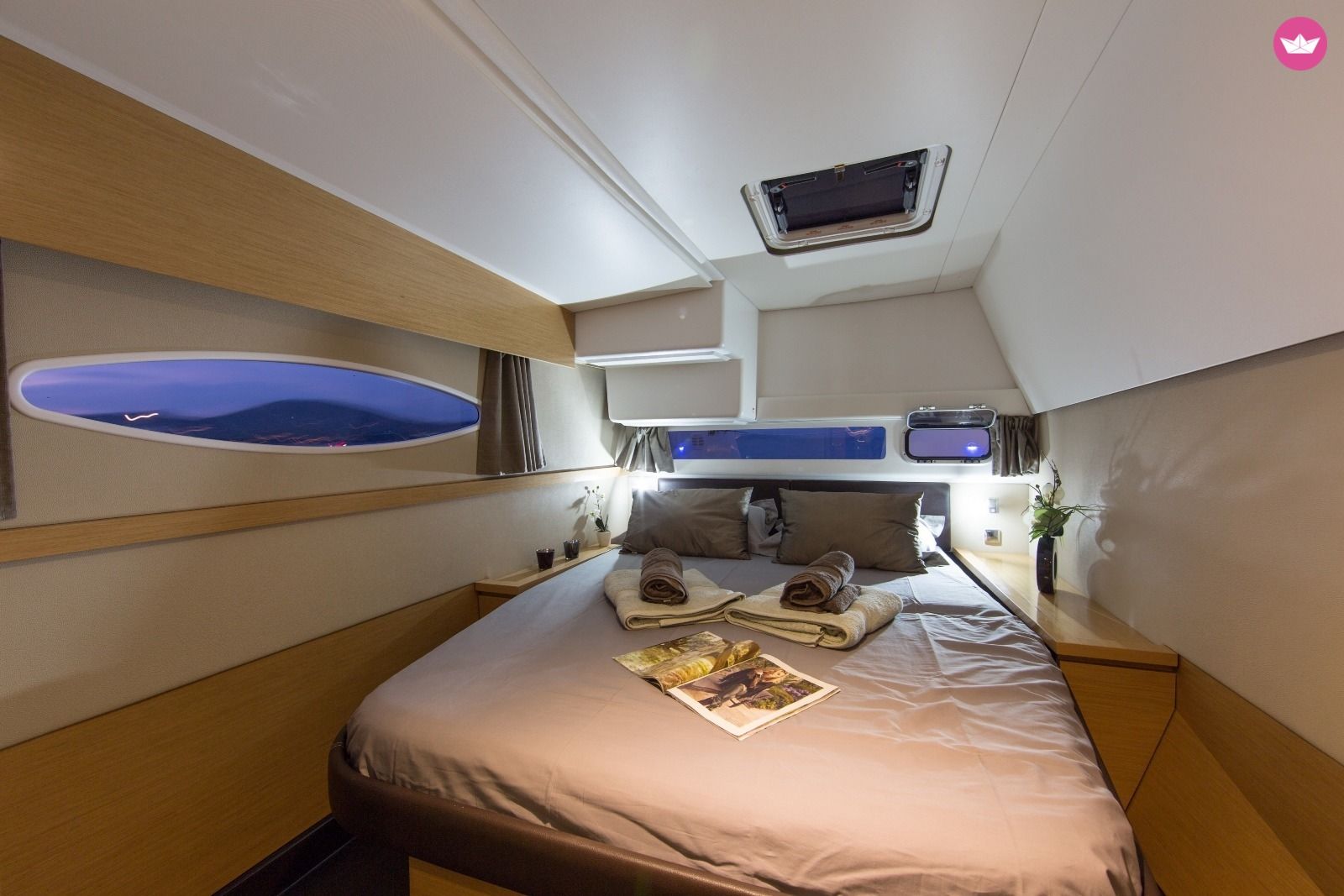 Description of Yves's catamaran Abaca is a Hélia 44 from 2015, the most recent sailing catamaran in Nouméa's professional fleet. It is equipped with the latest innovations in terms of comfort and livability, including three cabins equipped with queen size beds, each equipped with a private bathroom with electric flush toilet, a large open space cockpit and a solarium. The free Wifi allows you to connect as soon as the boat is near the coast. The Isle of Pines, located at a distance of one or two days sailing and the Loyalty Islands, Mare, Lifou and Ouvea, at a distance of two or three days sailing, offer opportunities for anchoring in beautiful scenery! Cruise ideas ... For a 8 days/7nights cruise to the Isle of Pines The usual program is as follows (modified en route weather permitting): Day 1 Departure, 17:00 getting underway from Noumea, we sail a few hours and anchor for the night near the island Ouen (see map previously sent). Day 2 : sailing to a southern island, snorkelling and trekking on a the beach Day 3: crossing to the isle of pines reached in the afternoon and mooring in the bay of Kuto or Kanumera, possibility to walk around the peninsula of Kuto Day 4: morning possibility of visit of the ruins of the prison and / or snorkelling around the rock Kanumera, noon anchor off the Ilot Brosse for a lobster meal (upon availability of the head of the tribe) this give the possibility to cross the island (20min) to join the Nursery blacktip shark babies. Evening back to Kuto or Kanumera Day 5: navigation to reach the Bay of Oro, optionally you can do instead of that a navigation route by canoe in the bay Upi and reach after a walk of 30 minutes the natural pool known for its fish and corals . I can book these activities for you and you pay directly to local providers, shore lunch cooked bougna underground. Day 6: Sailing to reach the Bay of Gadji, snorkelling over the coral and short stroll on an island. Day 7: navigation to another southern island , snorkelling and trek on the beach Day 8 :navigation to Noumea with a stop for lunch