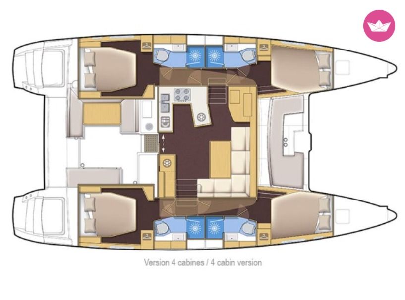 Description of Tamara's catamaran Our Lagoon 450F Kat El Mar is catamaran that will provide you perfect sailing experience. Its excellent performances, comfort and stability are winning combination for unforgettable memories on the Adriatic. You can charter this extraordinary catamaran from Trogir, city near Split in the middle of the Dalmatian coast. With this catamaran, you will have an opportunity to discover amazing islands Hvar and Brač, Blue Cave at island Vis and island Šolta. our professional crew will be there to ensure you perfect time on the board. There are four cabins with double bed and two single bed cabins for the crew. If you have any questions feel free to contact me.