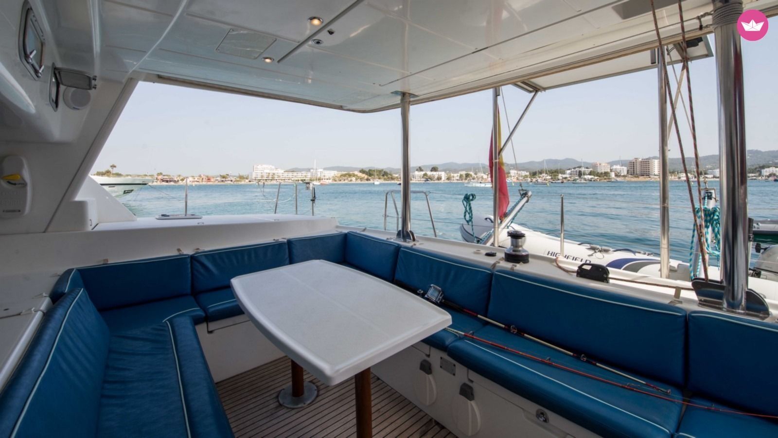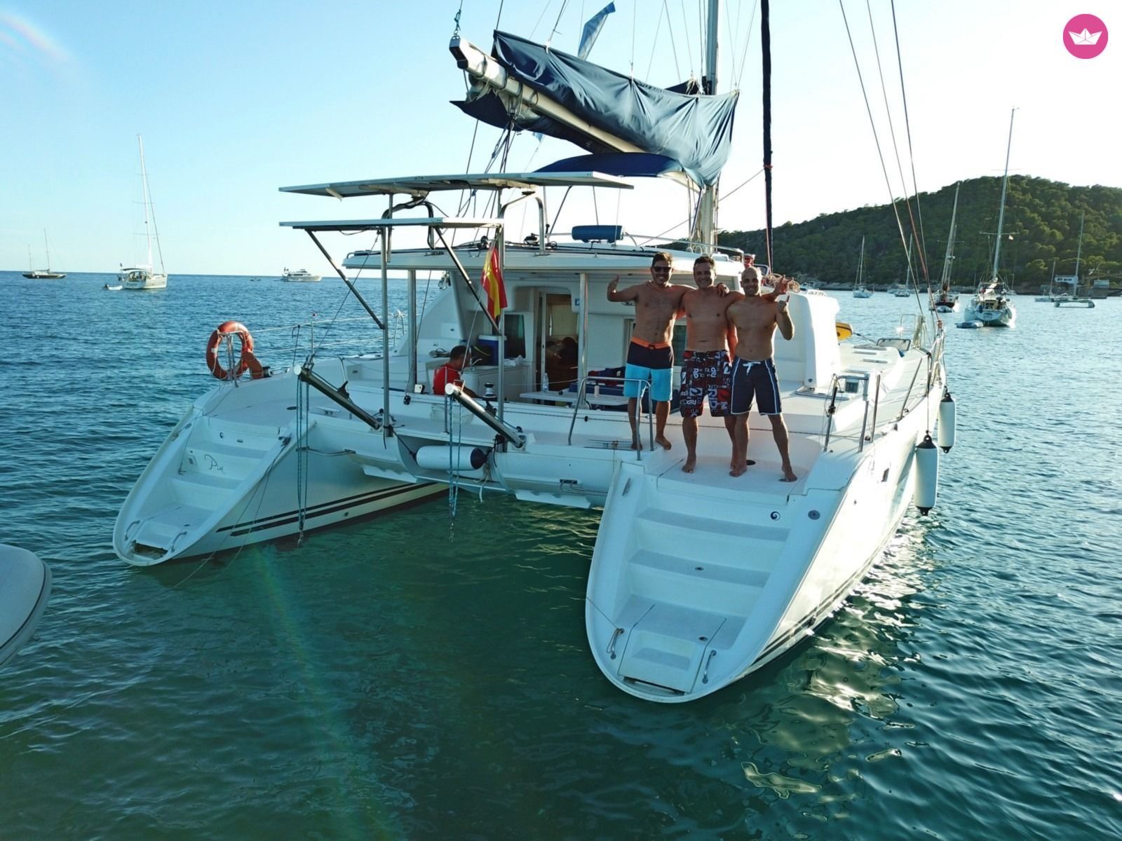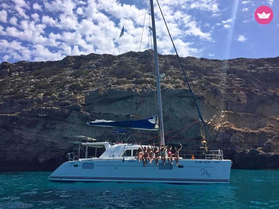 Description of Alejandro's catamaran , Pia es un catamaran que esta bien provisto para disfrutar tanto de estancias cortas como largas. En 2017 se ha realizado una reforma integral que supone que disfrutarás como si se tratara de un nuevo Lagoon 440, el modelo más confortable para vacacionar con capitan. Posee una cocina totalmente equipada que garantiza practicidad a la hora de cocinar. Con 2 neveras y un congelador, el alimento estará bien resguardado en las condiciones de calor del verano balear. La comodidad viene de la mano de una nuevas colchonetas exteriores asi como una red de proa única que no es molesta a la hora de recostarse en ella. En la popa la ducha de agua caliente y fría permite que te quites la sal luego de cada baño de mar. Para entretenerte al anclar se proveen colchonetas flotantes, tabla de SUP, equipo de snorkel con aletas y una hamaca para la siesta. Las luces de fondo harán que por las noches los peces se acerquen y disfrutes de ellos alrededor de Pia. El sistema de sonido tiene altavoces en el exterior y permite leer distintos formatos de musica, incluyendo USB, Auxiliar y CDs para que no le falte musica a tu viaje. Tambien una TV con conexion a chromecast está disponible tanto para ver los videos del dia como para distraerte con alguna pelicula. Los 900 litros de capacidad de agua que posee Pia son en general suficientes para la estadía, no obstante está a disposicion una potabilizadora para poder reponer agua en caso de falta. La energia cuenta con un inversor de 220V asi como cargadores USB para moviles y demás aparatos electronicos. Con 3 paneles solares que aprovechan la energia del sol se podrá reducir el nr. de horas que el motor se debe utilizar para la carga de baterias. Mas tranquilidad y menos ruido para ti. La neumatica tiene un año de edad y es el modelo 3,1m de la marca australiana Highfield. Tiene un motor de 10HP Honda para moverla. En caso de requerirlo, se puede incluir equipo de buceo con botella con un precio adicional a cotizar. EXTRAS obligatorio: - Comfort Pack (ropa de cama, toallas, limpieza final, paddle surf, snorkels, dinghy): 400€ EXTRAS no obligatorios: - Hostess: 135€/dia - Late Check-out (Sabado 9am): 400€ - 9no pasajero: 70€/dia - 10mo pasajero: 70€/dia Los esperamos en Catamaran Yacht Charter!