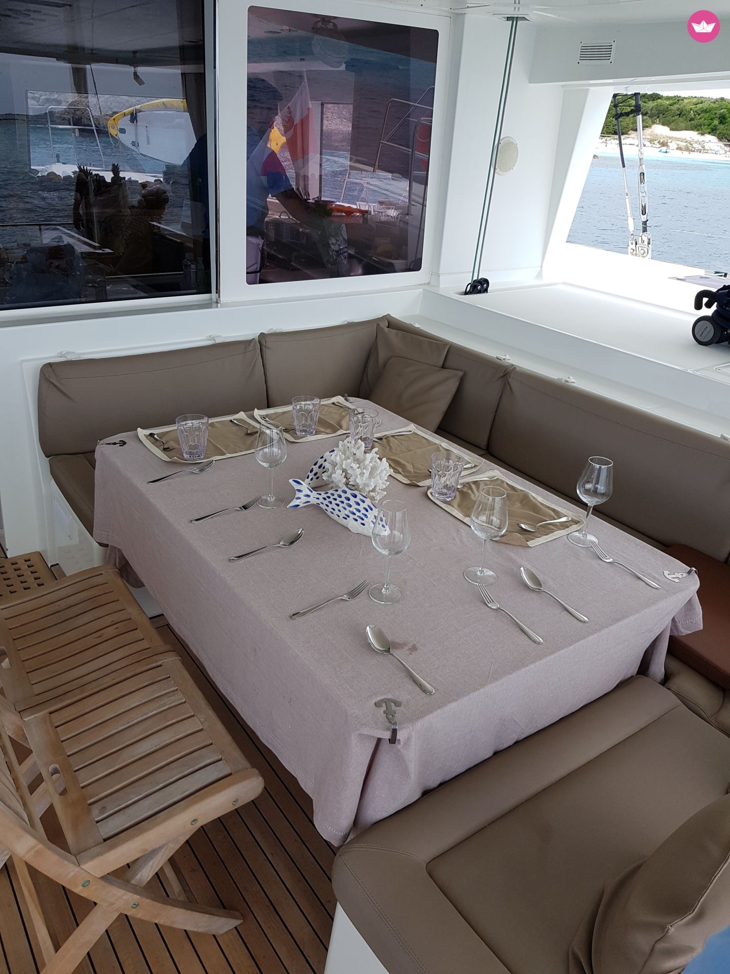 Description of Janusz's catamaran Noleggio questo meraviglioso Lagoon 560 del 2011 che vi permetterà di trascorrere rilassanti giornate in compagnia della famiglia o degli amici. All' interno ci sono 4 comode cabine doppie con letto matrimoniale che vi permetteranno di rilassarvi dopo giornate all'insegna del divertimento, della ensieratezza e del bel mare! A diosizione dei clienti anche 4 bagni! All' esterno c'é un grande pozzetto con una seconda zona pranzo formata da tavolo e divano con cuscini per gustare meravigliosi pasti all'aria aperta. A prua invece il catamarano dione di un enorme prendisole dove potrete rilassarvi sotto il sole. Offriamo un servizio unico nel mondo del charter! Sui nostri catamarani troverete vari extra inclusi nel prezzo: -skipper, -chef E' prevista inoltre un APA del 20% (fino ad esaurimento cassa) che include seguenti extra: -cibo e bevande -alcohol -carburante, tender e fuoribordo -posto barca e ormeggi -lenzuola e teli -pulizia finale Oltre a questo servizio standard, offriamo un servizio Exclusive che invece comprende: -skipper, -lenzuola, asciugamani, set di saponi da bagno -pulizia finale, -giochi d'acqua -preparazione di 3 pasti al giorno, e snack In caso di servizio exclusive l'APA è del 30%, ed include -cibo e bevande -alcohol -carburante, tender e fuoribordo -ormeggi e posto barca Il costo del servizio Exclusive è di: -15.500€ 1.05-15.06/1.09-31.10 -17.500€ ulteriore informazione non esitate a contattarmi qui su Catamaran Yacht Charter!