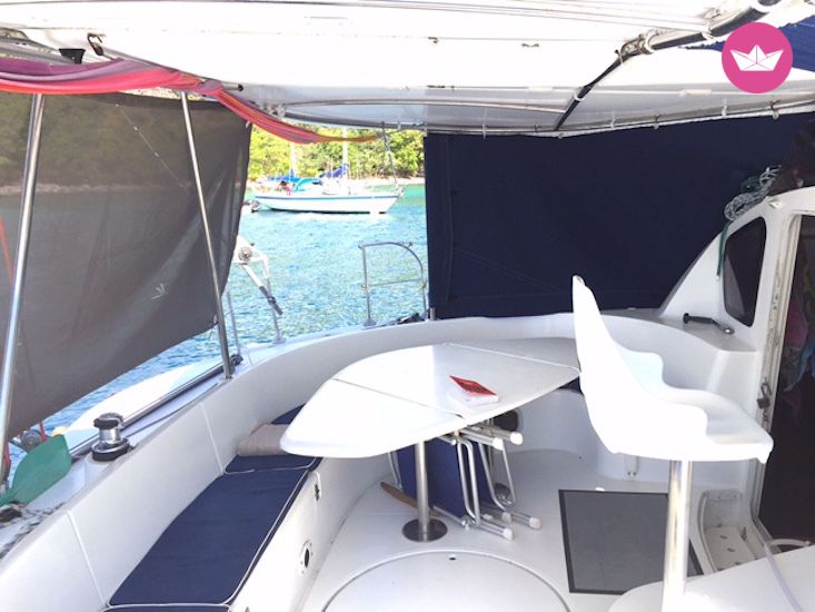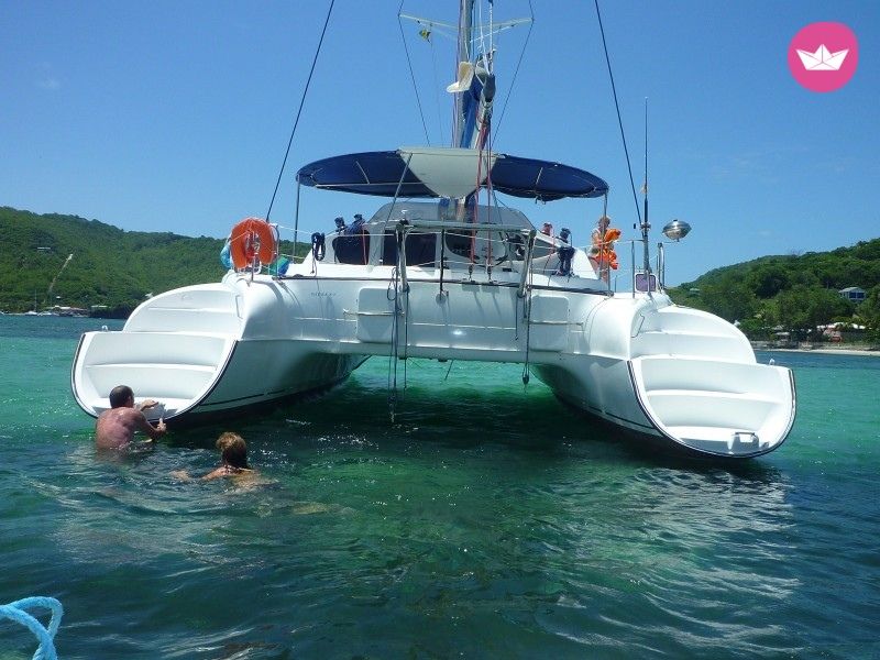 Description of Eric's catamaran , Catamaran Fountaine-Pajot BAHIA 46 en parfait état. 1 salle de bain avec douche et toilettes par cabine. Proposé sans Skipper (je peux vous en proposer sur demande). Bateau basé à Saint Mandrier de début mai a fin Juillet (Possibilité de départ depuis Marseille ou Hyères) En corse de Aout à mi Octobre (Au départ d'Ajaccio) En Guadeloupe de mi novembre à mi avril. Possibilité de départ depuis la Martinique J'étudie toute demande de croisière ou de sortie à la journée. Caractéristiques : Mon bateau peut accueillir jusqu’à 25 passagers en sortie à la journée pour des navigations côtière, pour fêter par exemple un anniversaire. En navigation hauturière il est homologué pour 10 personnes mais pour naviguer dans maximum de confort je préconise 8 personnes. Mais on peut évidemment rajouter un couple ou 3 ou 4 enfants, suivant le programme souhaité. Pour une pratique plaisir de la voile, Mon Bahia 46 est équipé d’une grand-voile à corne neuve et d’un génois de 2014. Pour votre confort à bord vous aurez à votre disposition un cockpit convivial, d'une plage avant avec bains de soleil, de tout l’équipement nécessaire à la navigation hauturière, cuisine aménagée, réfrigérateur-Congélateur, un four, un barbecue, des panneaux solaires, etc ... La vaisselle du bord est complète et tout se trouve à votre disposition pour cuisiner comme un chef. Dessalinisateur 200Litres/Heure, attelé au moteur : vous ne serez plus jamais en panne d'eau :) ATTENTION: Le prix est sujet à modification en fonction du type de demande que je reçois (notamment selon la durée de navigation). Aussi, merci de prendre contact avec moi afin d'obtenir une offre précise en fonction de votre demande.