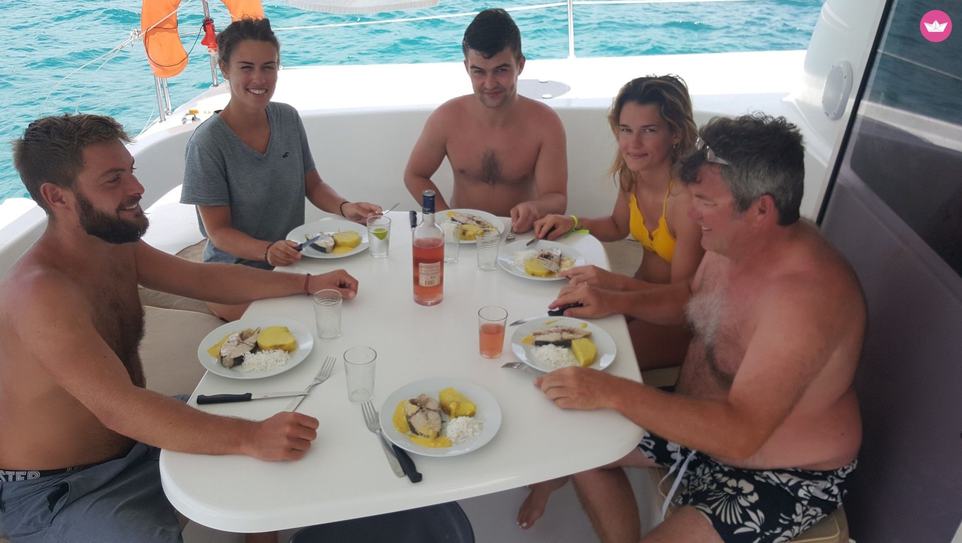 Description of Laurent's catamaran , Bonjour, Je vous propose d'embarquer à bord de notre Catamaran Lipari 41, équipé pour les grandes croisières. Profitez d'une croisière tout compris à bord du Catamaran. Disponible pour un groupe de 6 personnes maximum vous pourrez découvrir la Martinique, les Grenadines et bien d'autres destinations ! Disponible pour une croisière d'une semaine ou plus au départ du Marin vous pourrez vous reposer et vous laisser porter par la douceur des Alizés. Tarif à la location : à partir de 390 € à la journée. Inclus dans la location : - 2 jeux de draps et 2 serviettes par personne et par semaine - Equipements de loisirs : - matériel de snorkelling (masque et tuba) - matériel de pêche - kayaks, paddle Suppléments obligatoires : - Skipper 190€ par jour. - Hôtesse 160€ par jour. - Avitaillement 25€ par jour et par personne, comprenant les repas, les boissons, frais de douanes et de mouillage. Soit : - pour un groupe de 4 personnes 840€ par jour - pour 6 personnes 890€ par jour Pour avoir votre devis personnalisé n'hésitez pas à m'envoyer un message via la messagerie Catamaran Yacht Charter pour échanger sur votre projet de navigation. Je vous souhaite une bonne fin de journée et à bientôt dans les Antilles !