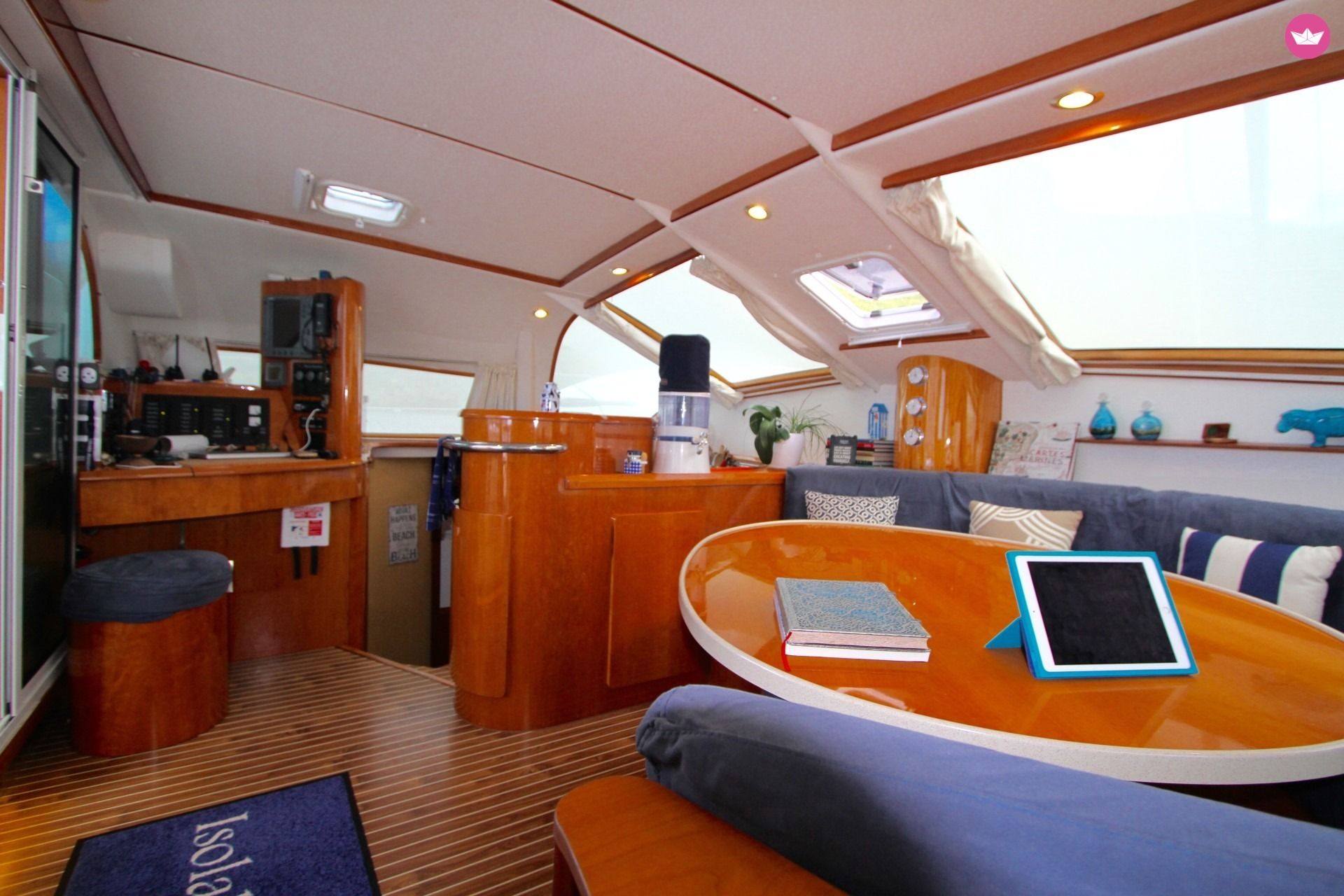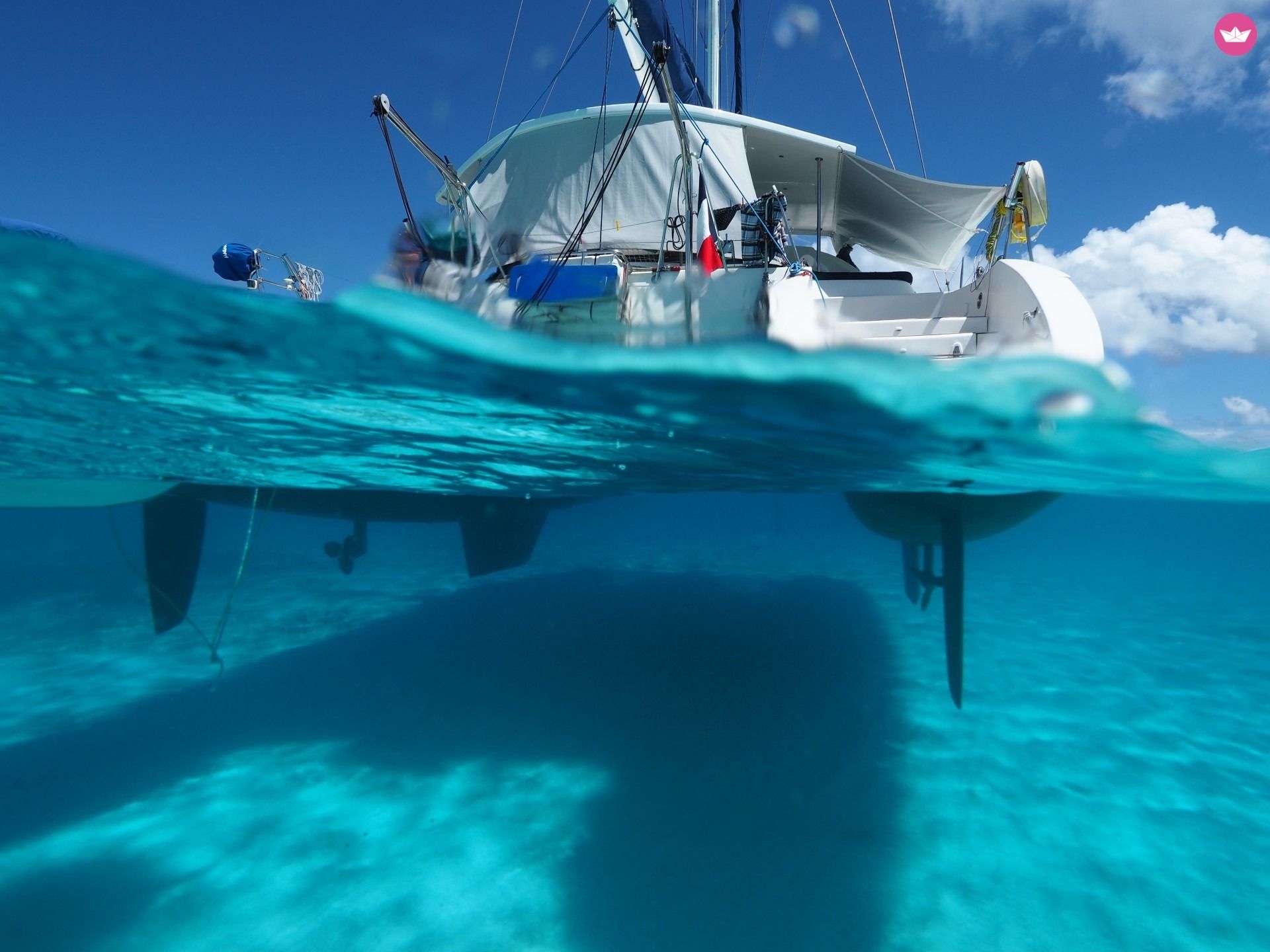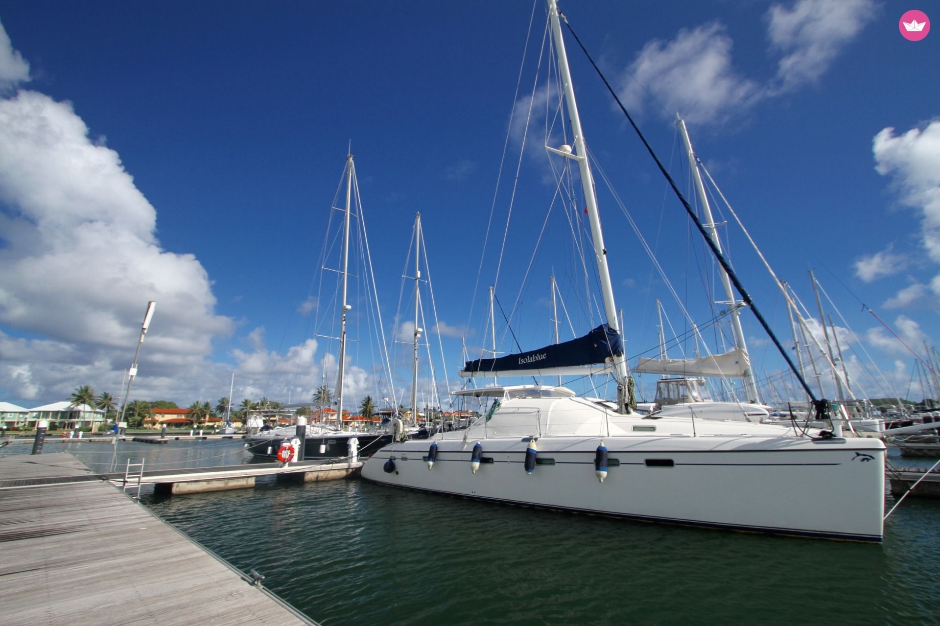 Description of Astrid & Laurent's catamaran We are on a trip around the world with our Catamaran Privilege 49 and would like to welcome you and spend unforgettable moments in the dreamland of the Caribbean (navigation area for the coming years). Come and enjoy your most beautiful sailing holidays off the beaten path and share with us a part of our world trip. Offer yourself a unique holiday, an unforgettable stay in complete safety. We would be delighted to welcome you with joy and good humor. By embarking with us, you will experience an episode of our world journey as well as share our lifestyle, which in turn is an attractive invitation for all those who also dream about a great departure. We have decided to abandon our professional careers on the threshold of our 50th birthday in order to fully live our passions for sailing, diving, good food, discovery trips and encounters. We left on our catamaran to realize our dream: a world trip without time constraints. And we still dream of projects, oceans and new horizons. We propose this activity by choice and with pleasure : we are happy to receive people and to share with them moments of discovery and joy which we guarantee on board of Isolablue. Every cruise is a rewarding new enriching experience made of encounters, good humor and fun. Our catamaran is fully equipped for a round the world trip in complete autonomy (water, electricity, refrigerator, freezer, diving compressor ...) 2 spacious, well-ventilated guest cabins, beds of 160 x 200 cm, with private shower and toilets are available for groups of 2 to maximum 5 people guaranteeing real comfort, great privacy, a lot of living space and the feeling of being at home. Our choice to privatize the catamaran as of 2 persons for each cruise ensures you: - Friendly ambiance and intimacy in small committee - Customized destinations according to your preferences - Our particular attention while respecting to the maximum the wishes of each guest - No other passenger with whom sometimes character, rhythm and expectations might be not compatible Easy navigation, unprecedented activities and clear prices are the keys of our success. We are both holders of the Swiss offshore license and can validate your nautical miles. We also offer you the possibility of discovering scuba diving in complete safety with a PADI instructor and a PADI Dive Master and / or obtaining your worldwide recognized diver certification (3 complete and new equipments on board). RATES FOR OUR CATAMARAN: EUR 5'000.- per week, on top RATES PER GUEST : EUR 500.- per personne / per week Included: 3 meals a day, beverages, fuel, mooring and customs fees, the use of our toys (paddle, snorkeling equipment: mask, tuba and fins), bed linen, towels, final cleaning. Not included: generally all your expenses on land and scuba diving. We look forward to sharing with you an unforgettable holiday