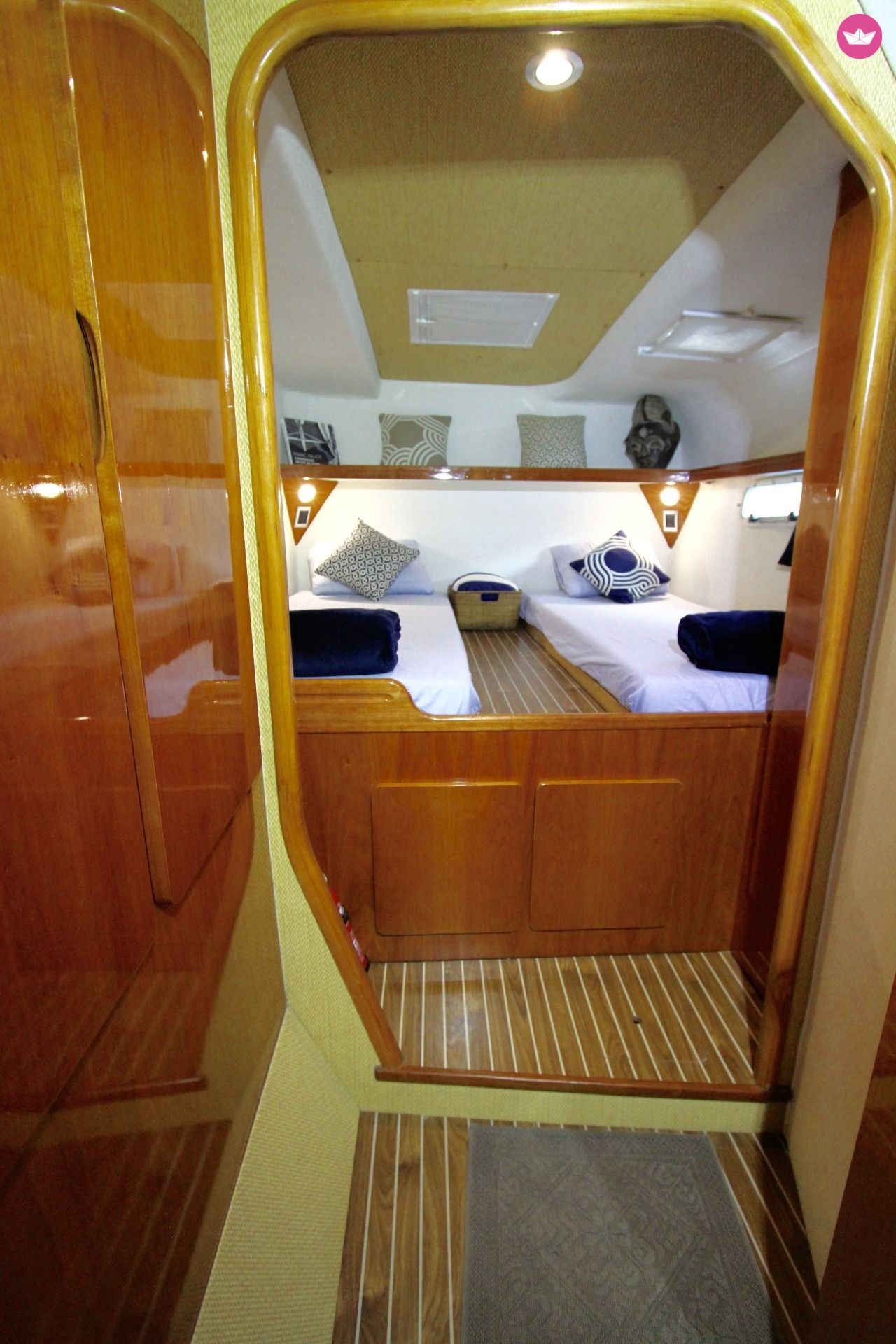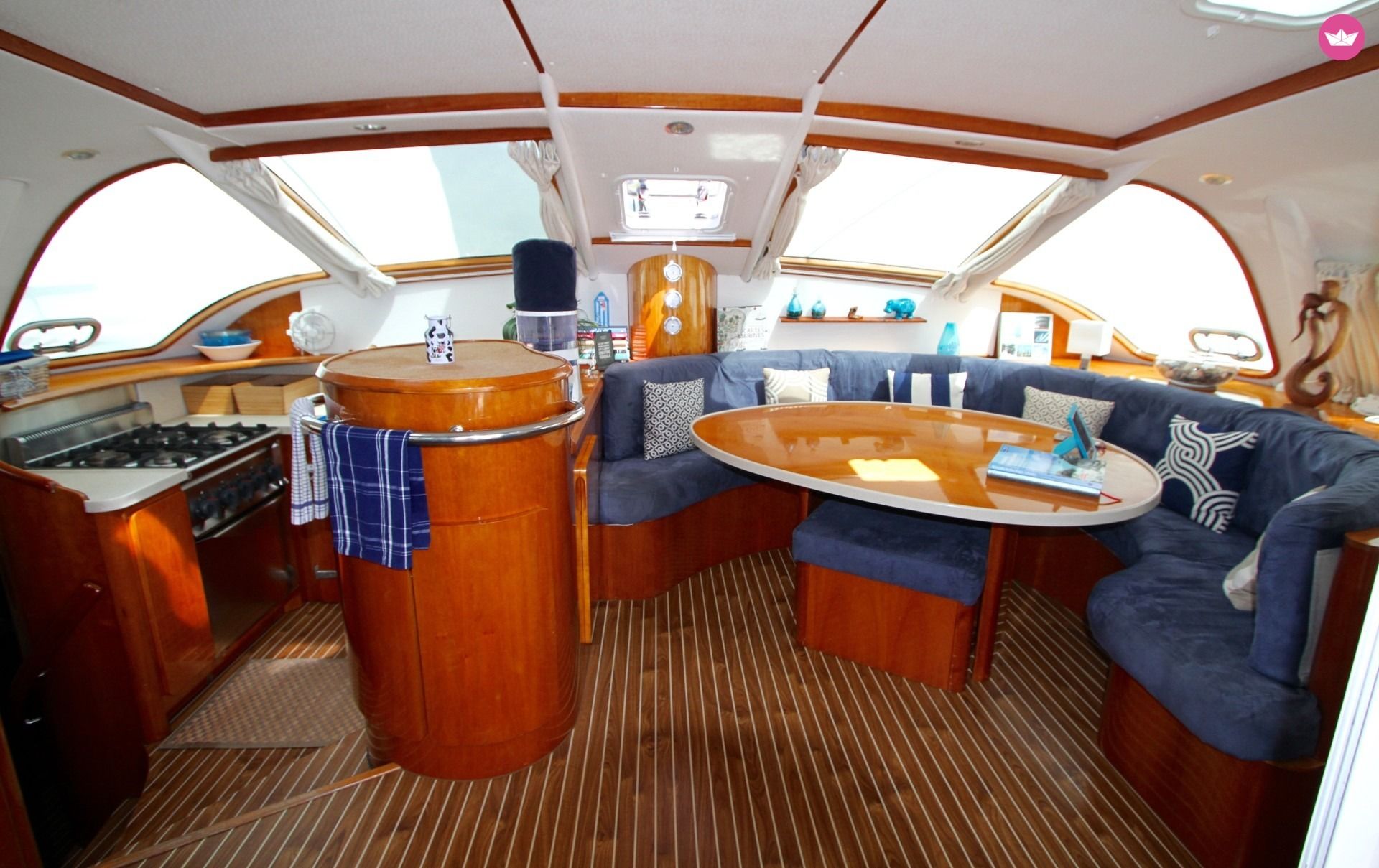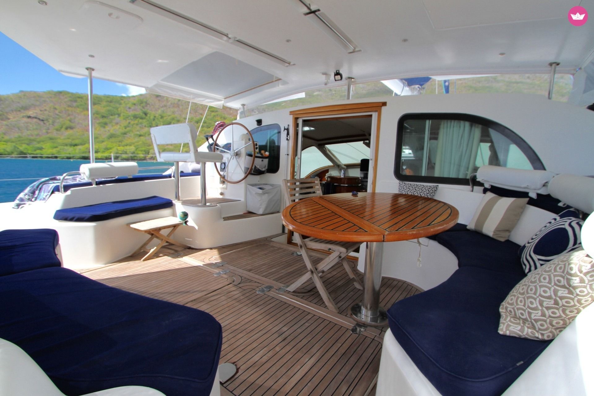 Description of Astrid & Laurent's catamaran We are on a trip around the world with our Catamaran Privilege 49 and would like to welcome you and spend unforgettable moments in the dreamland of the Caribbean (navigation area for the coming years). Come and enjoy your most beautiful sailing holidays off the beaten path and share with us a part of our world trip. Offer yourself a unique holiday, an unforgettable stay in complete safety. We would be delighted to welcome you with joy and good humor. By embarking with us, you will experience an episode of our world journey as well as share our lifestyle, which in turn is an attractive invitation for all those who also dream about a great departure. We have decided to abandon our professional careers on the threshold of our 50th birthday in order to fully live our passions for sailing, diving, good food, discovery trips and encounters. We left on our catamaran to realize our dream: a world trip without time constraints. And we still dream of projects, oceans and new horizons. We propose this activity by choice and with pleasure : we are happy to receive people and to share with them moments of discovery and joy which we guarantee on board of Isolablue. Every cruise is a rewarding new enriching experience made of encounters, good humor and fun. Our catamaran is fully equipped for a round the world trip in complete autonomy (water, electricity, refrigerator, freezer, diving compressor ...) 2 spacious, well-ventilated guest cabins, beds of 160 x 200 cm, with private shower and toilets are available for groups of 2 to maximum 5 people guaranteeing real comfort, great privacy, a lot of living space and the feeling of being at home. Our choice to privatize the catamaran as of 2 persons for each cruise ensures you: - Friendly ambiance and intimacy in small committee - Customized destinations according to your preferences - Our particular attention while respecting to the maximum the wishes of each guest - No other passenger with whom sometimes character, rhythm and expectations might be not compatible Easy navigation, unprecedented activities and clear prices are the keys of our success. We are both holders of the Swiss offshore license and can validate your nautical miles. We also offer you the possibility of discovering scuba diving in complete safety with a PADI instructor and a PADI Dive Master and / or obtaining your worldwide recognized diver certification (3 complete and new equipments on board). RATES FOR OUR CATAMARAN: EUR 5'000.- per week, on top RATES PER GUEST : EUR 500.- per personne / per week Included: 3 meals a day, beverages, fuel, mooring and customs fees, the use of our toys (paddle, snorkeling equipment: mask, tuba and fins), bed linen, towels, final cleaning. Not included: generally all your expenses on land and scuba diving. We look forward to sharing with you an unforgettable holiday