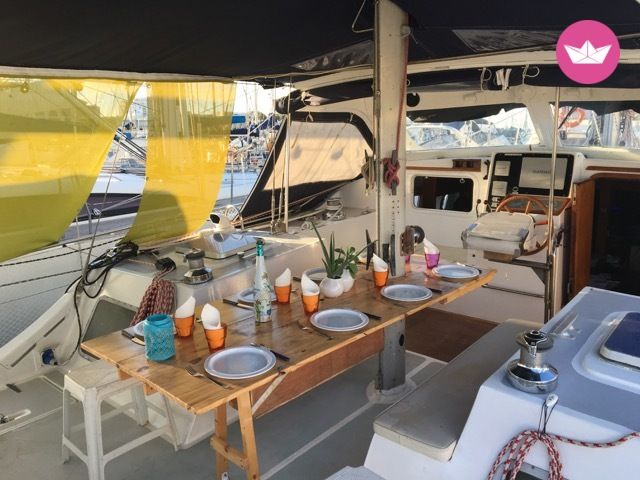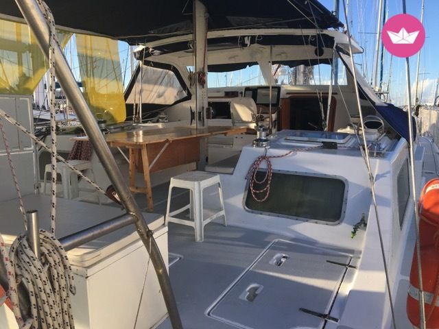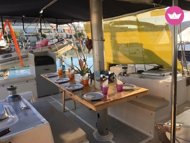 Description of Isabelle's catamaran , Bonjour , !!! Le tarif affiché sur la grille tarifaire inclus : Skipper , nettoyage retour, linge de lit et caisse de bord (gaz, gazole, eau). Le solaris est un catamaran sur et spacieux. Bien équipé, confortable avec toute la sécurité à bord (totalement refit en 2017 et 2018 !) Il peut accueillir 12 pers à la journée ; - Pour vos enterrements de vie de célibataires , anniversaires ou tout simplement le plaisir de se balader au gré du vent , farniente , baignade , apéro ... - En mini-Croisières à la carte (2 à 4 jours ou à la semaine) avec un maximum de 6 personnes ( à la semaine ). En fonction de vos âges, de vos souhaits et de votre budget. À bord je vous met à disposition : machine à glaçons , plancha , palmes, masques et tubas ... !!! Possibilité de louer le voilier à la personne ( mini / 4 pers ) en bateau partagé à la journée ; à partir de 90 € / pers Jusqu'à 12 pers en bateau privatif ; tarifs dégressifs . Skipper inclut dans le tarif !!! A prévoir en supplément , votre nourriture (Nous vous accompagnons au supermarché si besoin) et en cas de mauvais temps , corps mort ou place au Port ( tarif entre 40 et 90 € la nuit ) Mouillage, farniente, tranquillité, navigation, baignade dans de superbes criques et eau turquoise sont au programme entre la Corse du Sud et la Sardaigne ... Avec Fabienne et Patrick, le propriétaire, ancien de la marine marchande, très ouvert, convivial, passionné pour vous transmettre son savoir . Ambiance et convivialité garanties...