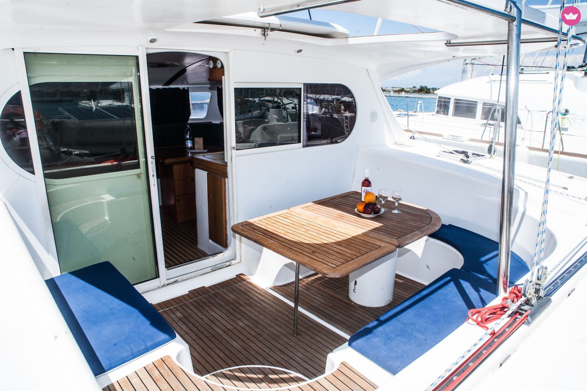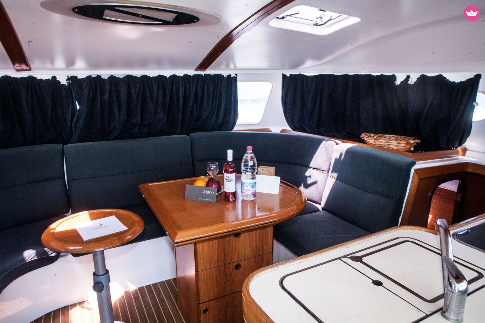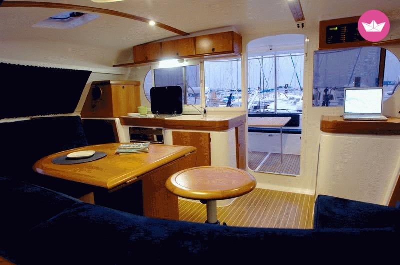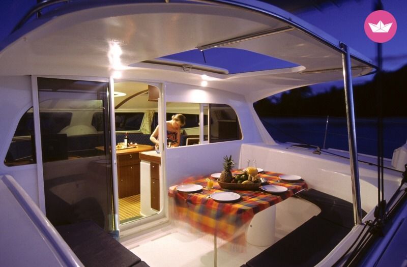 Description of ALEXANDROS's catamaran Beautiful catamaran with 4 Cabins and 2 heads that can accommodate 8 guest plus 2 crew is ready for renting with an experienced for a care-free amazing sailing experience. You can admire and discover hidden paradises in the Cyclades, using the island of Milos as a base. As per the itinerary and stops you can plan this together with our skipper or just leave it on us since we know how to show our guests a good time. We offer you a safe and comfortable trip as in the boat complies with all safety rules and is equipped with top-of-the-line, modern equipment. For your convenience, there are bed sheets, pillows, pillows cases, blankets and towels. Also if you love admiring the view under the water there is snorkelling equipment. If you need more details don't hesitate to contact us. Looking forward to your requests!