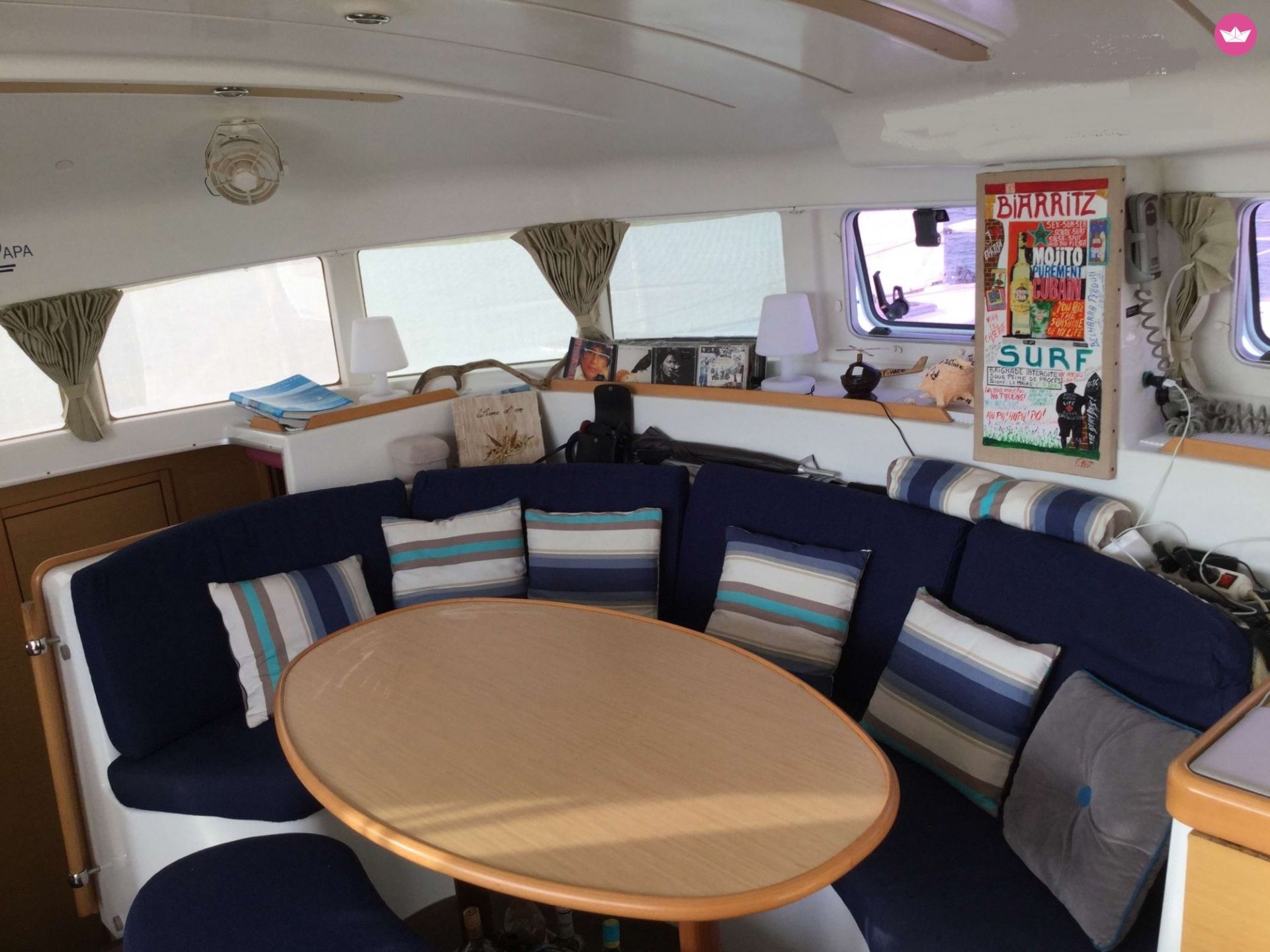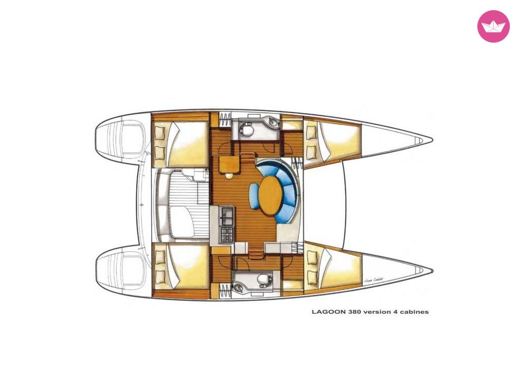 Description of Berta's catamaran , Atrévete a navegar en una embarcación con excelentes prestaciones y perfectamente mantenida. Nuestro Lagoon 380 del 2009 cuenta con casi 12m de eslora y 6.58m de manga con una superficie total habitable de 77m2, por lo que es ideal para vacaciones en grupo. Con capacidad para 10 personas en salidas de día. Tiene 4 cabinas dobles y salón convertible y 2 baños en suit que permiten pernoctar a borda a hasta 10 personas. El catamarán ofrece una vida a bordo muy agradable gracias a sus 2 cascos en paralelo que le dotan de una estabilidad y seguridad extra. Destacan sus amplios espacios interiores y exteriores. Además, posee un solárium en proa y una zona de estar en popa muy cómoda. El salón interior esta muy bien diseñado y ofrece una habitabilidad excepcional. Dotado 2 motores de 40CV con un depósito de combustible de 200L. El precio incluye: - IVA - Seguros y amarres Los precios NO incluyen: - Limpieza final OBLIGATORIA: 120€ - Patrón 250€/día - Fueraborda 126€/semana - Toallas:12€/persona - Sábanas: 15€/persona - Red de niños 150€/reserva - Paddle surf 35€/día Los esperamos en Catamaran Yacht Charter!