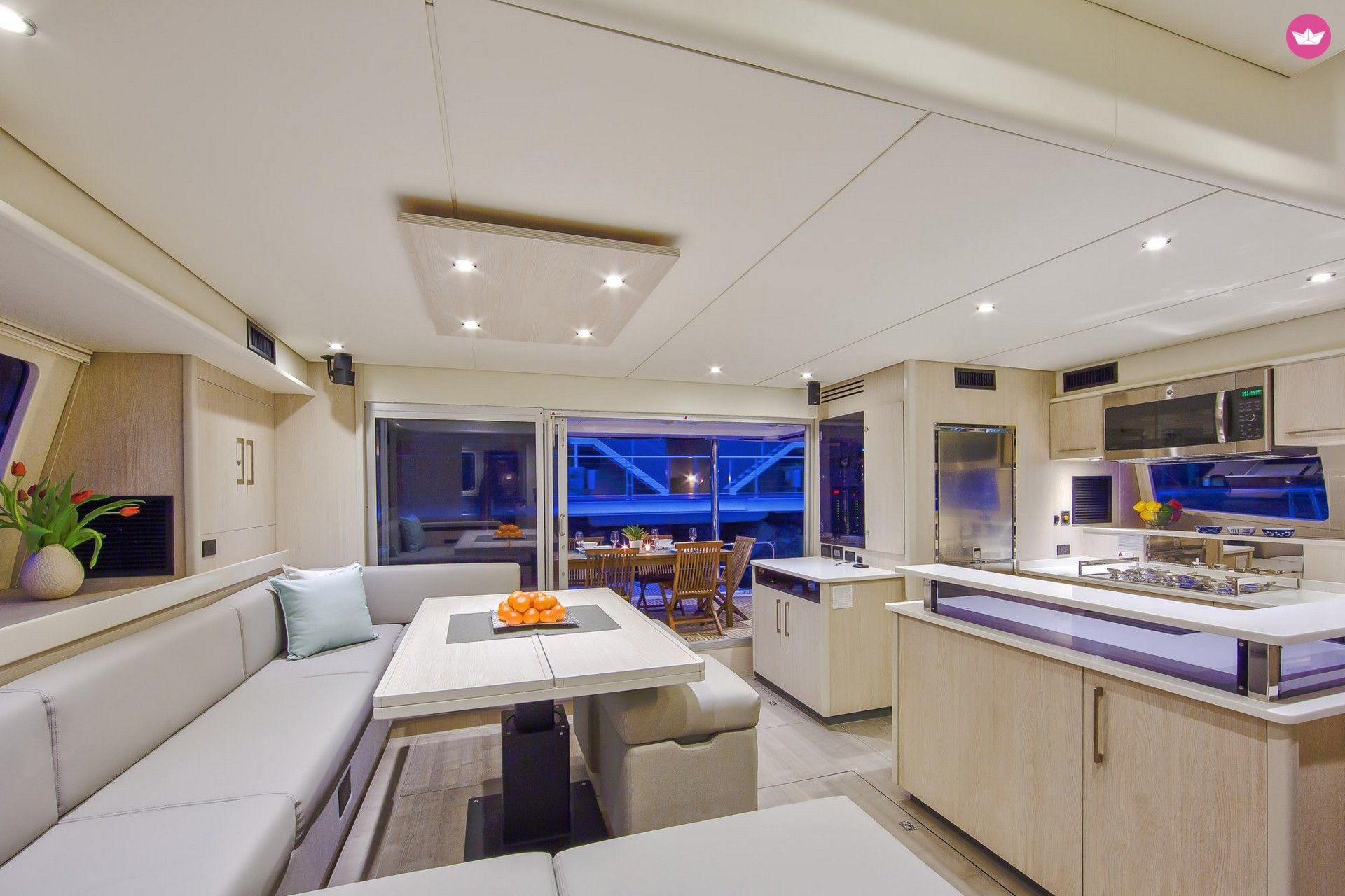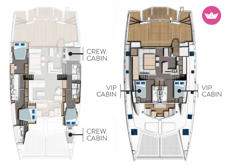 Description of Maldives's catamaran We offer new catamaran Leopard 58 in crewed and all inclusive package that includes: • Crewed catamaran charter • Starter Pack (water, fresh fruits, coffee, washing up liquid, dish cloth/sponge, garbage bags, kitchen towels, matches, toilet paper) • Full board on ship (3 meals a day: breakfast, lunch and dinner with bottle of wine) • Water, coffee and tea all day • Soft drinks and snacks (apple juice, orange juice, Diet Coke, Fanta, Sprite; snacks: breadsticks, chips, crackers, peanuts) • Captain, hostess/cook, technician (if required) • 2 sets of: bed linen, hand towels, beach towels • 5GB Internet • Seabob x2, SUP x2 • Snorkelling equipment • Funair Slide for one day (400 USD / extra day) • Freediver • Fishing equipment • Engine fuel (max 8 h/day) , generator fuel (working hours 9AM-8PM), dinghy fuel • Bouy and anchor fee, first and last night in the base • One grill dinner on island • Deposit insurance Leopard 58 is the flagship of the Leopard line designed and produced by world renowned Robertson&Caine shipyard. Thanks to its superb nautical performance, free space for guests and equipment Leopard is the best choice for Maldives waters. Model 58 offers many comfortable and inventive facilities. The flybridge with hardtop and seating for up to 10 people, outdoor kitchen and grill are some of the most impressive focal points. The hardtop enables to enjoy the charms of the nature regardless the strong sun or heavy rain. Even during windy weather the flybridge gives a great protection. The large open aft deck and forward cockpit provide an ample space for alfresco dining and lounging. Mobile swim platform at the stern gives additional space for starting fun with water toys or soaking feet during sailing. As the platform size is enough to fit several people and big accessories as SUPs or Seabobs it gives an easy and convenient exit into the water. The whole deck is covered in TekDek, a lightweight, high impact simulated teak. Leopard 58 accommodates 10 guests in 5 cabins with separate crew compartments. Two VIP cabins are directly connected with the Main Salon with sliding doors and have exits to the private outside terrace . They also have the convenient access to the bow cockpit. Large windows give in the morning an impression of waking up on the surface of crystal water and possibility of touching it, while in the evening they become the gate to the most wonderful sunsets in the globe. Queen beds and spacious closets bring in the VIP cabins comfort and luxury worthy of a royal hotel. Three guest cabins, which are located on the floats, are equally comfortable and have queen-sized beds as well. Each cabin have en suite bathroom and big closet space. All cabins are additionally equipped with their own air conditioning units and a separate fans what is a great benefit during the warm days. Prices starts from 30.000 USD per week, for all-inclusive package. Main base Kuredhivaru. LOW SEASON - from 2.06.2018 to 6.10.2018 - 30.000 USD / week HIGH SEASON - from 06.10.2018 to 26.12.2018 - 35.000 USD / week NEW YEAR’S EVE 18/19 - from 26.12.2018 to 10.01.2019 - 38.000 USD / week HIGH SEASON - from 10.01.2019 to 04.05.2019 - 35.000 USD / week