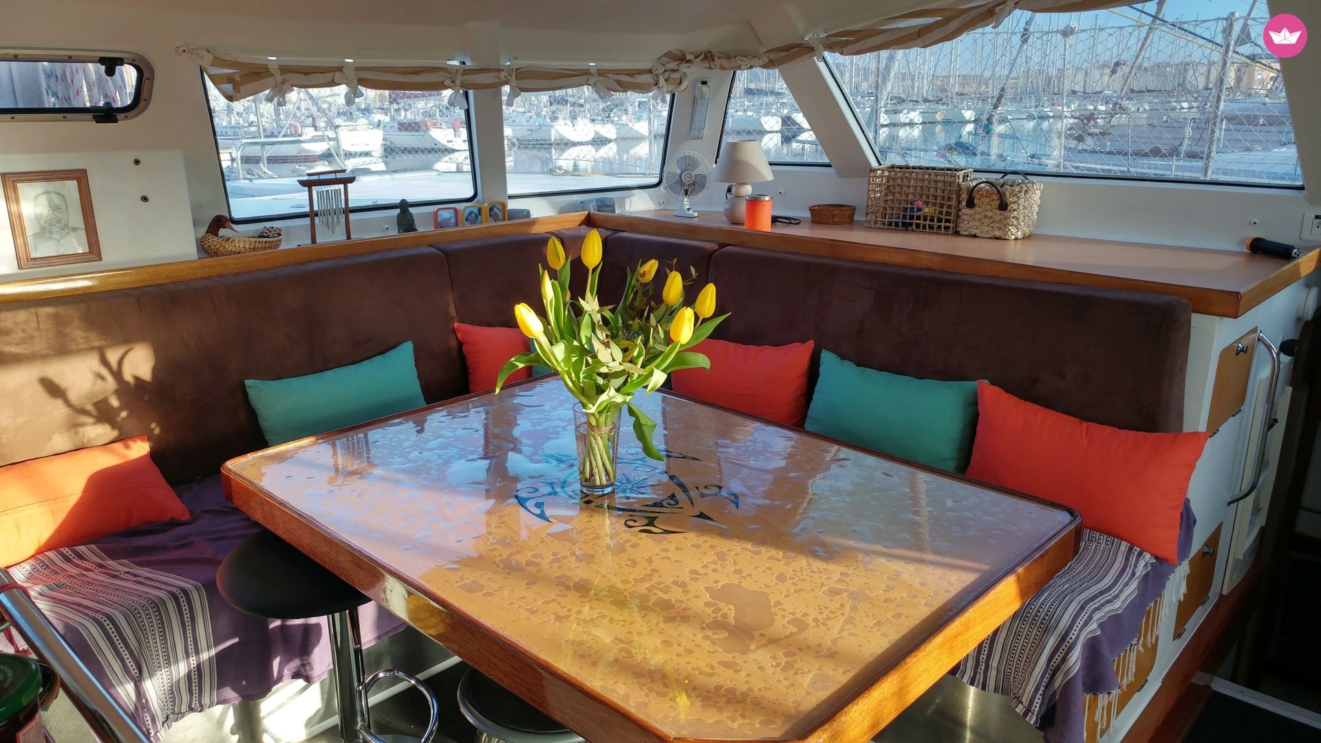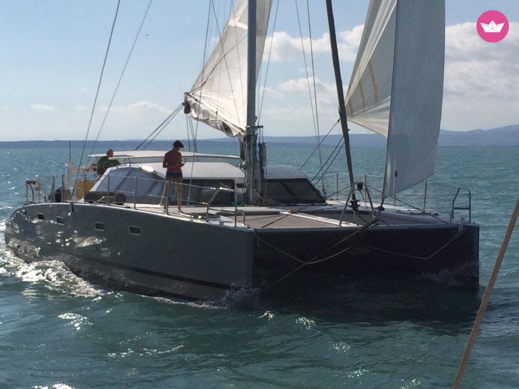 Description of Michel's catamaran , Nous sommes une famille autour du monde pendant 4 ans aux antilles jusqu'en avril 2019. Catamaran type eclipse 500 en bois époxy leger et très rapide, confortable (nacelle de 25m²) Equipé tour du monde avec congélo, dessal, spi, génaker, trois ordinateurs, livres, paddle, planche à voile, canoë, plongée PMT, annexe 15cv bouée tractée, barbecue, plancha gaz etc... Nous pouvons accueillir 4 adultes plus enfants.