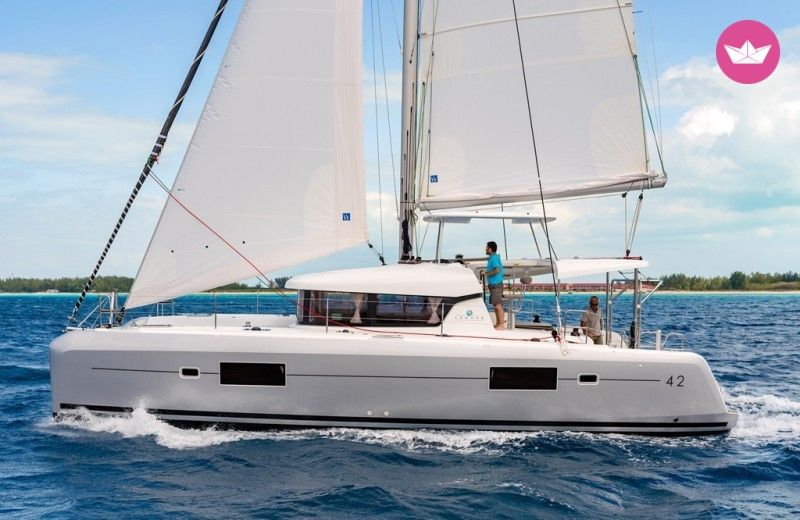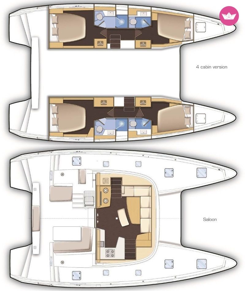 Description of Marcello's catamaran , Catamarano Lagoon 42, 4 cabine doppie e dinette trasformabile, base Cagliari.