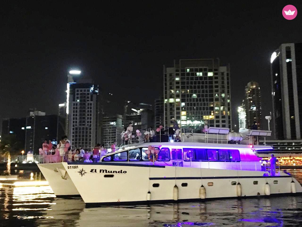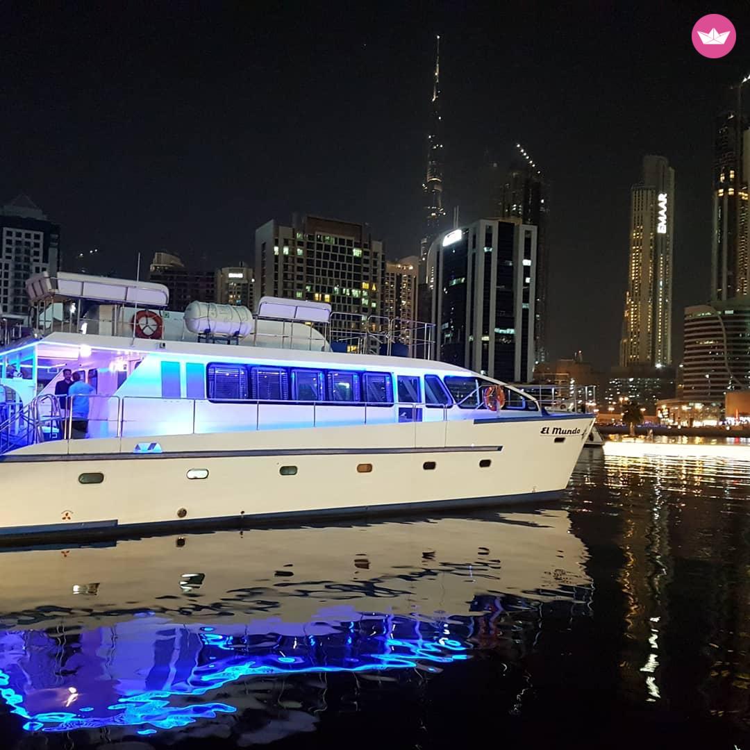 Description of SAEED's catamaran Yacht-Catamaran: El Mundo is 60 feet long with approval 50 person capacity but has space for 90 people. There are the main three decks, the first one is the air-conditioned dining area for 40 people, the second is the upper deck area with 360 degrees panorama for 45 people and the third is the front area for 30 people. The distinctive feature of our catamaran is that it is safe and steady to go to the deep sea. Also, there are comfortable sitting and a moving area where guests feel freely, move around and enjoy the beauty of the panorama view of Dubai. On the back side of the catamaran, there are barbecue area and two swimming platforms. Also, we provide service on this Yacht as a sound system, TV, karaoke. Our location is: Marais Marina, Business Bay The most popular route is the Dubai New Water Canal, Daria island. Outside of the canal: Burj Al Arab, World Island, Atlantis Hotel, La Mer Beach. This is a great opportunity for celebration any kind of holidays: corporate events, birthday parties, another significant occasion… Prices: 1 hour- 320 euro 2 hours- 320 euro per hour, the total for 2 hours = 640 euro 3,4 hours booking - 310 euro per hour, the total for 4 hours= 1240 euro 5,6 hours booking - 300 euro per hour, the total for 6 hours = 1800 euro 6,8 hours booking - 290 euro per hour, the total for 8 hours = 2320 euro 9,10 hours booking - 280 euro per hour, the total for 10 hours = 2800 euro To this price included: 1 professional captain, 3 professional crew. -There 2 rooms, 2 washrooms, Life BBQ, two Platonism for swimming. - Bar area with all the equipment ( freezer refrigerator), cool boxes, ice, ice for beverages, soft drinks. -Sound system, TV, fresh towels. Additional pay service: Breakfast, Lunch, Dinner menu: International, Arabian, Asian …. Entertainment: DJ, Photographer, Video Operator, Professional dancers, jet ski, fishing. * If guests would like to book Yacht-Catamaran El Mundo for more than 10 hours, we have to discuss these details in the time of the request.
