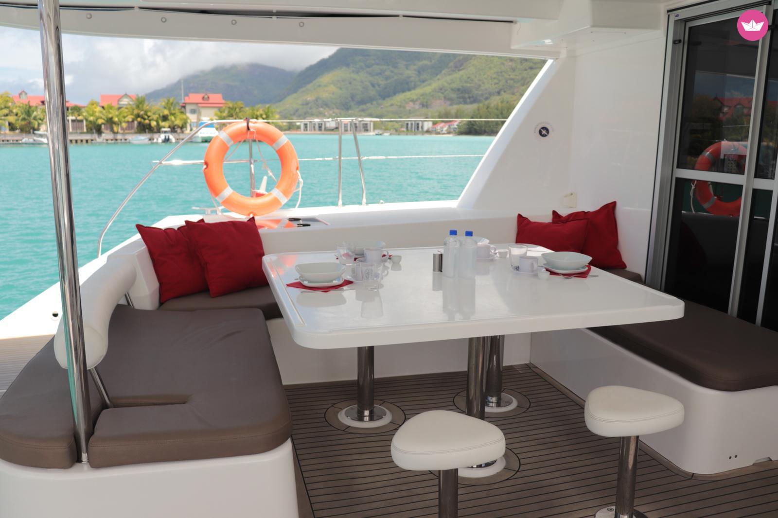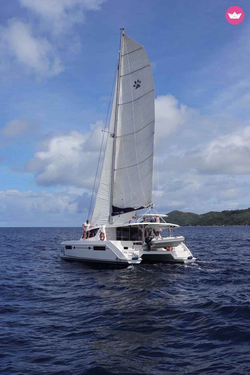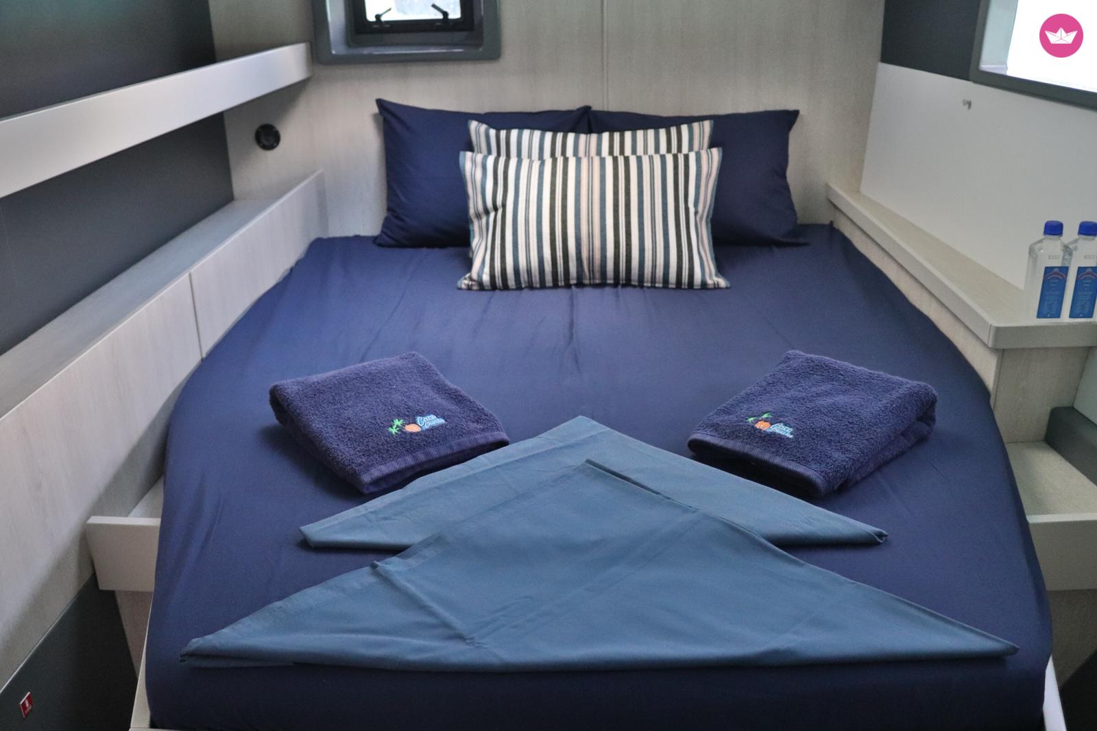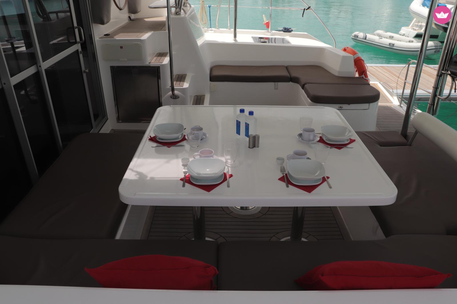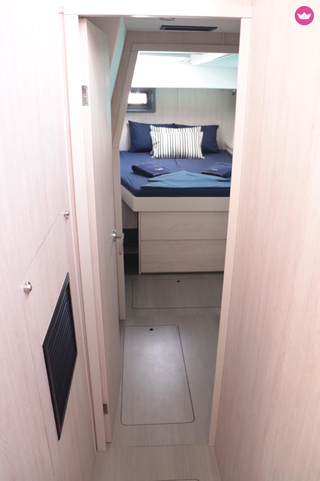 Description of Agnes's catamaran OUTER APPERANCE: Leopard 48 has a spacious front cockpit that provides direct access to the saloon, which is a unique solution offered on Leopard yachts. The outer appearance of this catamaran is also characterized by a large aft cockpit with a table. The raised wheelhouse provides excellent panoramic view, thanks to which you can perfectly maneuver in the sea. INTERIOR: The interior of the Leopard 48 catamaran is not only beautiful, but also practical. The caboose is equipped with the best-in-class equipment, provides a spacious place for preparing meals and many other amenities. This catamaran also offers plenty of space inside. The luxurious interior makes sailing not only great fun, but also very comfortable. Its modern line and open developments have set new standards for modern motor-driven catamarans.