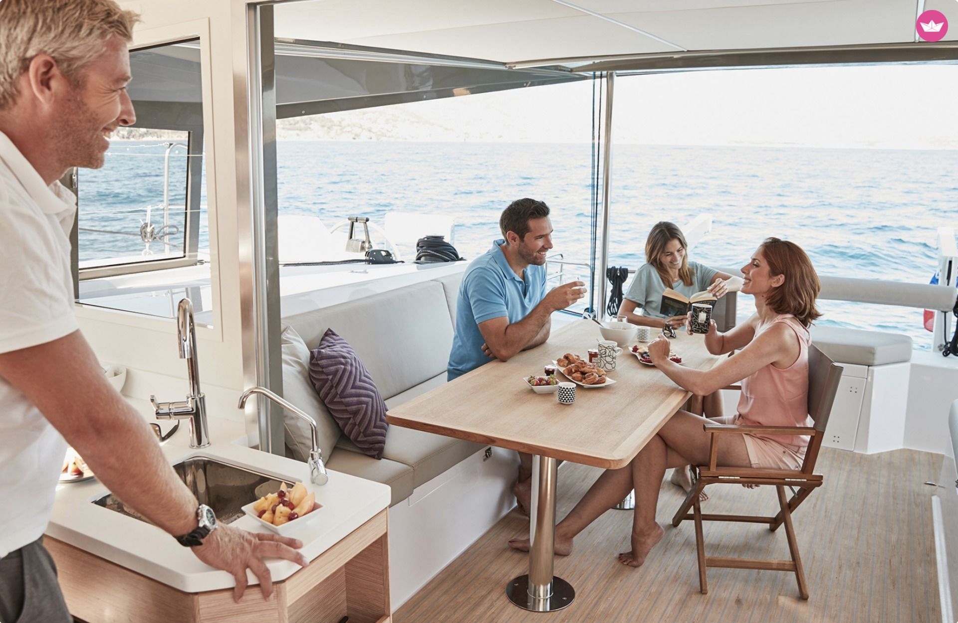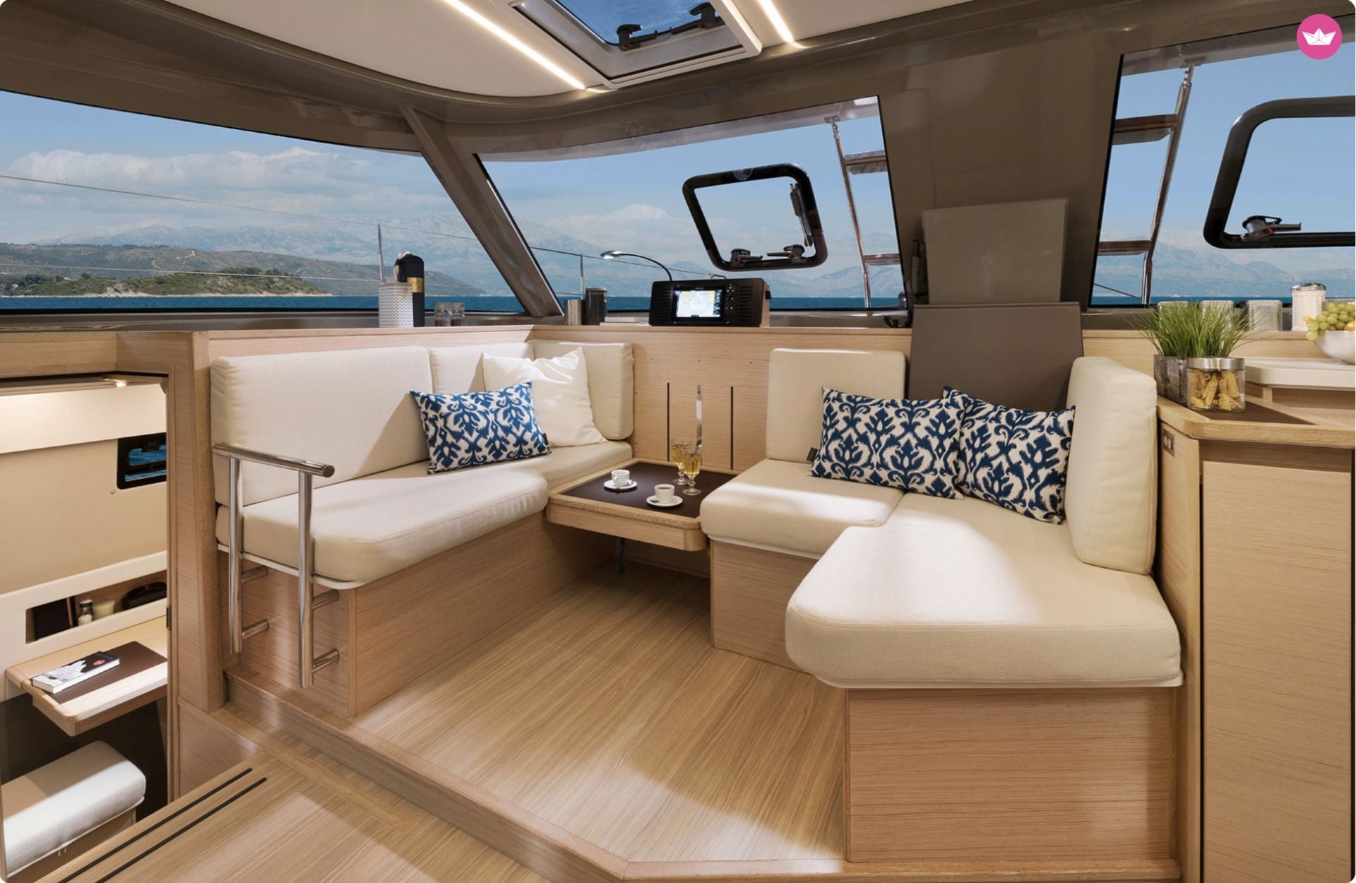 Description of Pierre-Marie's catamaran , Bonjour, Je vous propose à la location notre superbe Nautitech Open 40, disponible au départ de Solenzara. Ce catamaran a été construit en 2018, il est donc en excellent état et moderne. Il peut accueillir jusqu'à 10 personnes à bord. On compte au total 4 cabines et 2 pointes avant, ainsi que 2 salles de bain. Vous trouverez à bord tout les équipements nécessaires pour une croisière de rêve. Vous aurez à votre disposition une machine à café, un paddle, masque et tubas, une annexe .. ** Options et forfaits : - Skipper en supplément : 250€ par jour - Forfait nettoyage ménage : 150€ - Forfait literie : 150€ - Consommable : 50€ - Possibilité livraison avitaillement au bateau gratuit. - Nuit du vendredi soir possible à bord, départ obligatoire entre 7h30 et 8h00 le samedi matin. Pour de plus amples renseignements, je reste disponible sur la messagerie de Catamaran Yacht Charter. A bientôt.