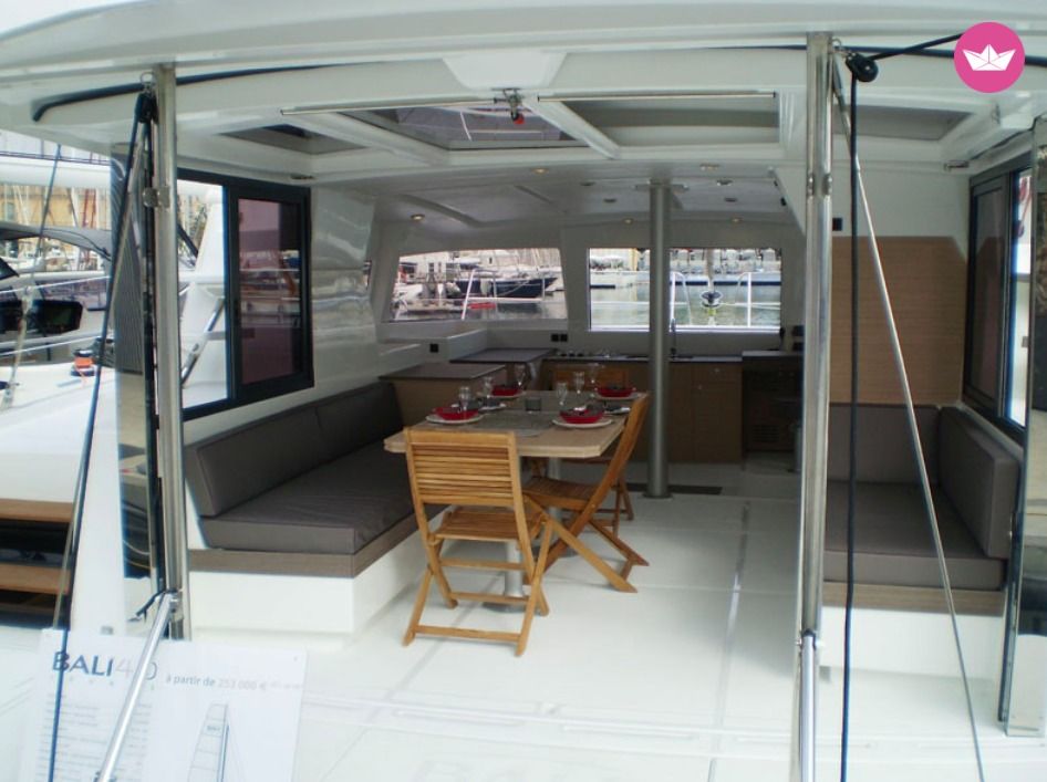 Description of Alex's catamaran , Bonjour à tous, Je vous propose de louer ce magnifique catamaran au départ de Propriano. C'est un Bali 4.0, célèbre chantier très réputé. Ce modèle est un 6 cabines (4 doubles spacieuses et 2 simples), sur lequel on retrouve 4 salles d'eau et un grand espace de vie avec cuisine tout équipée. Profitez d'un catamaran de prestige pour naviguer durant plusieurs jours en Méditerranée, et ainsi profiter de la beauté du littoral Corse. N'hésitez pas à m'envoyer un message depuis la messagerie Catamaran Yacht Charter, je serai ravi d'échanger avec vous quand à votre projet de navigation. **********************TARIFS********************* Options Obligatoires : - Nettoyage : 250€ - Frais de dossier : 20€ - Starter pack : 25€ Extras : - Filet de protection pour enfants : 230€ - Rachat de franchise : 40€/jour - Hôtesse/cuisinier : 200€/jour - Skipper : 230€/jour - Stand up paddle : 25€/jour - Wifi : 50€/semaine - Transferts : sur demande *************************************************