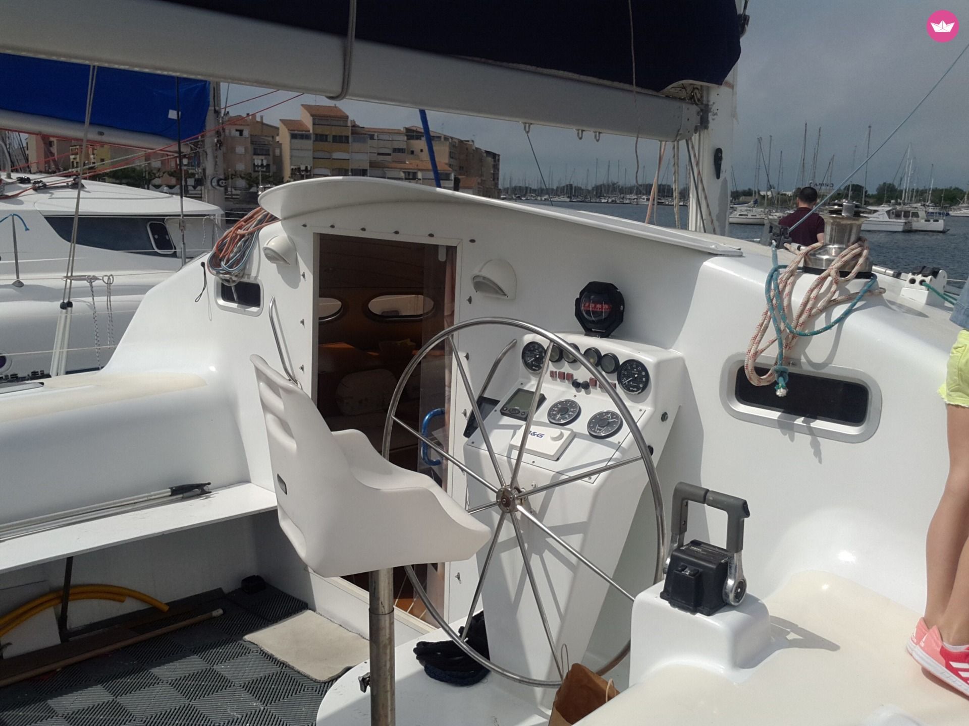 Description of jacky's catamaran , ***** Location uniquement avec capitaine ***** Bonjour, Je loue mon Soubise Glaxy ! JONATHAN est un catamaran rapide il permet donc de passer plus de temps dans de beaux mouillages. Il est simple d'utilisation avec sa grand voile lattée et son foc autovireur. Il est ideal pour 3 couples puisque il dispose de 3 cabines doubles mais on peut ajouter 2 personnes pour dormir dans le carré transformable. Pour plus de renseignements je vous invite à me contacter directement via la messagerie Catamaran Yacht Charter. À bientôt !