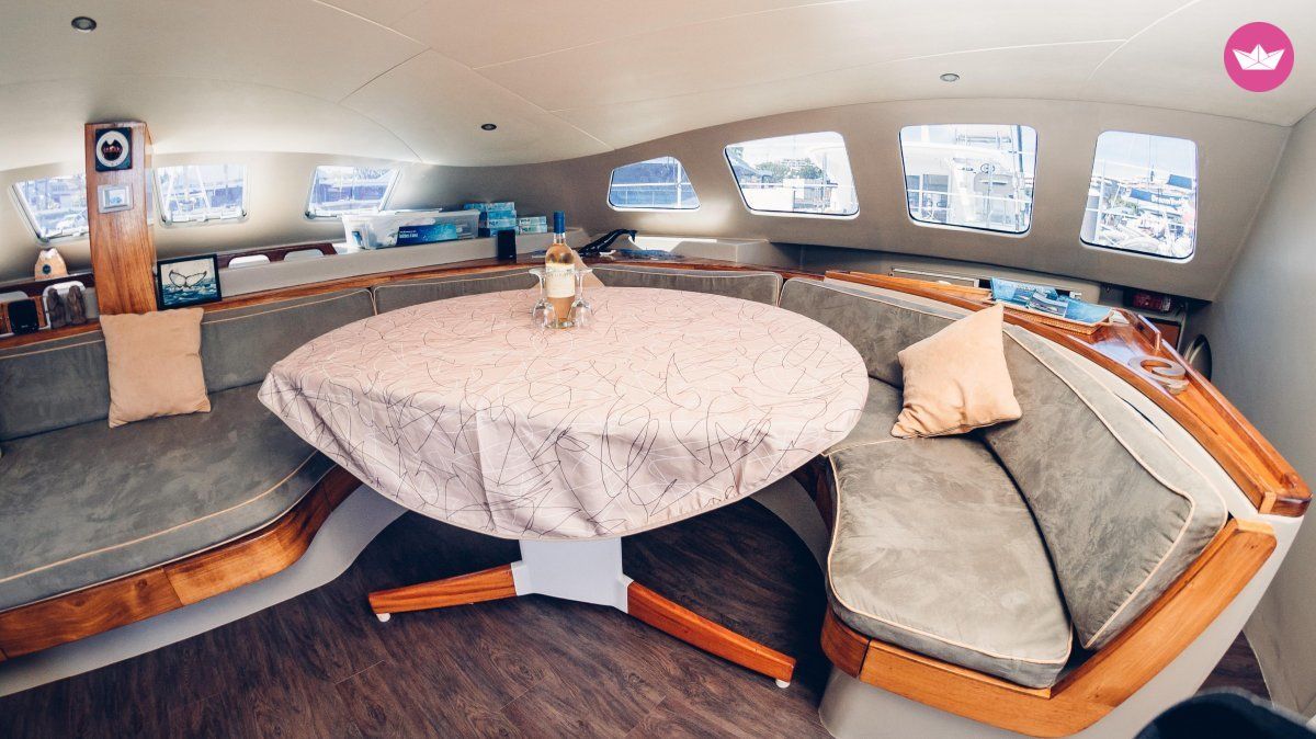 Description of Gilles's catamaran , Bonjour à tous, Nous vous proposons à la location, notre magnifique catamaran, un Sérénité 57 en Nouvelle-Calédonie au port de Nouméa. Ce bateau dispose de 5 cabines, 4 doubles et 1 simples regroupant un total de 9 couchettes. Notre sérénité 57 sera parfait pour les personnes souhaitant réaliser une croisière de rêve en Nouvelle Calédonie. En effet vous profiterez d'un confort optimal sur notre catamaran rénové lors de l'année 2015. A bord de notre catamaran vous pourrez vous détendre au soleil tout en admirant les plages et paysages de notre belle île de Nouvelle Calédonie. Options : - Nettoyage 134€ pour la semaine - Forfait Gaz à la semaine 27€ Les options telles que le skipper (obligatoire) ou l’hôtesse vous seront détaillées sur demande. Ces services sont réalisés par des prestataires extérieurs sur place. Pour obtenir davantage de renseignements au sujet de notre catamaran, n'hésitez pas à nous contacter sur notre messagerie Catamaran Yacht Charter afin que nous traitons vos demandes le plus rapidement possible. En espérant vous rencontrer à bord prochainement, à bientôt !