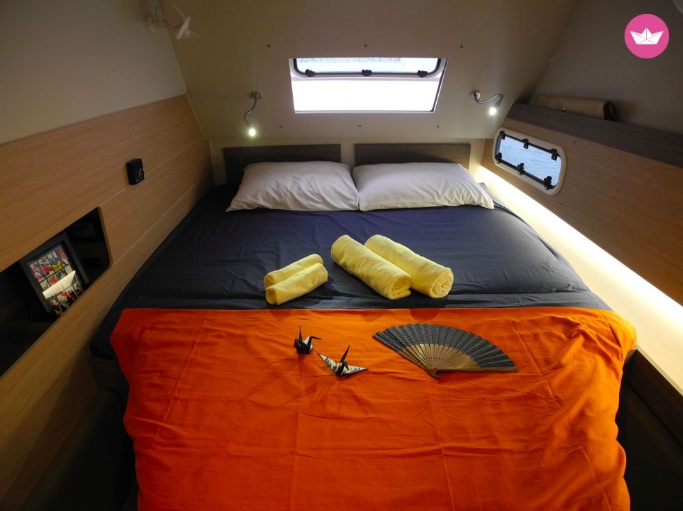 Description of Stéphanie's catamaran , Bonjour, Nous vous proposons d'embarquer à bord d'un luxueux catamaran, Bali 4.0, pour une croisière inoubliable avec équipage permettant de naviguer autour des îles de la mer de Seto, au Japon. Embarquement au port d'Uno Port ou tout autre port proche de la mer de Seto (Hiroshima, Onomichi). L'itinéraire est libre et vous pouvez choisir à votre convenance, ou bien nous pouvons vous proposer différents itinéraires sur plusieurs jours/semaines permettant de décourir de nombreuses merveilles. L'aménagement du bateau est idéal pour une croisière. Vous retrouverez 4 cabines doubles permettant d'accueillir jusqu'à 8 personnes dans un grand confort, ainsi que tout le nécessaire pour naviguer l'esprit libre et tranquille. Moments uniques, atypiques, et inoubliables assurés à bord de ce bateau de qualité. Vous pouvez me contacter sur la messagerie Catamaran Yacht Charter, je serai ravi d'échanger avec vous sur votre projet de navigation.
