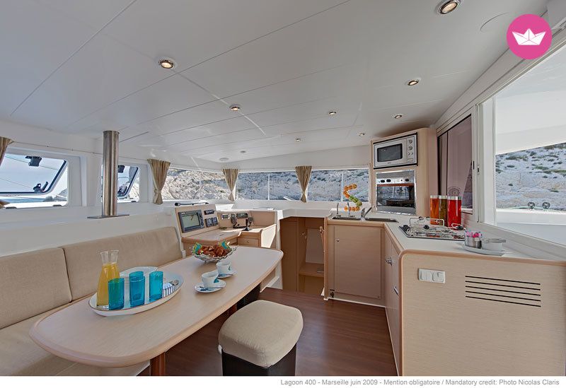 Description of Deborah's catamaran , Noleggio questo splendido Lagoon 400 del 2016 per trascorrere rilassanti giornate in compagnia della famiglia o degli amici. La stabilità e le dimensioni di questo catamarano vi permetteranno di veleggiare senza dover rinunciare al comfort di casa. Questo Lagoon 400 dispone di quattro comode cabine doppie con letto matrimoniale e di quattro bagni con doccia. La dientte è molto comoda e comprende un grande tavolo con divano per i pasti, una pratica cucina attrezzata per varie preparazioni e l'immancabile tavolo da carteggio. All'esterno c'è un comodo pozzetto con un grande divano con cuscini e tavolo per mangiare all'aria aperta. A prua c'è un grande prendisole in rete sul quale potrete rilassarvi sotto il sole. Il catamarano fa base a Tropea, da qui poterete facilmente raggiungere le acque cristalline delle isole Eolie e navigare tra gli incantevoli paesaggi offerti da queste isole. Il costo dell' eventuale skipper è di 200 euro al giorno, hostess 120€. Scrivetemi su Catamaran Yacht Charter per avere maggiori informazioni