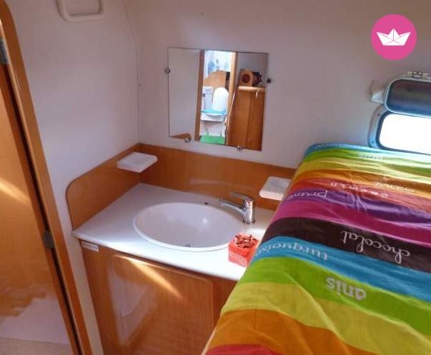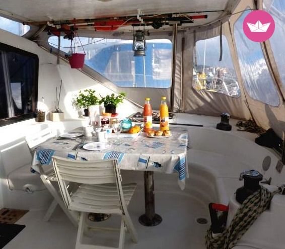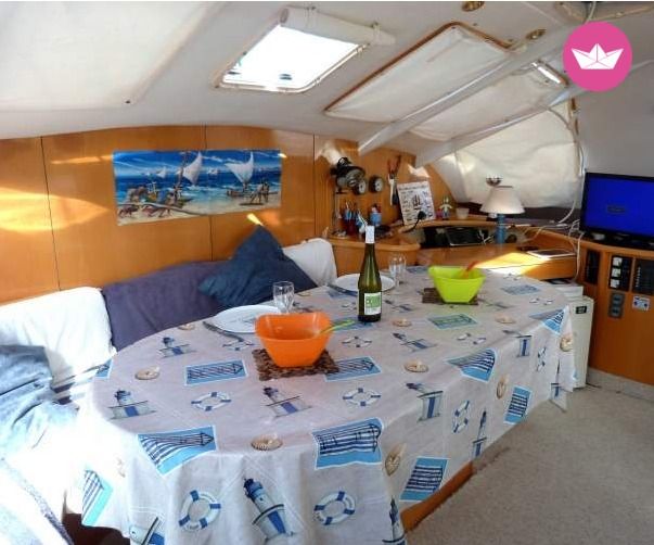 Description of Jean-Marie's catamaran , Pour MOINS CHER qu'une chambre d'hôtel...!!! LOUEZ... une ou plusieurs CABINES d' HOTES sur un CATAMARAN amarré au port du CAP d'AGDE ou réservez une croisière en co-navigation, propriétaire/skipper diplômé d' état et sa compagne à bord. A partir de 40€ la nuit et 250€ la semaine, ( tarif selon saison ) vous bénéficierez d'une cabine double/triple, équipée tout confort, dans un cadre insolite, privatisé et calme, à 3 mn à pied des plages, commerces, restaurants et animations du centre de la station balnéaire du CAP d'AGDE. (parking sécurisé à deux pas du bateau). Deux cabines sont disponibles pour la location à la nuit ainsi que deux couchages supplémentaires sur banquette. Noura et Jean Marie, vos hôtes, vous accueilleront pour un séjour convivial et personnalisé. Ils sauront vous faire découvrir le charme particulier de la vie à bord d'un catamaran stable et confortablement amarré au fond du port à quai(pas de mal de mer), et ils vous emmeneront en mer pour des sorties à la journée ou des croisières plus longues avec skipper. Ils vous guideront également vers les bonnes adresses et les bons plans de la station, tout en se faisant discrets afin de respecter votre intimité. Un catamaran est un voilier stable car posé sur ses deux coques. Votre cabine double tout confort est équipée d'un lit de 1,60m x 2, 00m, d'un lavabo et de rangements. Salon (tv, musique), cabinet de toilette, douche, wc, cockipt, pont, vous seront accessibles, et vous permettront d'apprécier la vie à bord.... et la délicieuse vue, confortablement installés sur les trampolines et matelas du bateau. Petits déjeuners, repas (coquillages....) sorties en mer (zodiac ou voile), croisières de plusieurs jours avec skipper/propriétaire diplômé d' Etat sont possibles sur demande pour des moments inoubliables. Programmes croisières en co-navigation sur mesure en avant saison et septembre et octobre... Calanques de Marseille, Iles de Porquerolle, Costa Brava, Baléares.... Pour un séjour insolite, en couple, en famille, entre amis, .... pour une fête ou un évenement particulier Pour faire un cadeau surprise... Pour un moment en amoureux.... Pour changer de cadre.... Pour découvrir le monde du bateau... Pour vous perfectionner à la voile... Pour des vacances différentes... et surtout pour un séjour personnalisé et convivial, n'hésitez pas à louer une cabine d'hôtes ou à réserver votre croisière sur notre catamaran.