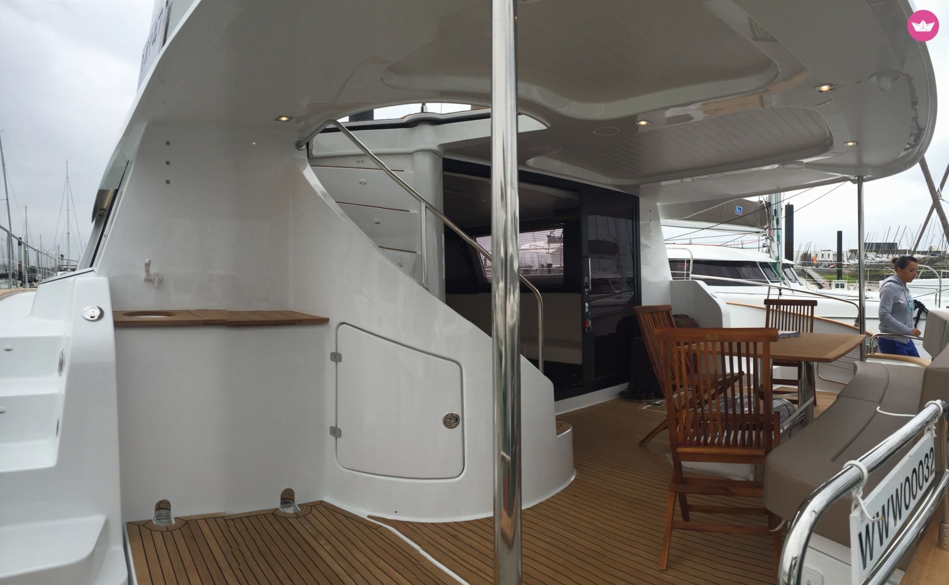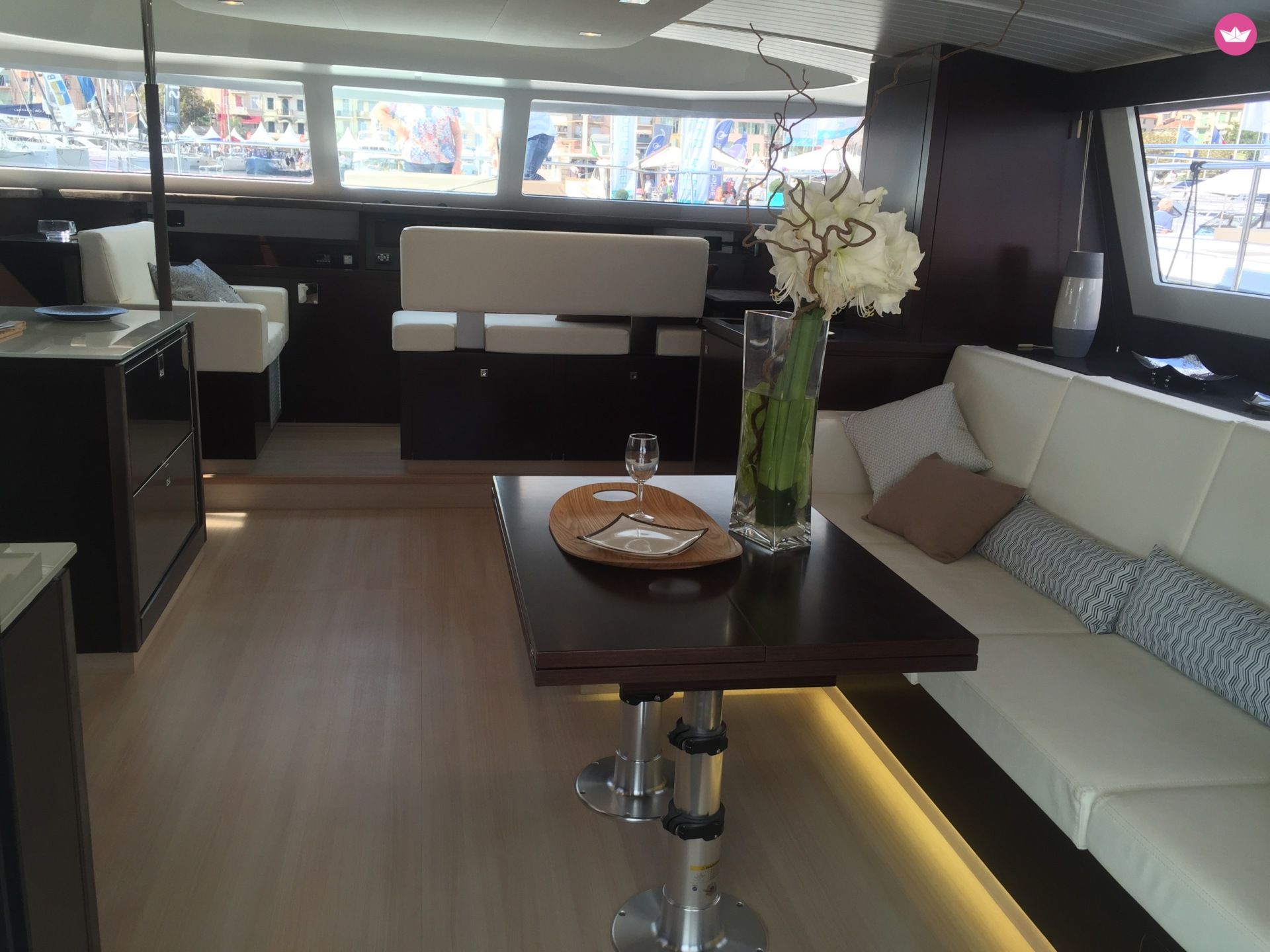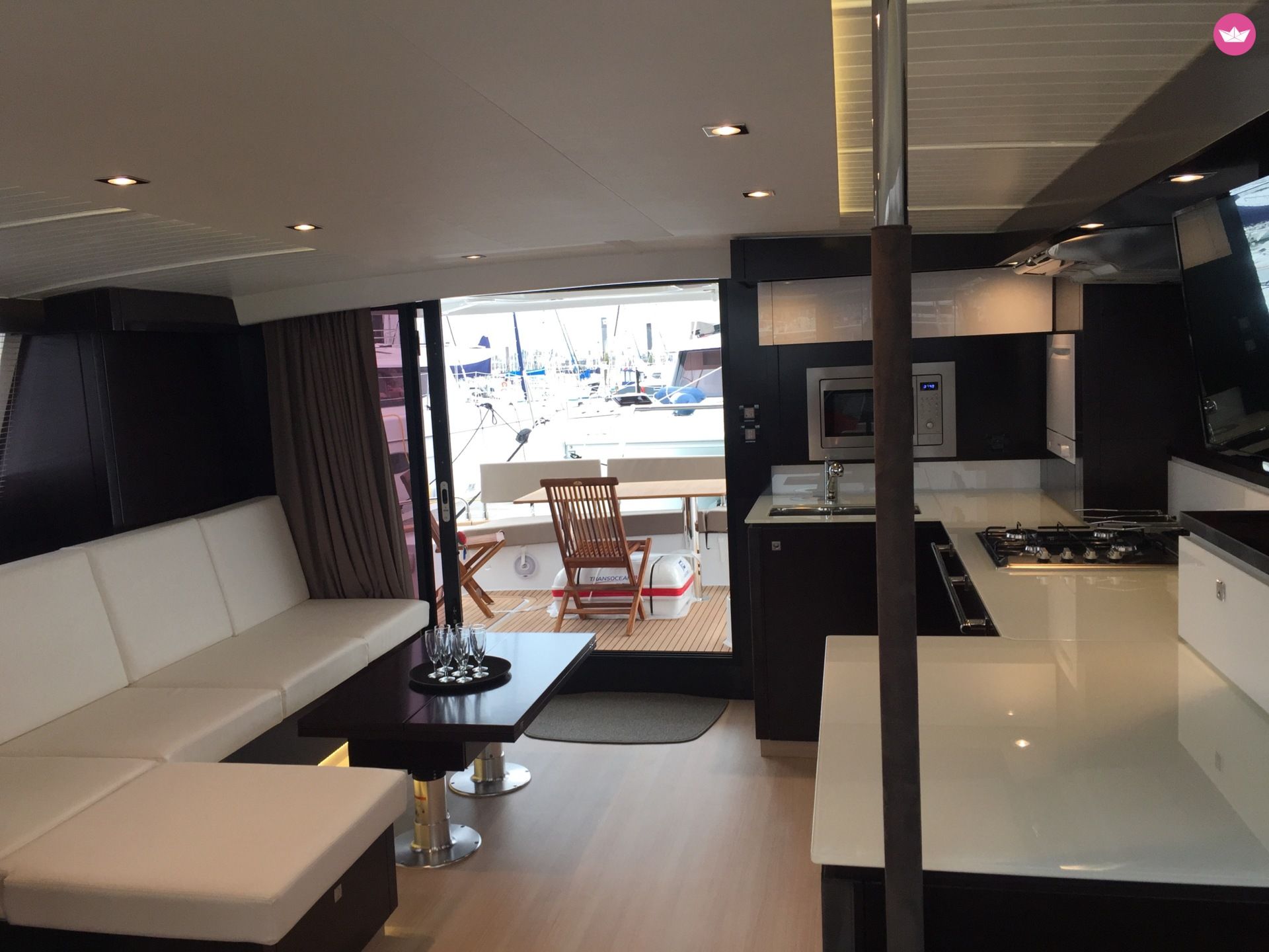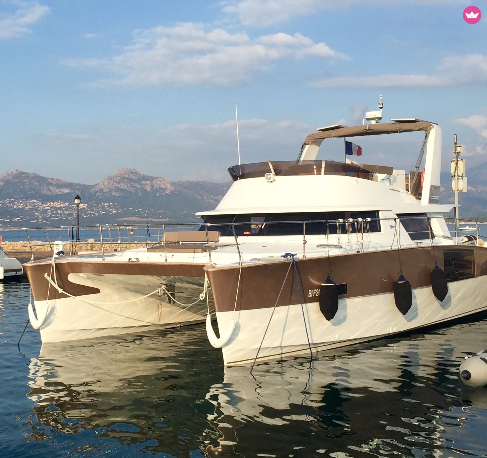 Description of Sabrina's catamaran , Conçu pour le plaisir de la croisière, le Cumberland 47 LC vous promènera en toute sécurité le long des côtes de la Corse, de Calvi au Cap Corse, ou plus au sud en direction d'Ajaccio. Il est idéal pour un groupe d'amis ou une sortie en famille. En effet, il peut accueillir jusqu'à 8 personnes grâce à sa grande suite propriétaire (et sa salle de bain privative), ses deux cabines doubles et leurs deux salles de bain, sa cabine simple avec salle de bain et sa pointe avant. Equipements : dessalinisateur, groupe électrogène, climatisation carré & cabines, panneaux solaires Avec un grand espace à l'avant, un carré arrière très agréable et un Flying Bridge avec espace bain de soleil, ce catamaran est extrêmement convivial et maximise les espaces de vie. Veuillez noter que pour ce catamaran, le skipper est imposé (compter 250€/j). Si besoin, nous pouvons mettre à votre disposition une hôtesse (200€ par jour). C'est l'idéal si vous souhaitez vous consacrer intégralement à votre croisière en oubliant les contraintes logistiques. Enfin, deux options sont obligatoires sur ce catamaran : - Nettoyage : 220€ ; - Consommables : 40€ (gaz, piles...). Départ le samedi à 12h, retour le vendredi à 18H. Possibilité de quitter le bateau à 8h le samedi sous condition. Merci de compléter votre CV nautique ou de préciser vos expériences en mer dans votre demande de réservation. Veuillez également noter qu'une fois la réservation confirmée, il n'y a pas d'annulation possible. Je vous recommande donc vivement de souscrire à une assurance annulation (i.e Mondial Assistance proposé par Catamaran Yacht Charter)