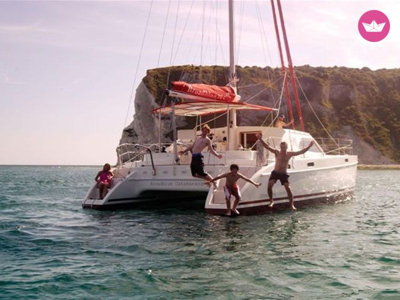 Description of Christos's catamaran **************************************************************************************************************************** | We provide both day and sunset cruise| Day Cruise: 10h30-15h30 and Sunset Cruise: 15h30-sunset | Welcome to our wonderful Catamaran Broadblue 385 located in one of the most beautiful places on earth, Santorini! Our catamaran has been built in 2007 and since then we take continuously take care of it so that you can enjoy a perfect day with us! It can take up to 10 people and our crew (1 skipper and 1 or 2 hostesses) will give the best out of their services just to make sure you won't miss anything during our incredible cruise. The suggested sightseeing spots include Red Beach, White Beach, Thirassia Island, the Volcano, Hot Springs and many more places! CRUISE PACKAGE INCLUDE: ✓ Transportation from/to the hotel by a/c bus ✓ In case you have our own transportation, you have to be on board 10’ before departure time ✓ Welcome on board with complimentary soft drinks and refreshments ✓ Lunch or dinner (Bbq menu) vegetarian meal upon request ✓ Wine from local wineries, beer and soft drinks ✓ Snorkeling gear ✓ Beach towels ✓ Captain and two crew (sailor, hostess) ✓ Insurance coverage for our guests What are you waiting for? Send us a message through Catamaran Yacht Charter and we hope to see you soon! ****************************************************************************************************************************