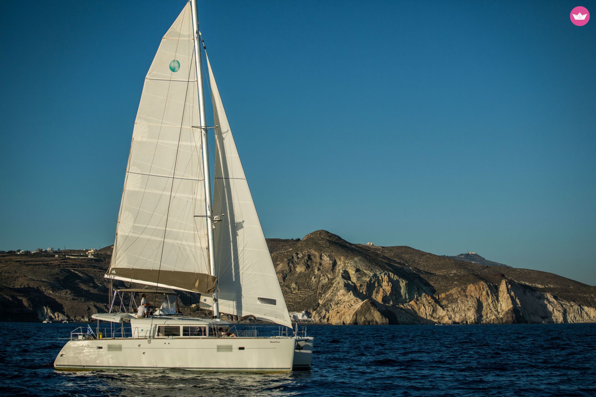 Description of Christina 's catamaran ______________________________________________________________________________________________________ PRICES DISPLAYED ARE FOR UP TO 4 GUESTS RATE FOR HALF DAY TRIPS 1200€ UP TO 4 GUESTS EVERY EXTRA PASSENGER COSTS 70€ - Full Day Trips Check-in: 10:30 Check-out: 20:30 - Morning Half Day Trips Check-in: 10:30 Check-out: 15:30 - Sunset Trips Check-in: 15:30 Check-out:after sunset ______________________________________________________________________________________________________ Let us present you our catamaran Lagoon 450 which has been built in 2015 and is available for daily cruises in Santorini. The yacht combines modernity with luxury and it offers a spacious and comfortable interior and exterior spaces to its guests. It has a large area ideal for sunbathing and the fly bridge offers a unique spot for admiring the sunset. Our catamarans can also be rented for special moments like the celebration of a birthday or other special events. Whatever the occasion we can provide you with the best service and promise to you an unforgettable experience on board! Included: - Crew - Transfer from/to the hotel - Maps and information about the island - Full menu on-board customized upon request - Open bar with white local wine & beverages - Towels - Snorkeling gear Let's start planning your daily cruise now!