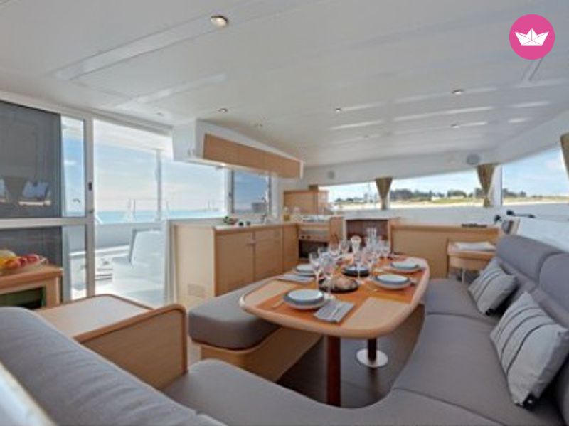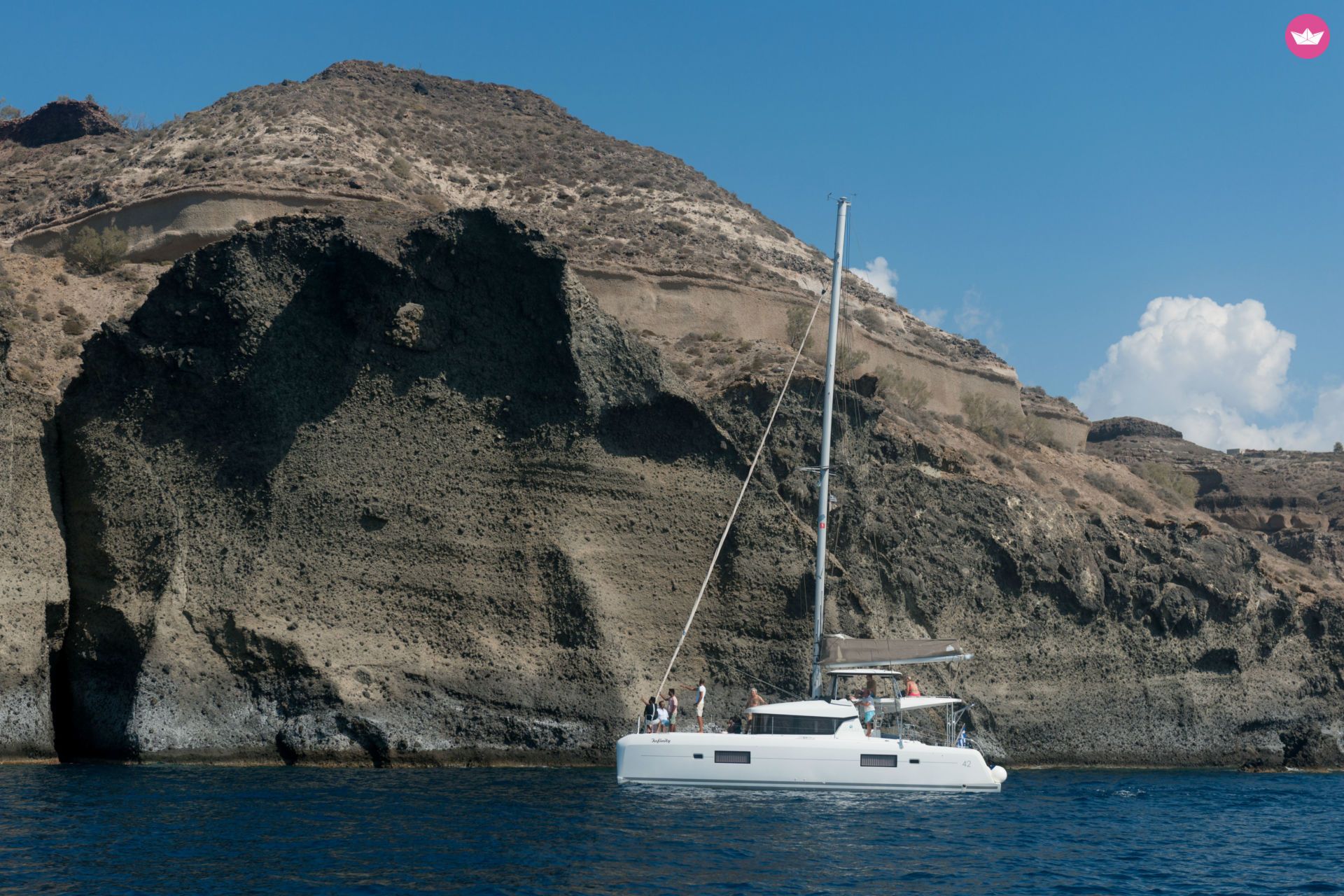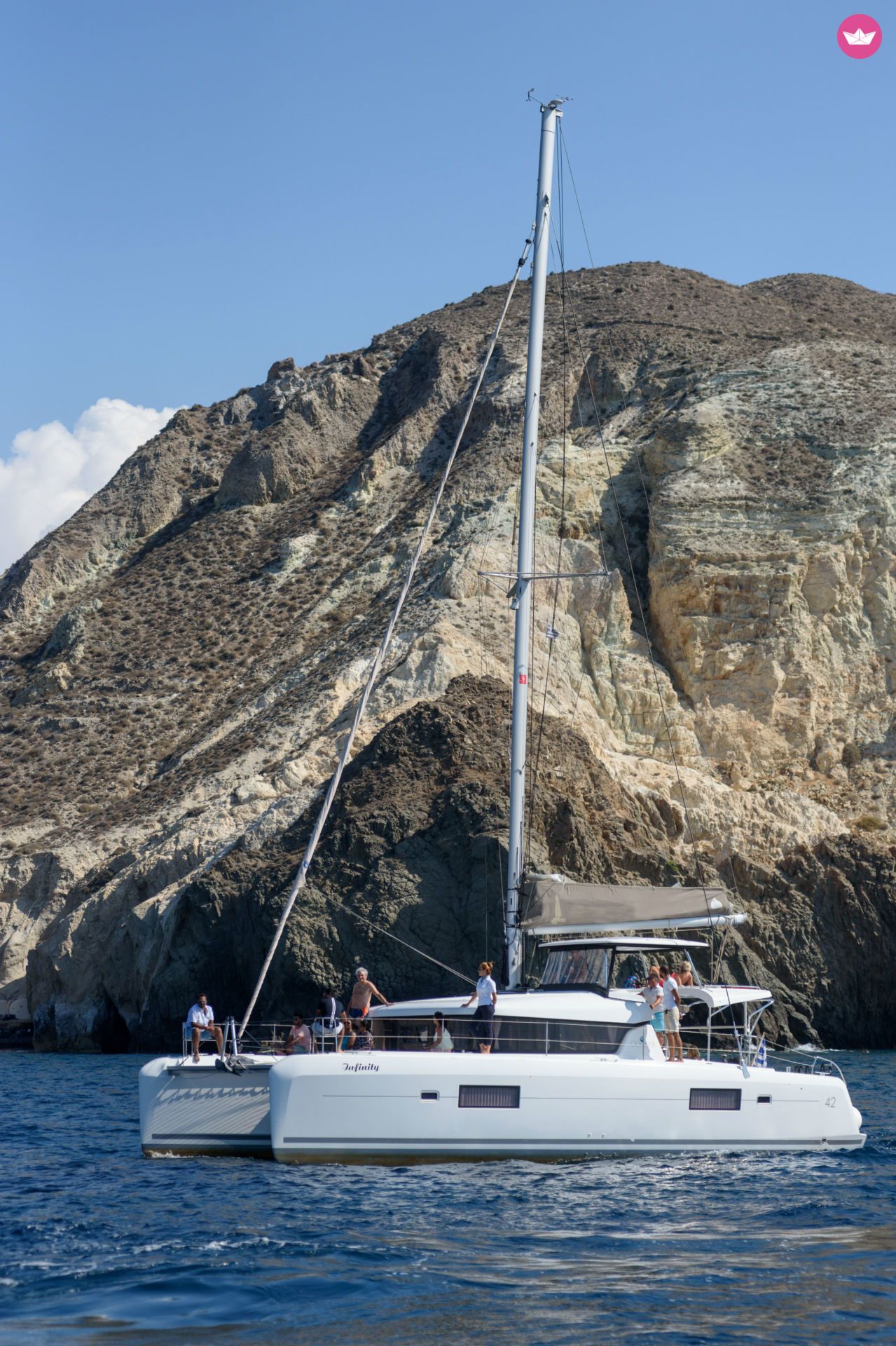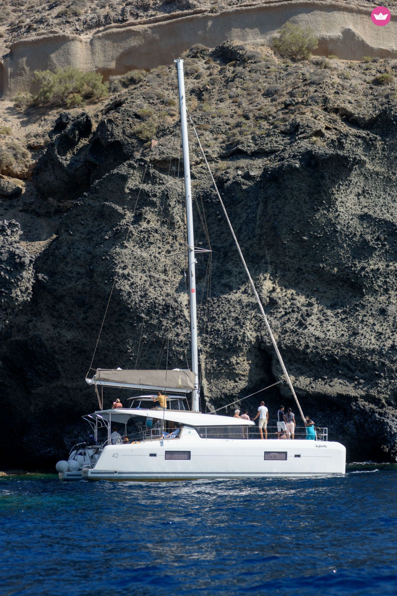 Description of Christina 's catamaran ______________________________________________________________________________________________________ PRICES DISPLAYED ARE FOR UP TO 4 GUESTS RATE FOR HALF DAY TRIPS 1100€ UP TO 4 GUESTS EVERY EXTRA PASSENGER COSTS 70€ - Full Day Trips Check-in:10:30 Check-out: 20:30 - Morning Half Day Trips Check-in: 10.30 Check-out: 15:30 - Sunset Trips Check-in: 15:30 Check-out:after sunset ______________________________________________________________________________________________________ Our Catamaran Lagoon 42 is one of our newest yachts. Built in 2017 this new design catamaran features a unique layout with a single level cockpit which will elevate your cruising experience. If you are looking for the perfect way to celebrate a special moment in you life then we have what you need. Our catamaran will offer you the opportunity to admire the magnificent sunset under the infamous caldera of Santorini. Included: - Crew - Transfer from/to the hotel - Maps and information about the island - Full menu on-board customized upon request - Open bar with white local wine & beverages - Towels - Snorkeling gear We hope to receive your messages on Catamaran Yacht Charter soon!