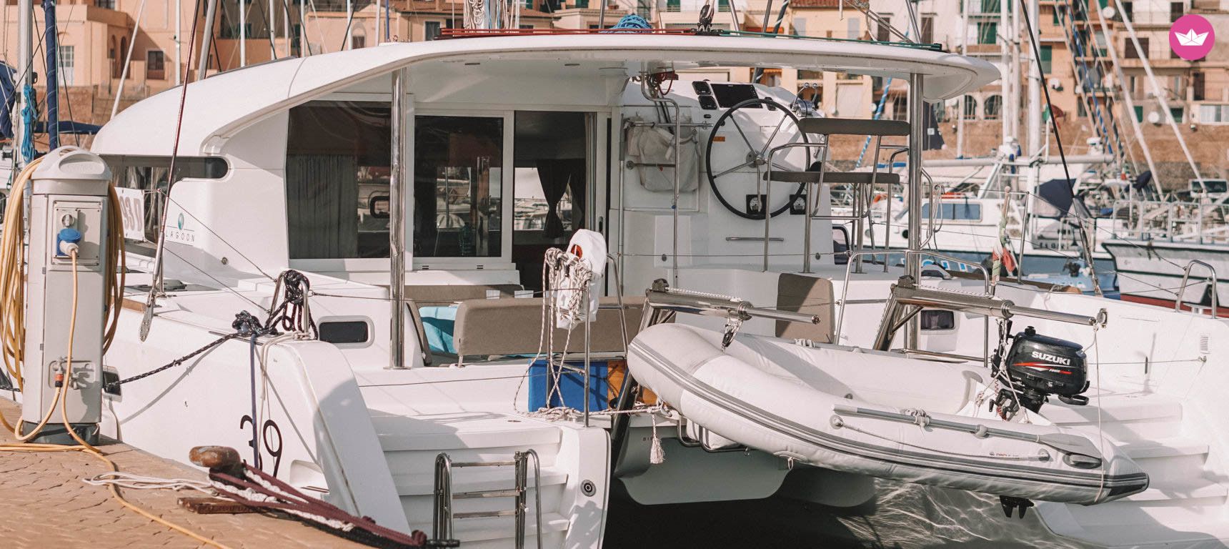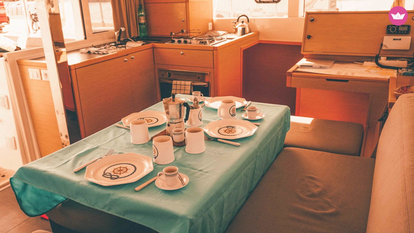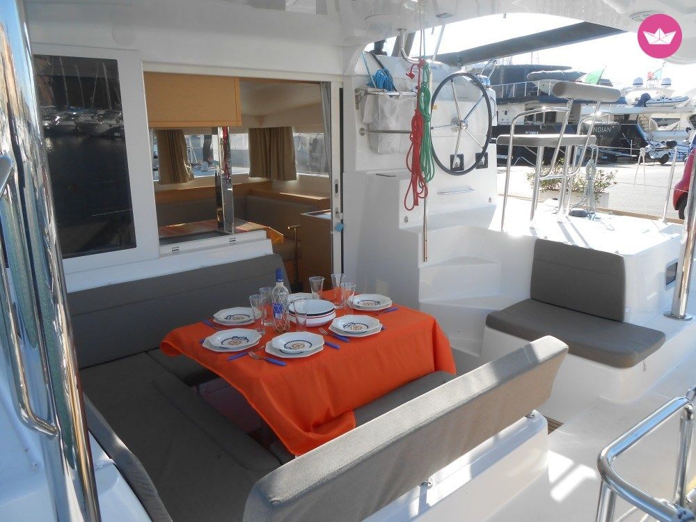 Description of Vittorio's catamaran , Vivi un'esperienza in Lagoon con questo nuovissimo catamarano Lagoon 39. Il catamarano internamente dispone di 4 cabine e 4 bagni + cabina skipper e hostess con bagno. La dinette é molto spaziosa ed é fornita di tavolo e divano per i pasti e di una ampia cucina attrezzata per molteplici preparazioni. All' esterno c'é un ampio pozzetto con una comoda zona pranzo e a prua un grande prendisole a rete sul quale potrete rilassarvi. Tra le dotazioni di bordo: Genoa Avvolgibile, bimini, VHF, LOG, wind, plotter, timone a ruota, frigorifero elettrico, stereo-CD, boiler, doccia pozzetto, tender 2,70 mt. I noleggi vanno da sabato a sabato con rientro alla base il venerdi sera. Extra: Pulizia finale (obbligatoria) 150€ Skipper 180€/giorno Hostess 110€/giorno Biancheria 30€/cabina Fuoribordo 150€/settimana Wifi 30.00€/settimana Regalati una crociera tra le Isole Pontine, tra natura e sole alla ricerca di isole solitarie e magiche ancora incontaminate, ma ricche di antiche tradizioni marinare e storiche. Visita lo straordinario porto romano di Ventotene scavato nel tufo e l’incantevole paesino di Ponza, che incornicia il porto, ricco di taverne dai raffinati intrattenimenti enogastronomici. Non dimenticarti infine la selvaggia Palmarola, famosa per il meraviglioso mondo sottomarino. Aspetto i tuoi messaggi su Catamaran Yacht Charter.
