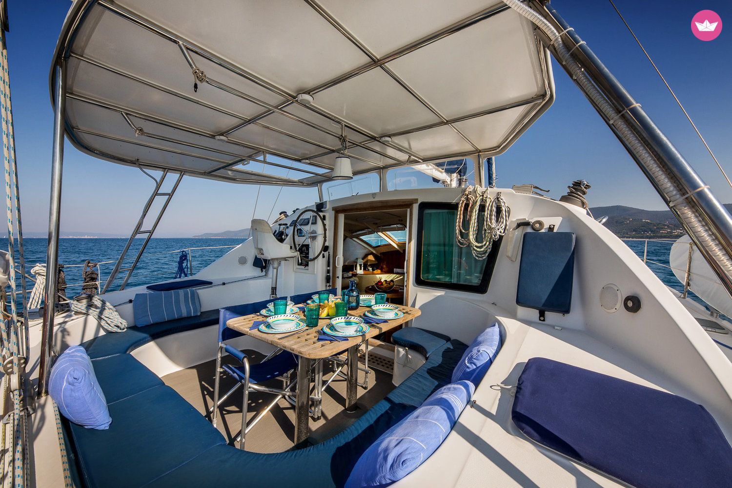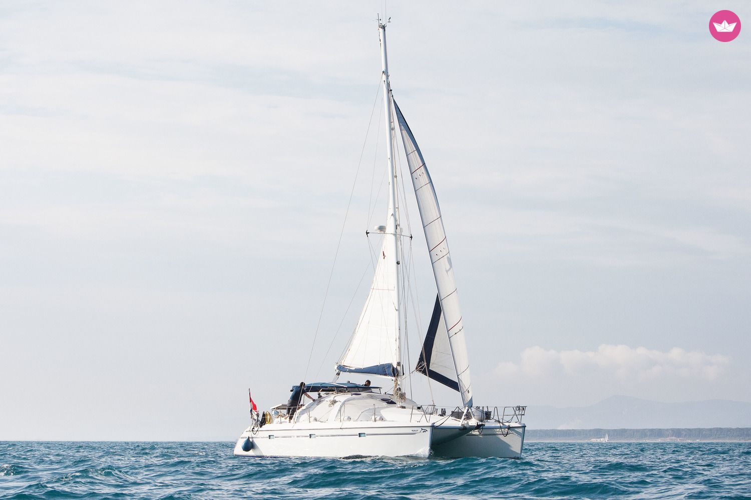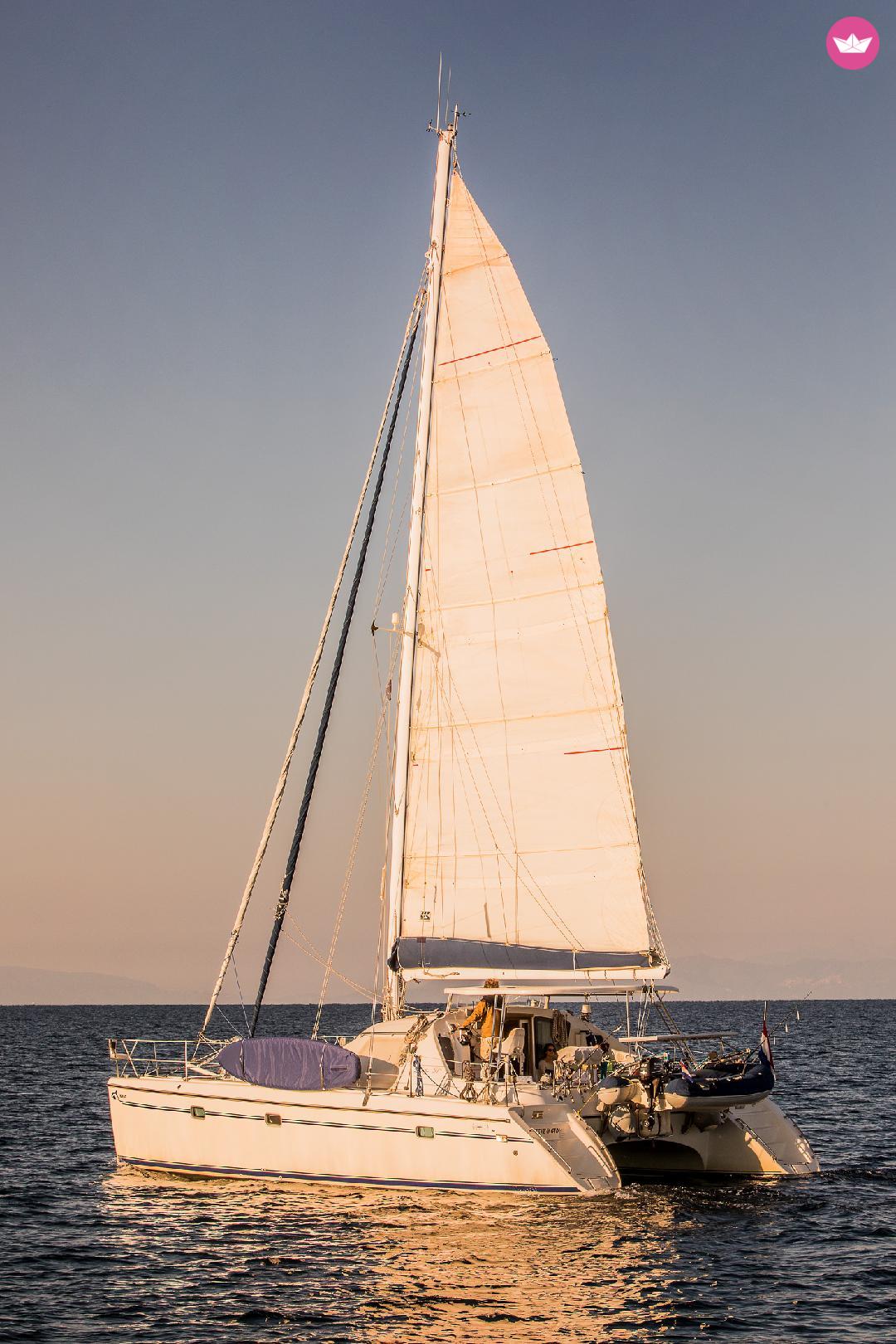 Description of stefano's catamaran , Noleggio questo splendido Privilege nella gamma dei catamarani oceanici è sicuramante uno dei primi nomi che ti viene in mente. Nel2014 finalmente sono riuscito a trovarne uno in Croazia a Tribunj e mentre circunnavigavo l'Italia per portarlo in toscana mi sono subito reso conto della sua robustezza e sicurezza che mi trasmetteva. Dotato di un interno in ciliegio americano e super coibentato in pelle di struzzo senza un pezzo di vetroresina in vista si presenza con tre cabine molto spaziose per le sue dimensioni e 2 bagni,uno privato per la cabina armatoriale e uno molto grande con box doccia separato. Può ospitare fino a 6 persone.Quando iniziai la mia attivita di charter ,dato che navigo sempre in compagnia del mio inseparabile bassotto Giotto,decisi di chiamare il catamarano Steve&Gio'ovvero io Stefano e lui Giotto. In questi 5 anni ho lavorato molto a bordo fuori stagione per renderlo piu efficiente e comodo che mai vista la prospettiva di prendere l'oceano tra qualche anno.La mia base è a Marina di Scarlino loc . Puntone a Follonica nel cuore del verde della maremma.da li in solo 2 ore si puo raggiungere l'isola d'Elba e tutto l'arcipelago toscano per poi raggiungere facilmente la corsica. Sono inclusi nel prezzo i costi di Skipper, Tender con Fuoribordo e SUP! Sono invece esclusi dal prezzo i costi di carburante, cambusa, porti, lenzuola (20€ a cabina) e pulizie finali 120€ Per maggiori informazioni aspetto i vostri messaggi su Catamaran Yacht Charter!