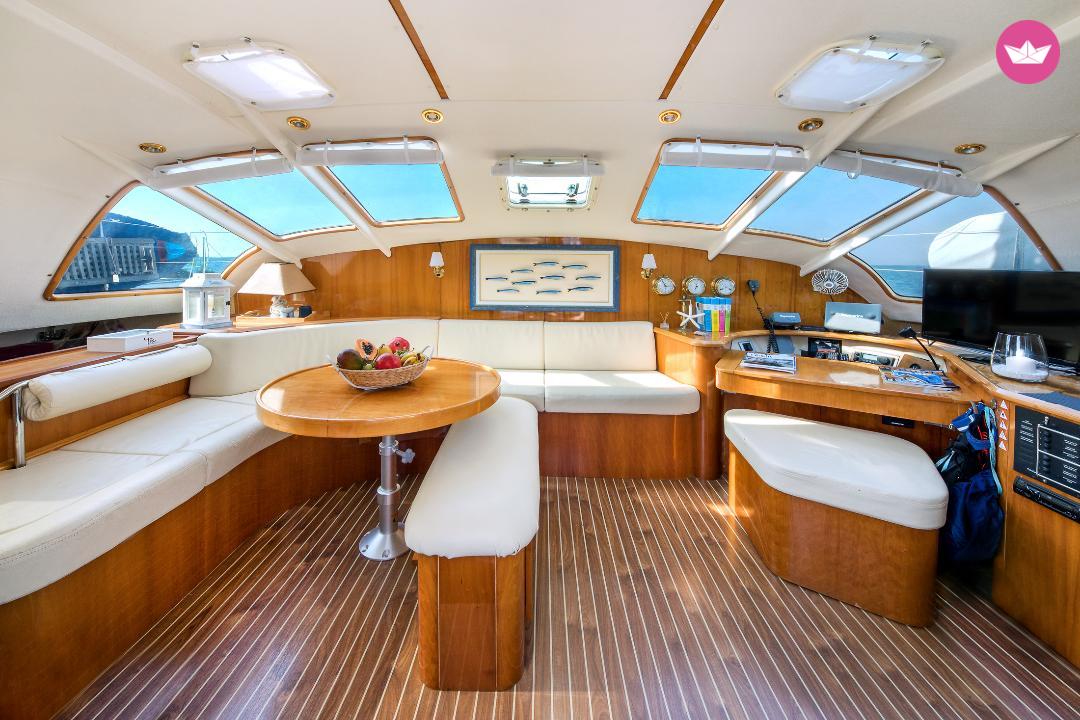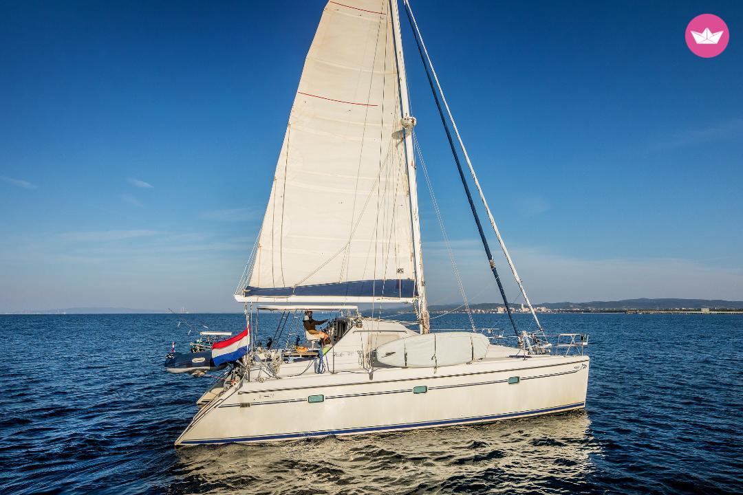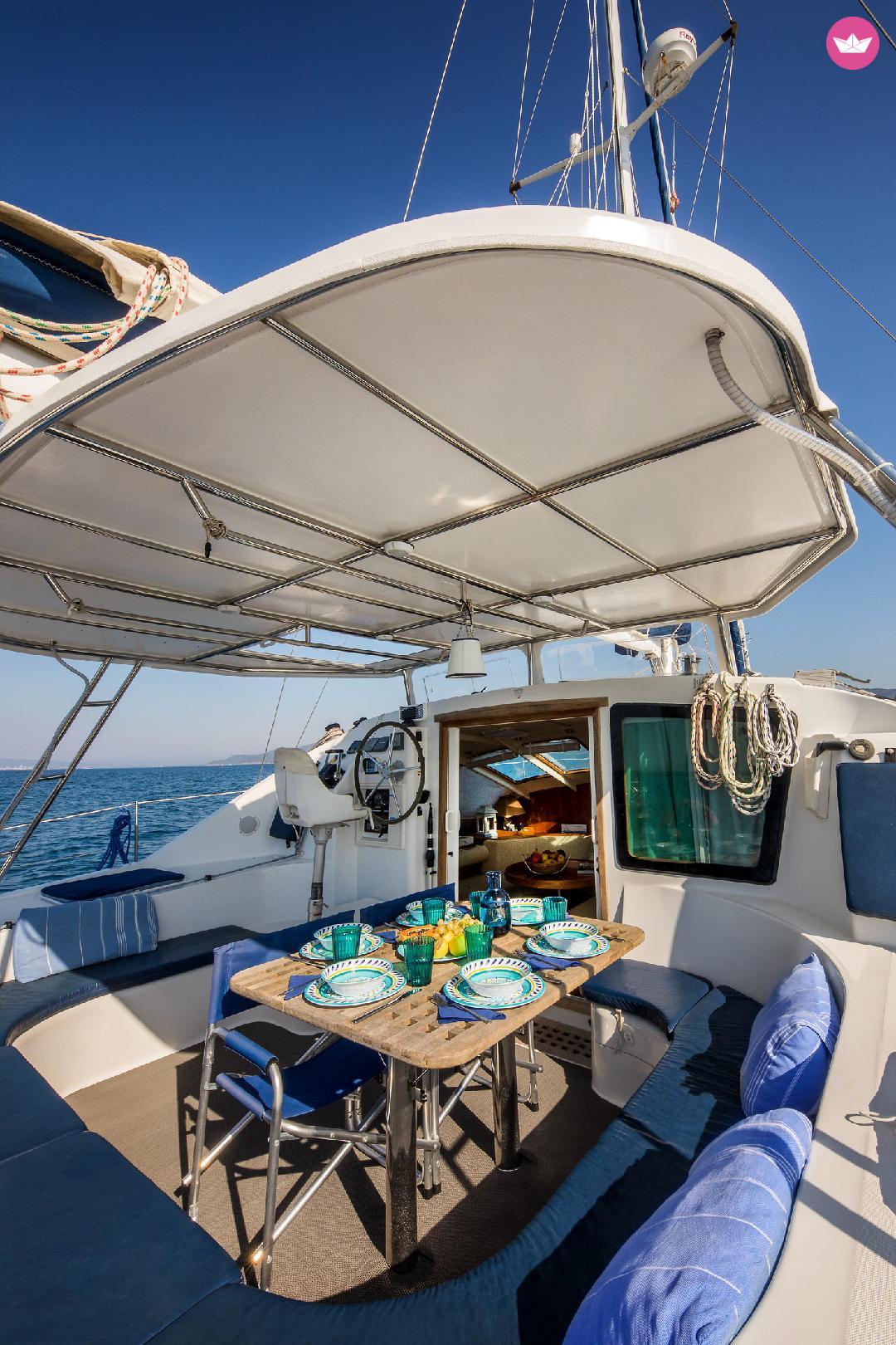 Description of stefano's catamaran , Noleggio questo splendido Privilege nella gamma dei catamarani oceanici è sicuramante uno dei primi nomi che ti viene in mente. Nel2014 finalmente sono riuscito a trovarne uno in Croazia a Tribunj e mentre circunnavigavo l'Italia per portarlo in toscana mi sono subito reso conto della sua robustezza e sicurezza che mi trasmetteva. Dotato di un interno in ciliegio americano e super coibentato in pelle di struzzo senza un pezzo di vetroresina in vista si presenza con tre cabine molto spaziose per le sue dimensioni e 2 bagni,uno privato per la cabina armatoriale e uno molto grande con box doccia separato. Può ospitare fino a 6 persone.Quando iniziai la mia attivita di charter ,dato che navigo sempre in compagnia del mio inseparabile bassotto Giotto,decisi di chiamare il catamarano Steve&Gio'ovvero io Stefano e lui Giotto. In questi 5 anni ho lavorato molto a bordo fuori stagione per renderlo piu efficiente e comodo che mai vista la prospettiva di prendere l'oceano tra qualche anno.La mia base è a Marina di Scarlino loc . Puntone a Follonica nel cuore del verde della maremma.da li in solo 2 ore si puo raggiungere l'isola d'Elba e tutto l'arcipelago toscano per poi raggiungere facilmente la corsica. Sono inclusi nel prezzo i costi di Skipper, Tender con Fuoribordo e SUP! Sono invece esclusi dal prezzo i costi di carburante, cambusa, porti, lenzuola (20€ a cabina) e pulizie finali 120€ Per maggiori informazioni aspetto i vostri messaggi su Catamaran Yacht Charter!