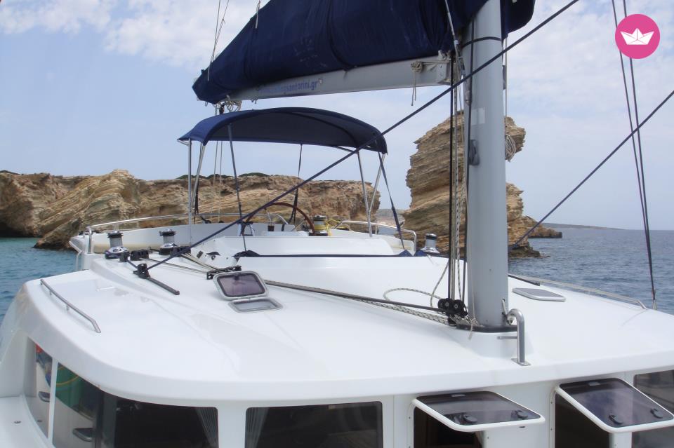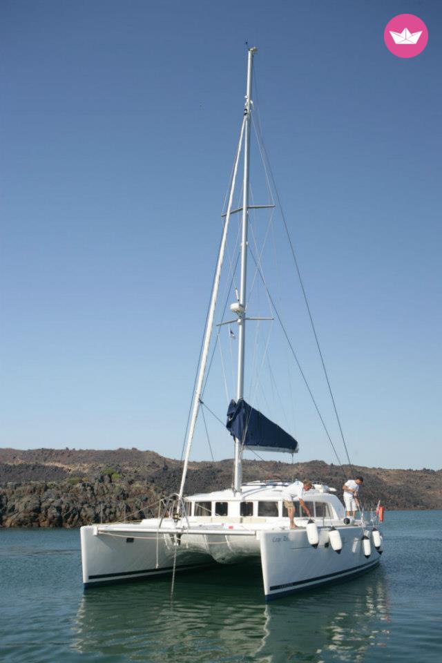 Description of Michalis's catamaran **************************************************************************************************************************** DISPLAYED PRICE FOR 4 PERSONS | More than 4 persons? Send us a message to ask for a price 2 Cruises per day: Day cruise: 10AM - 14PM Sunset cruise: 14:30 - 20:30 Let us introduce you our beautiful and luxurious catamaran Lagoon 440, that can take you to the greatest places of Santorini with the maximum comfort and safety! Probably one of the most famous things about Santorini is its sunset, and we are more than pleased to show you all the perfect spots that can create a unique atmosphere for you in order to enjoy the sunset in the best way possible. Our crew (skipper, sailor and hostess) has many years of experience in taking care of our customers but he has also a long experience in sailing. This means that you will travel with safety and you will have everything you need on board. What is included: - Transfers to and from the yacht - Water, soft drinks, wine, beer - BBQ meal on board - Cold plates and salads - Snorkeling equipment - Port Authority expenses - All taxes - Captain & crew - Full insurance - Fuel Places we prefer to sail with you: Ammoudi bay Thirassia island Sulfur Springs Lighthouse of Akrotiri Indian Face Mountain Mesa Pigadia Beach or Red Beach Fira Old Port Eftapedes church Armeni bay Send us a message through Catamaran Yacht Charter and we hope to see you soon! ****************************************************************************************************************************
