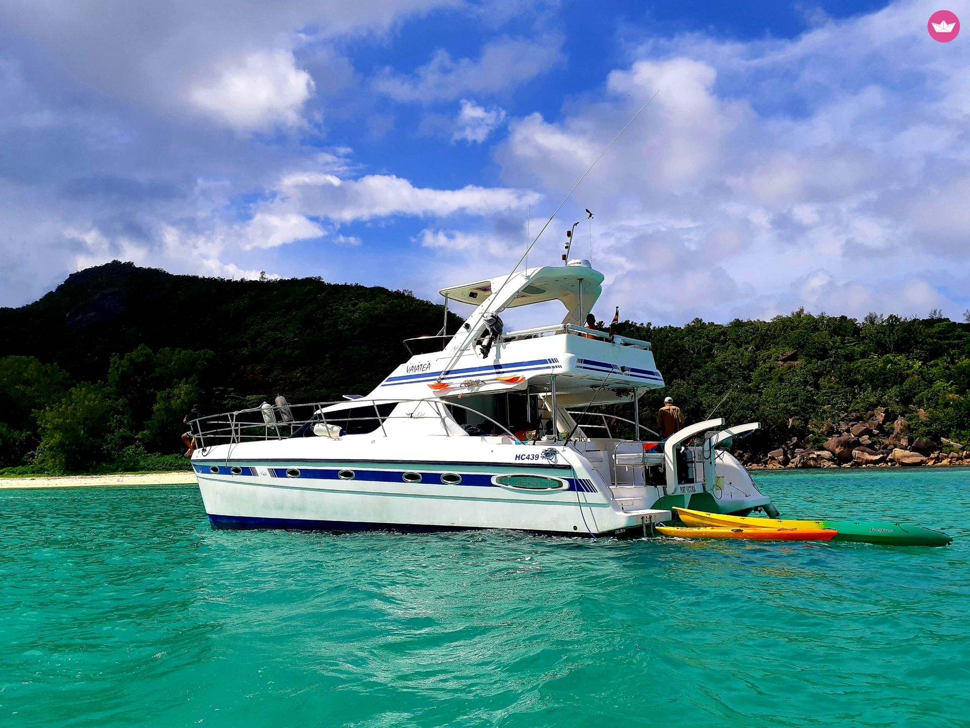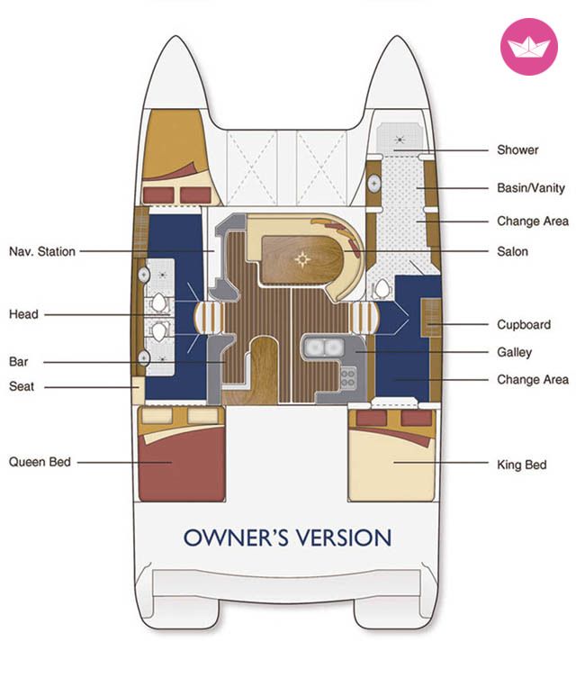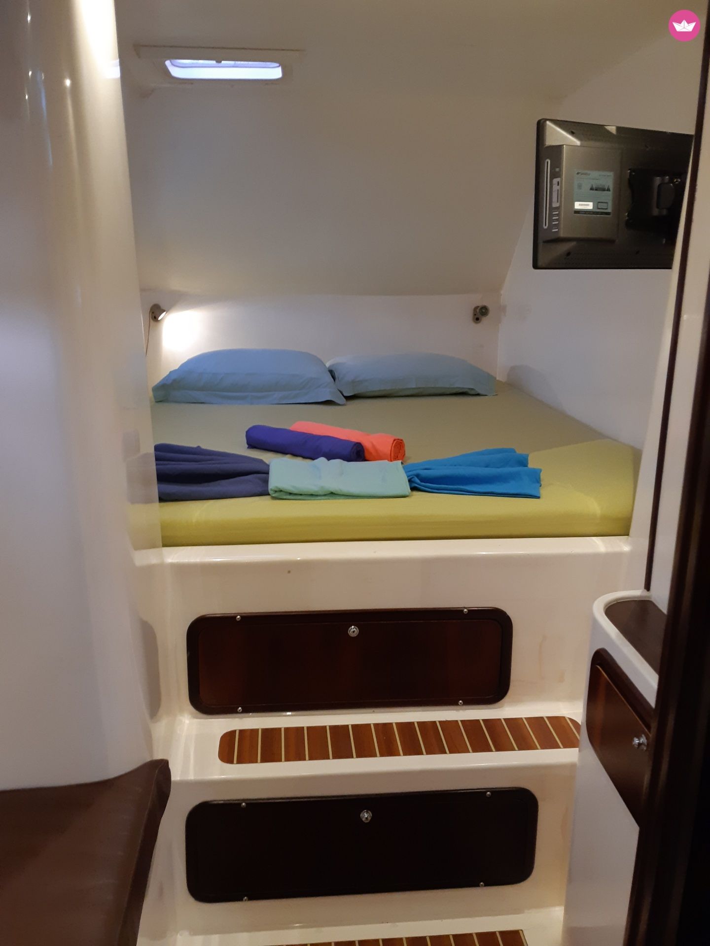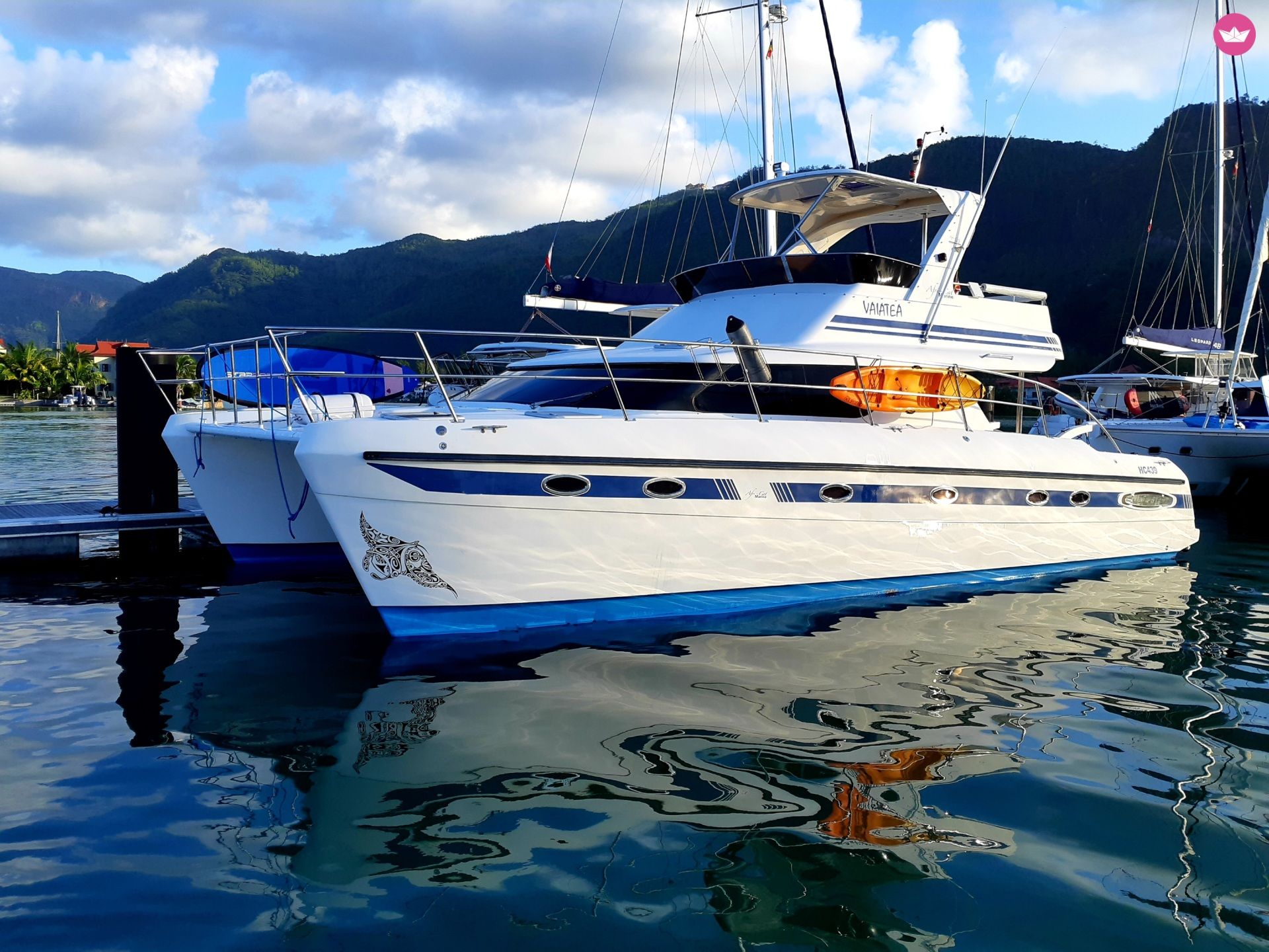 Description of Frédéric's catamaran Africat 420, built in 2006 - renovated in 2018, it benefits from the experience of Africat Marine (South Africa). This catamaran is particularly stable in navigation, with habitable spaces of great comfort It includes a raised cockpit, protected from the sun by a awning, with a table for 6 people, perfect for an aperitif with panoramic views of the most beautiful anchorages. Because of its design, this motorized catamaran consumes little fuel.