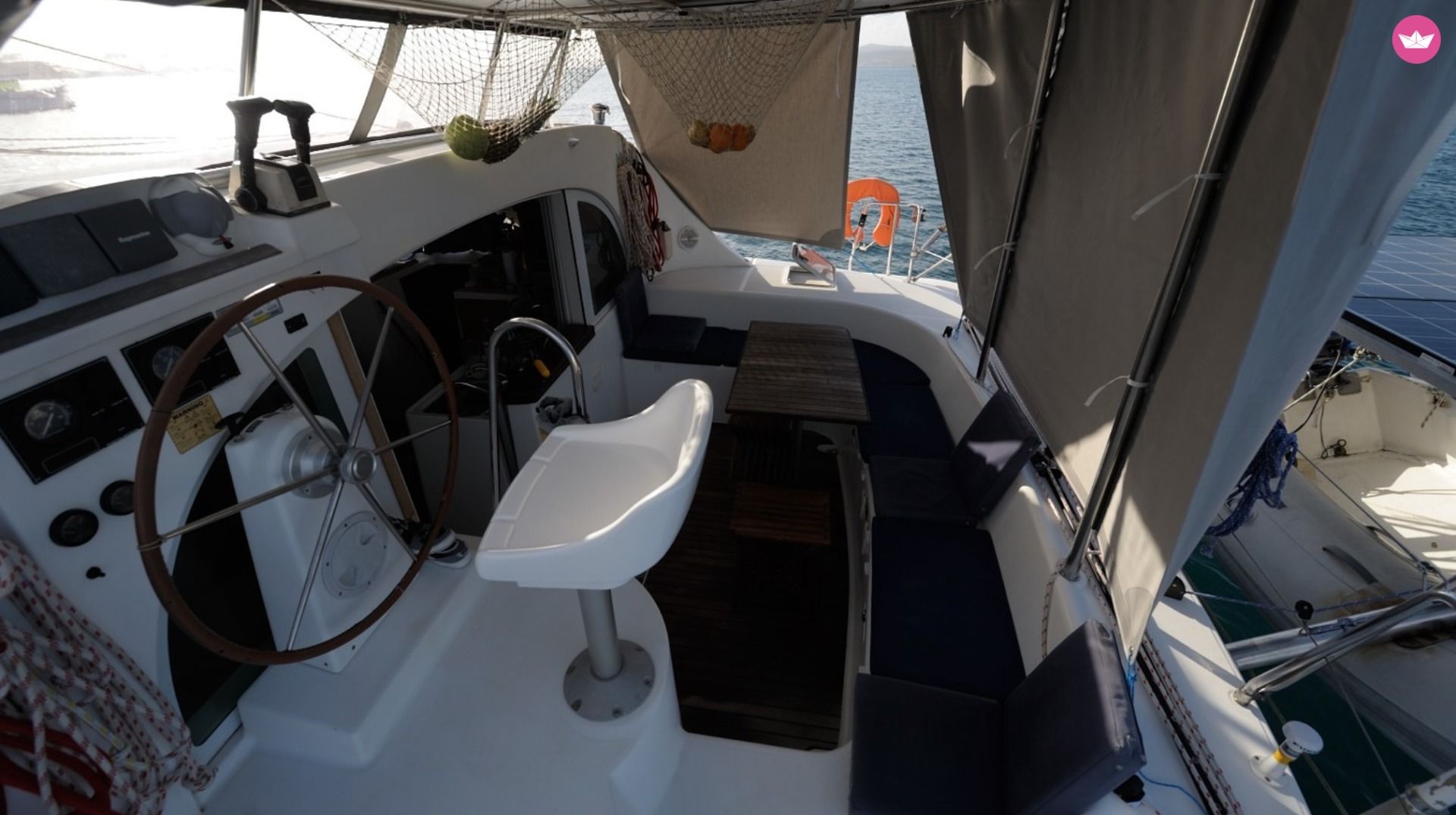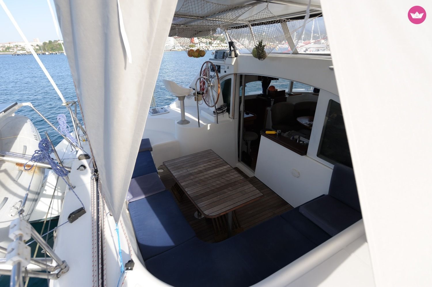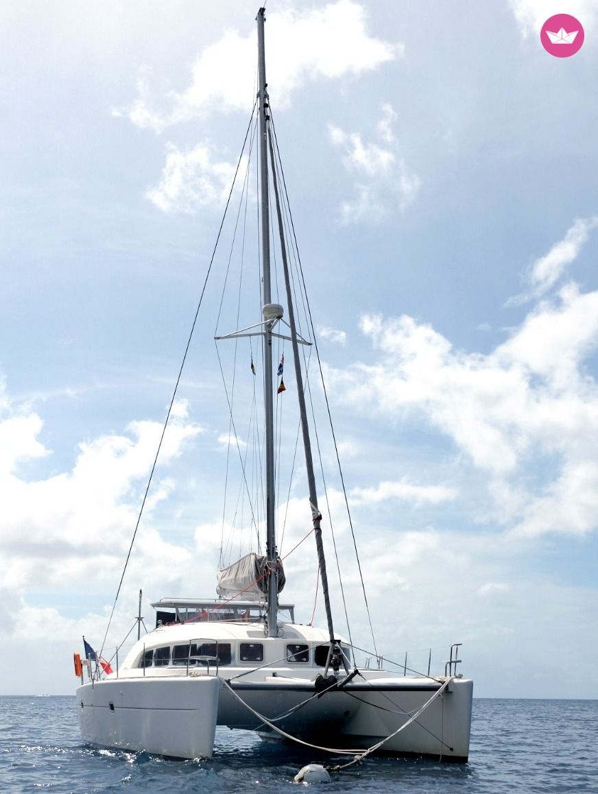 Description of Didier's catamaran , A partir de la Guadeloupe, accédez à des lieux de rêve : - Ste Anne, St François en Guadeloupe, la réserve Cousteau, - Petite Terre constituée de deux îles, Terre de haut et Terre de bas, l'ensemble est une merveilleuse réserve, - Les Saintes, - Marie-Galante ... et avec un peu plus de navigation, pour un dépaysement : la Dominique ou Antigua. Le voilier est très bien entretenu (grand'voile, génois, pilote automatique et chaîne sont neufs). Le navire est équipé de : GPS, AIS, logiciel de navigation et radar sans oublier une dotation médicale de bord ( matériel médical et pharmacie de bord). Votre cadre de vie : un cockpit en teck, un carré avec cuisinière (2 feux et four), frigo, eau douce par dessalinisateur, douche intérieure et de pont ... Le capitaine propriétaire partagera sa passion de la mer, au-dessus : les plaisirs de la voile, au-dessous : en pratiquant le snorkling (palme, masque, tuba). Le coût de la location ne comprend pas la consommation des carburants, l'avitaillement, les coûts de mouillage sur bouée, les frais de clearance.