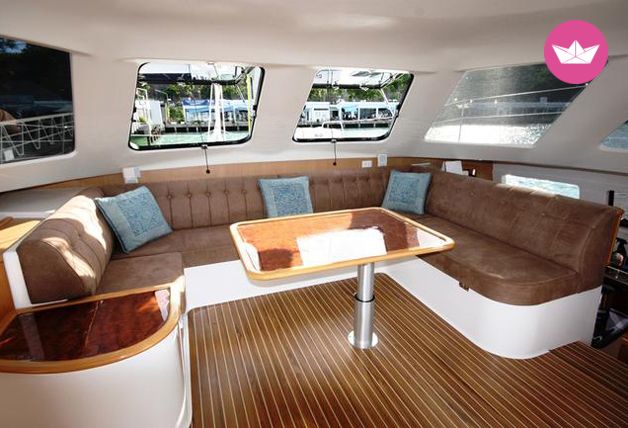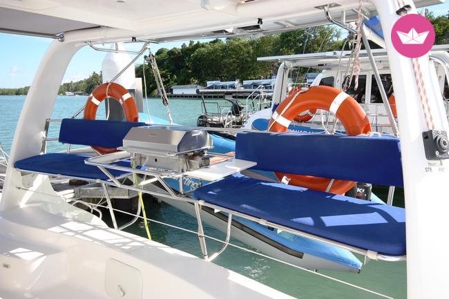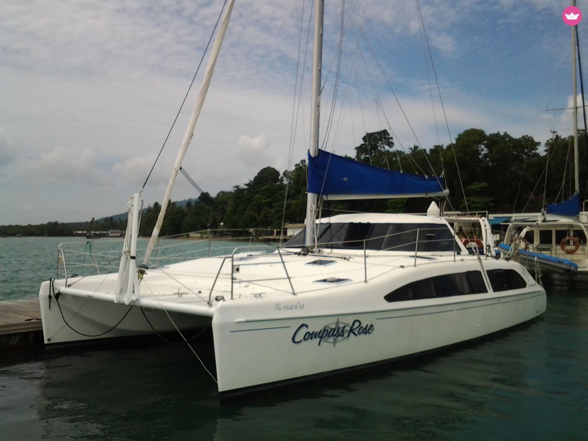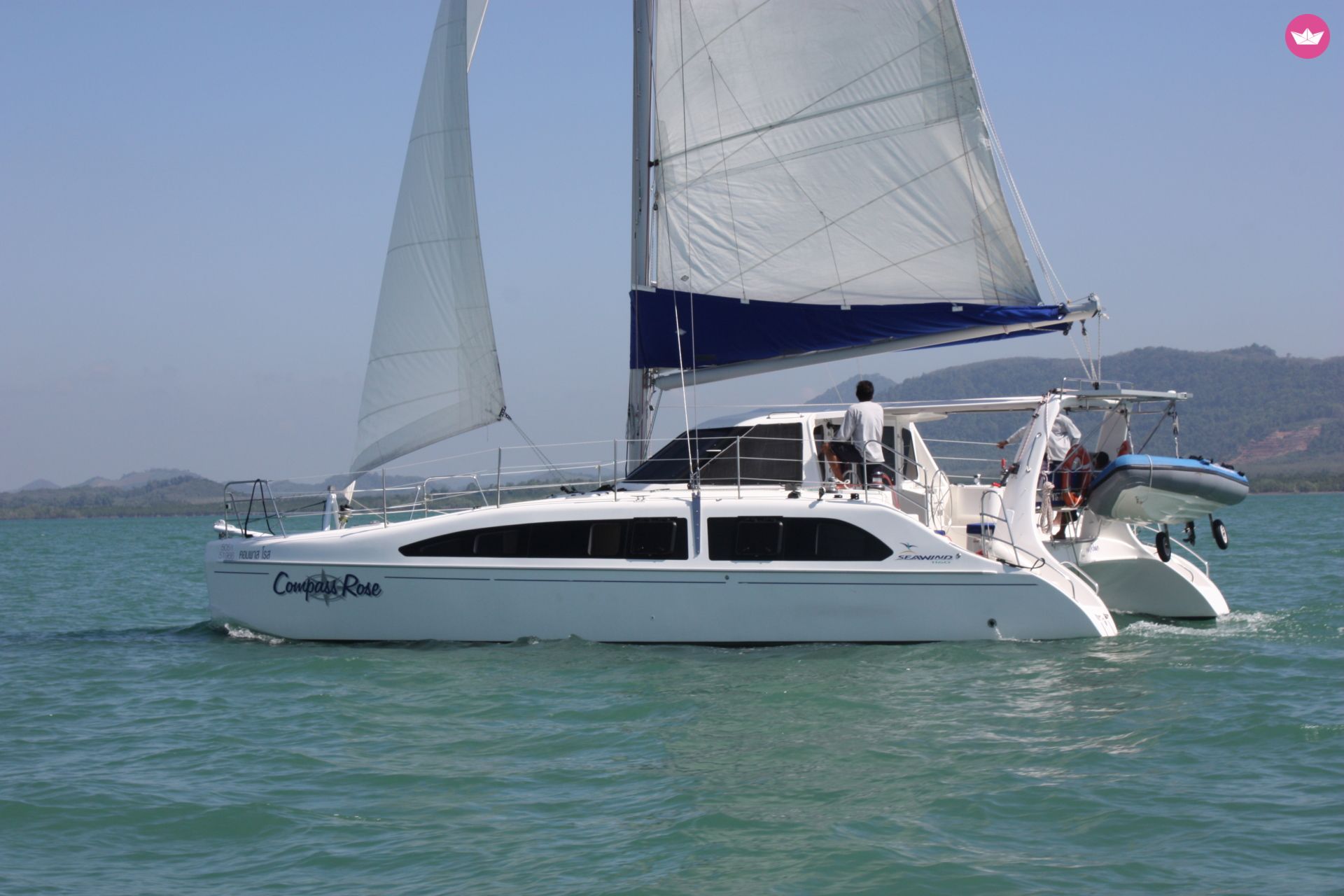 Description of Jessica's catamaran The multi-award winning 38ft Australian built Seawind 1160 Catamaran is renowned for its unrivaled utilization of space with its bi folding doors linking the saloon and cockpit areas. Up to 12 guests can appreciate the open and shaded seating on board Compass Rose, with more space also available on the forward trampaulines With twin motors and twin steering positions she is easy to control. Equipped with slab reefing mainsail. roller jib and screacher she is a breeze to sail All sail controls lead aft to the cockpit making any manouvre a simple operation. Minimum draft enables her to get into little inlets and stay near the shore without any challenges. The galley is well equipped and is furnished with a fridge and 2 coolers. Solar panels give 24-hour control and supply of hot water. The 4 bedrooms are all queen size and fitted with hatches and fans two seperate heads with electric toilets and showers. Also one deck shower. BBQ on deck under the cockpit bimini Also featuring for this boat are Special offers :- A day trip : Lunch for a day charter for 6 guests; breakfast, lunch, and dinner for an overnight charter for 6 guests; Soft drinks, water, beer, and wine; Kayaks; Standup paddleboards; Snorkeling gear; Extra cost for reference: 5000THB/day for the skipper 3000THB/day for the Hostess Hotel transfer can be arranged for an extra cost; National Park fees are to be paid extra when applicable (normally 400 THB per person).
