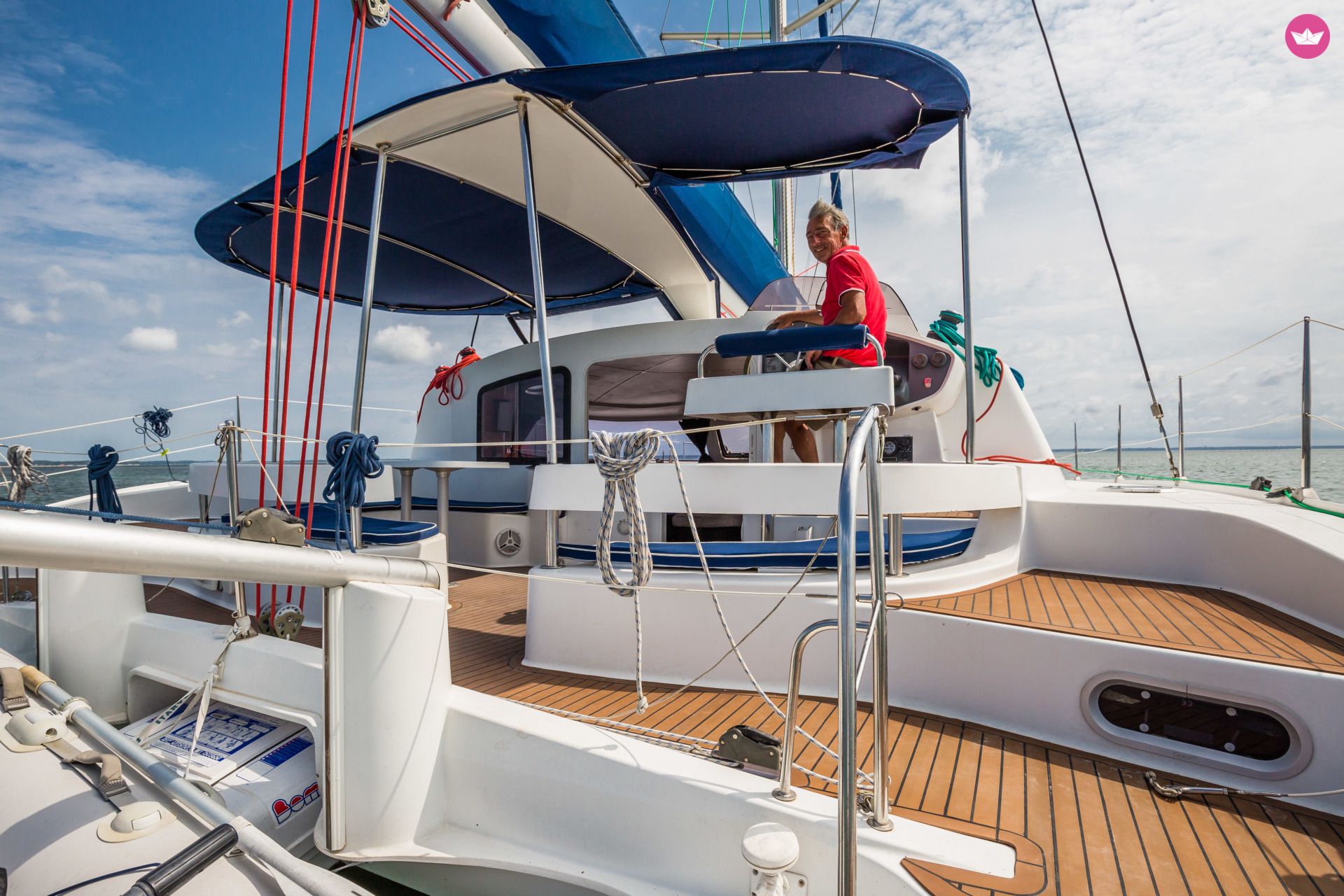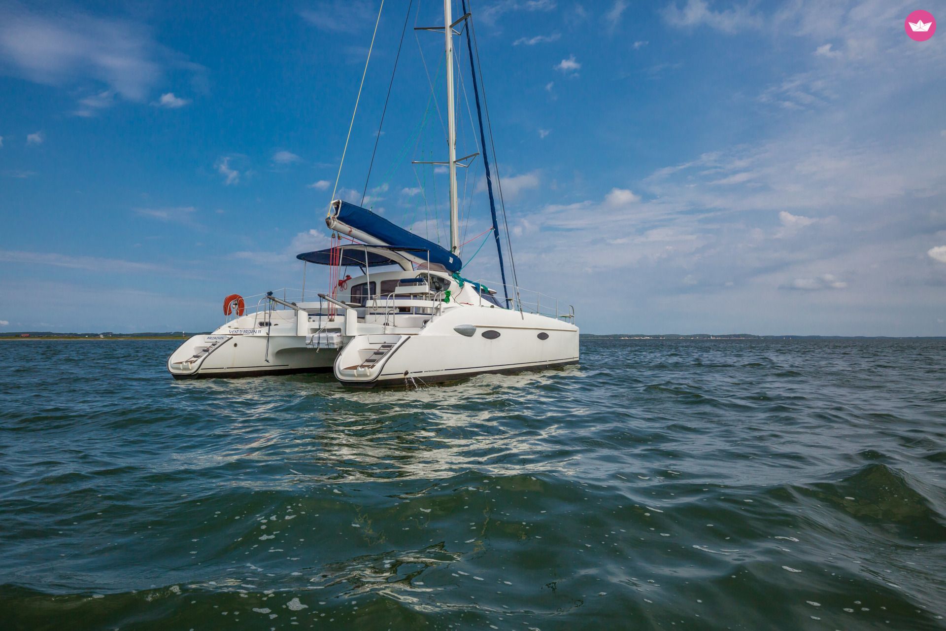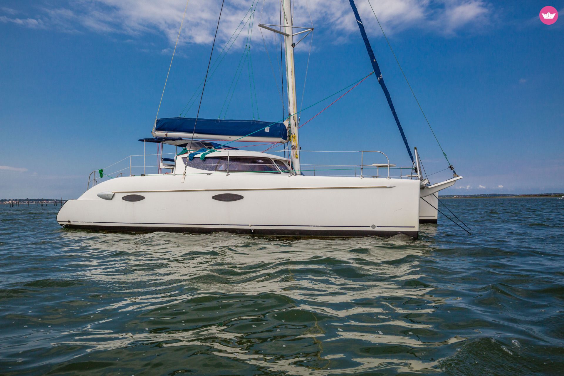 Description of Patrick's catamaran , Bonjour à tous, Ce catamaran à voile est en parfait état avec une place au port d'Arcachon. Le bateau est en version propriétaire et possède une coque tribord privative avec une cabine double et ses équipements, sa salle de bain avec WC, deux cabines doubles se trouvent dans l'autre coque avec une salle d'eau avec WC. On a donc un total de 6 couchages en cabine plus deux couchages possibles en transformant les carrés, idéal pour deux enfants. Le bateau est équipé d'un chauffage ainsi qu'un système d'eau chaude et froide sous pression avec une cuisine toute équipée. Idéal pour découvrir la dune du Pilat, le banc d'Arguin et l'île aux oiseaux. Bref un petit appartement avec vue à 360°sur l'eau. N'hésitez pas à me contacter sur la messagerie de Catamaran Yacht Charter pour plus d'informations.