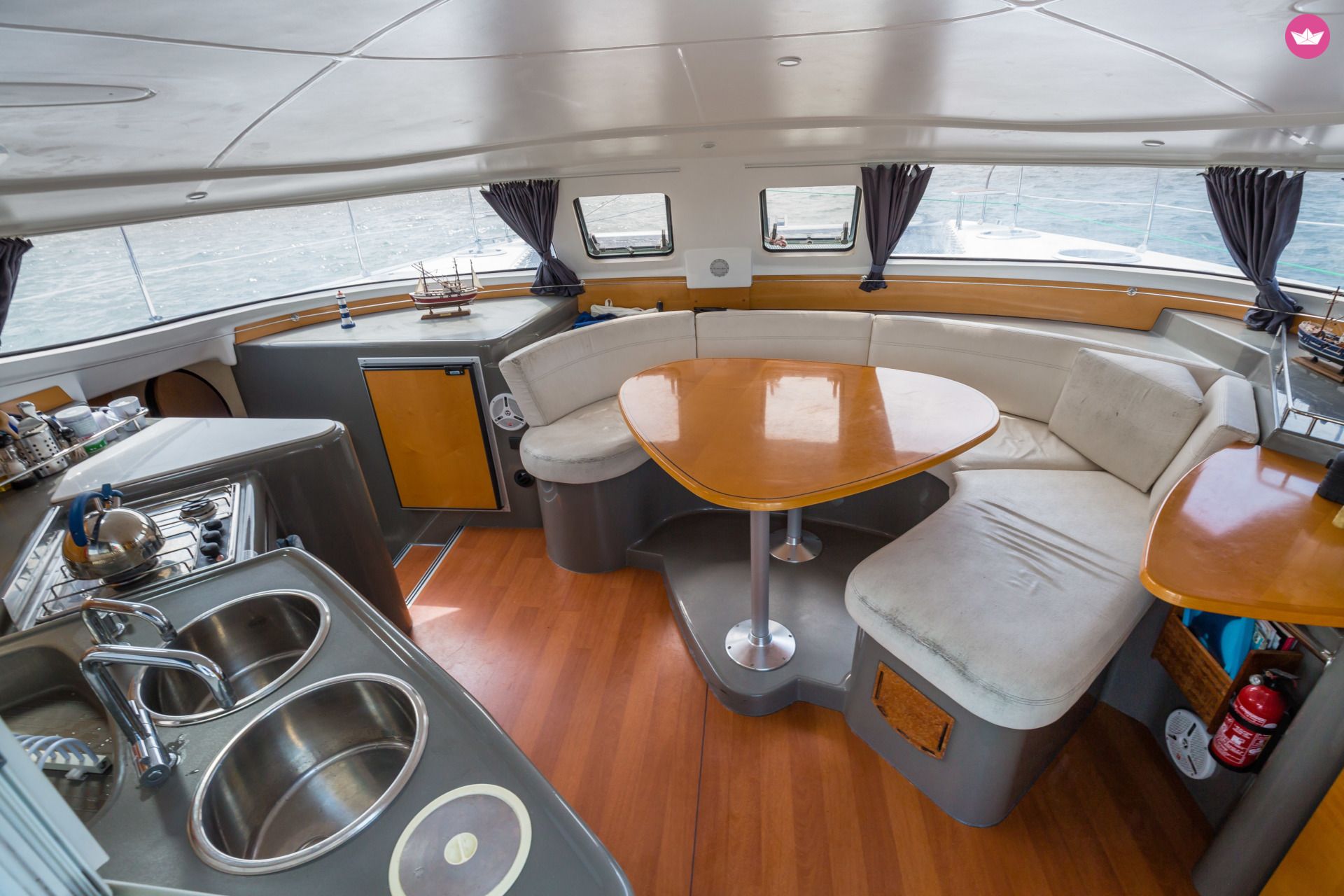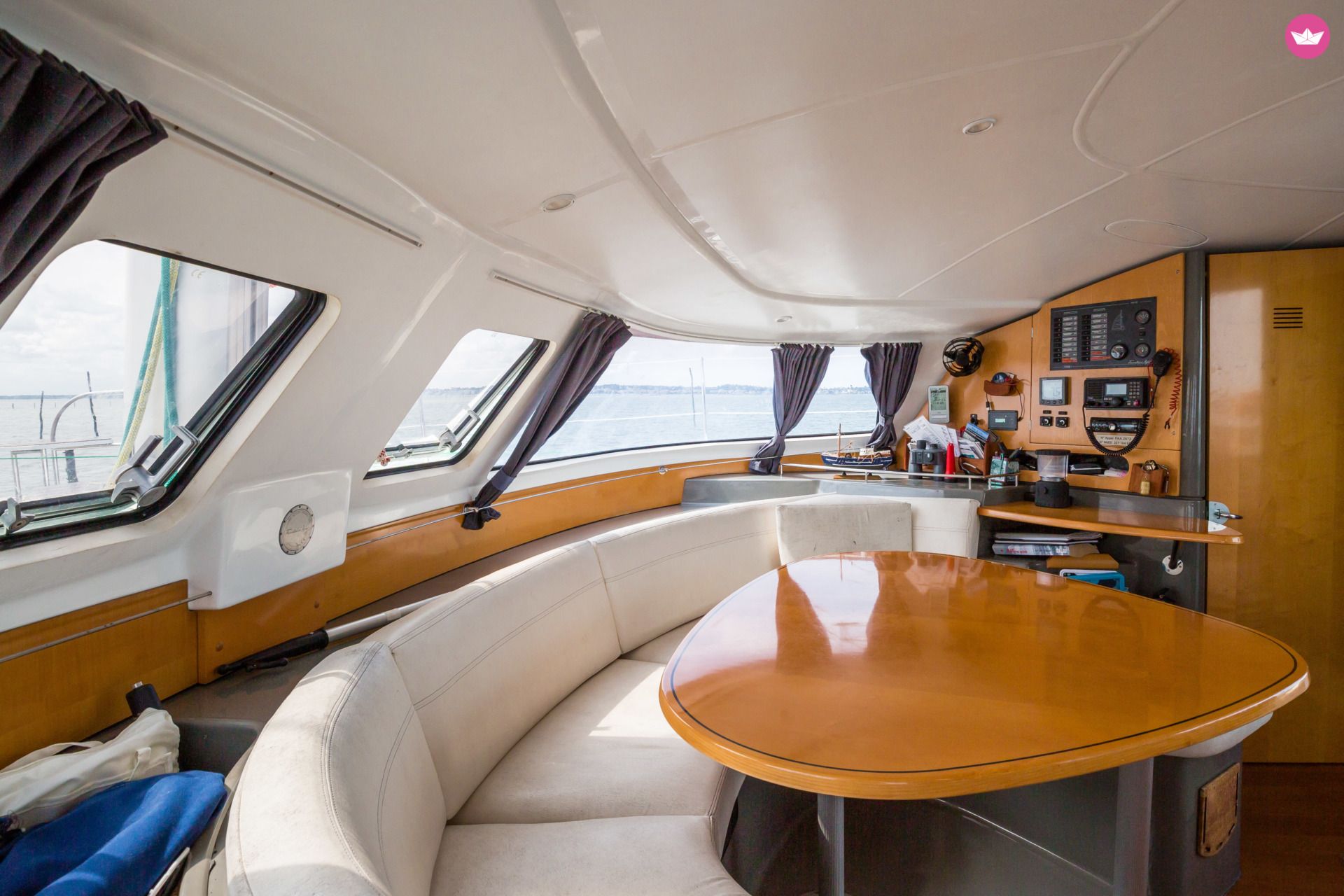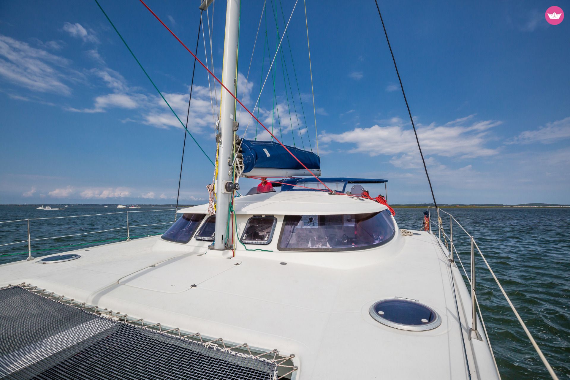 Description of Patrick's catamaran , Bonjour à tous, Ce catamaran à voile est en parfait état avec une place au port d'Arcachon. Le bateau est en version propriétaire et possède une coque tribord privative avec une cabine double et ses équipements, sa salle de bain avec WC, deux cabines doubles se trouvent dans l'autre coque avec une salle d'eau avec WC. On a donc un total de 6 couchages en cabine plus deux couchages possibles en transformant les carrés, idéal pour deux enfants. Le bateau est équipé d'un chauffage ainsi qu'un système d'eau chaude et froide sous pression avec une cuisine toute équipée. Idéal pour découvrir la dune du Pilat, le banc d'Arguin et l'île aux oiseaux. Bref un petit appartement avec vue à 360°sur l'eau. N'hésitez pas à me contacter sur la messagerie de Catamaran Yacht Charter pour plus d'informations.