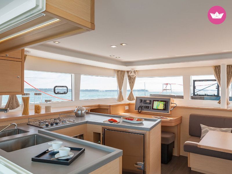 Description of María's catamaran , Alquileres DAY CHARTER: - T. Baja: 990€/dia - T. Media: 1.080€/dia - T. Alta: 1.260€/dia Fines de semana: - T. Baja: 2.178€ - T. Media: 2.340€ - T. Alta: 2.880€ EXTRAS: - Patrón: 150€ por día + 21% IVA - Fuera borda para auxiliar: 60€ + 21% IVA - Ropa de cama (sábana bajera+ 1 nórdico de 1.60cm * 90cm + 2 almohadas +2 toallas de cuerpo+ 1 totalla de manos) 30€ + 21% IVA por camarote. La litera en el salón se considera como camarote - Nórdico con funda (1.60cm*90cm): 15€ unidad + 21% IVA - Toalla de manos 6€ unidad + 21% IVA - Spi/Gennaker: s/v barco 90€ + 21% IVA - Traslados puertos alternativos 8€ la milla + 21% IVA - Transfers/Shutlle service: Según kilómetros y peaje Precios Incluyen • 21% IVA • Amarre en puerto base • Entrega de llaves y explicación de uso (30 min aproximadamente) • Asesoramiento náutico • Seguro a todo riesgo con fianza de 1.500€ • Gestión de permisos de fondeo en el Parque Nacional Marítimo-Terrestre de las Islas Atlánticas (Cíes,Ons y Sálvora). • Material de seguridad según zona de navegación Precios No Incluyen: • Limpieza final obligatoria: 90€ hasta el 4to día de alquiler y 120€ a partir del 5to día de alquiler incluido • Combustible • Amarres en otros puertos • Avituallamiento del barco • Patrón • Manutención del patrón (en caso de contratarlo) • Se penaliza la entrega del barco por demora con 60€ hora (sin fracción) + 21% IVA a partir de la media hora acordada en el check in. Este importe se deducirá automáticamente de la garantía Los esperamos en Catamaran Yacht Charter!