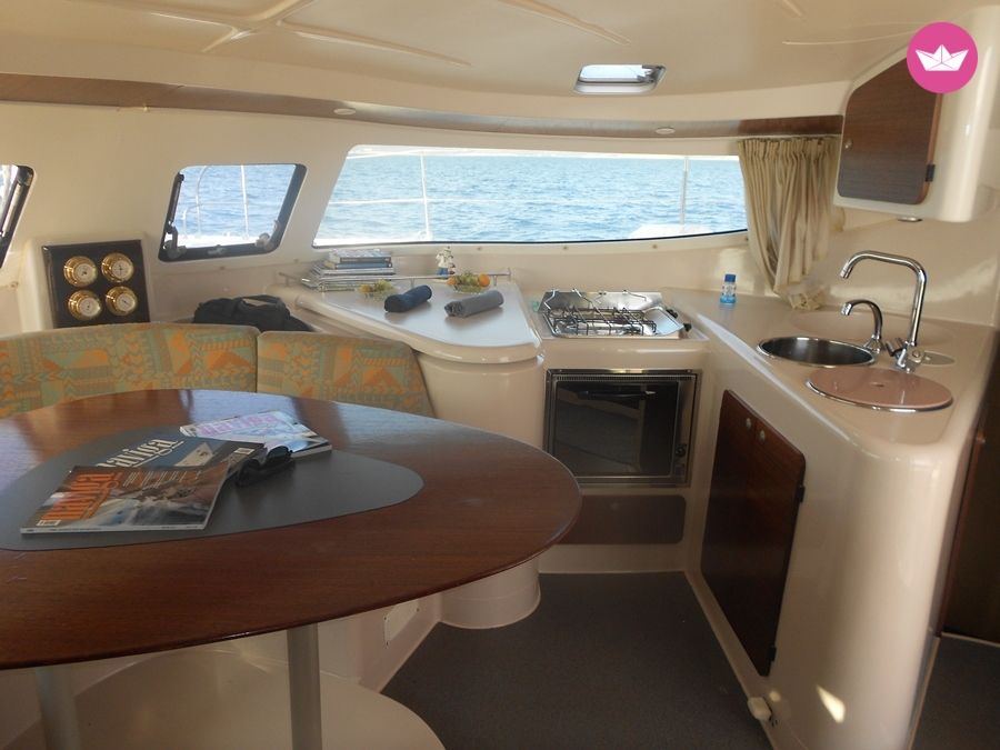 Description of Sailfleet's catamaran Things to keep in mind: - Check-in time is Saturday at 16:00 - Check-out time is Saturday morning, HOWEVER, the boat must be back in the dock by Friday at 18:00. Passengers can still spend the night aboard and leave on Saturday morning. _______________________________ Extra fees Obligatory: Final cleaning: 110.00 EUR per booking - Transit log: 90.00 EUR per booking Optional services: - Cook: 100.00 EUR per day + food - Hostess: 100.00 EUR per day + food - Skipper: 135.00 EUR per day + food [+ own cabin] - WI-FI Internet connection on boat: 20.00 EUR per week [2gb] Additional equipment (optional): - Extra bedlinen: 10.00 EUR per set - Extra towels: 5.00 EUR per set - Outboard engine: 50.00 EUR per week - Railing net (Safety net): 60.00 EUR per week [for children] - Stand up paddle (SUP): 60.00 EUR per week _______________________________ Enjoy a nice sail trip in Mediterranean with our beautiful boat. The boat has all the safety equipment and is perfect for group up to 8 guest as it has 8 berths and 4 cabins. Take a look in some of the best destinations ike in Rhodos island or Ölüdeniz, Kaş, Hisarönü, Datça, Bozburun and Kekova. Choose yours plan your trips and send us your booking request through Catamaran Yacht Charter.