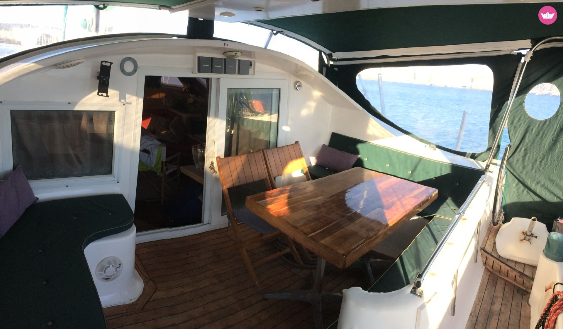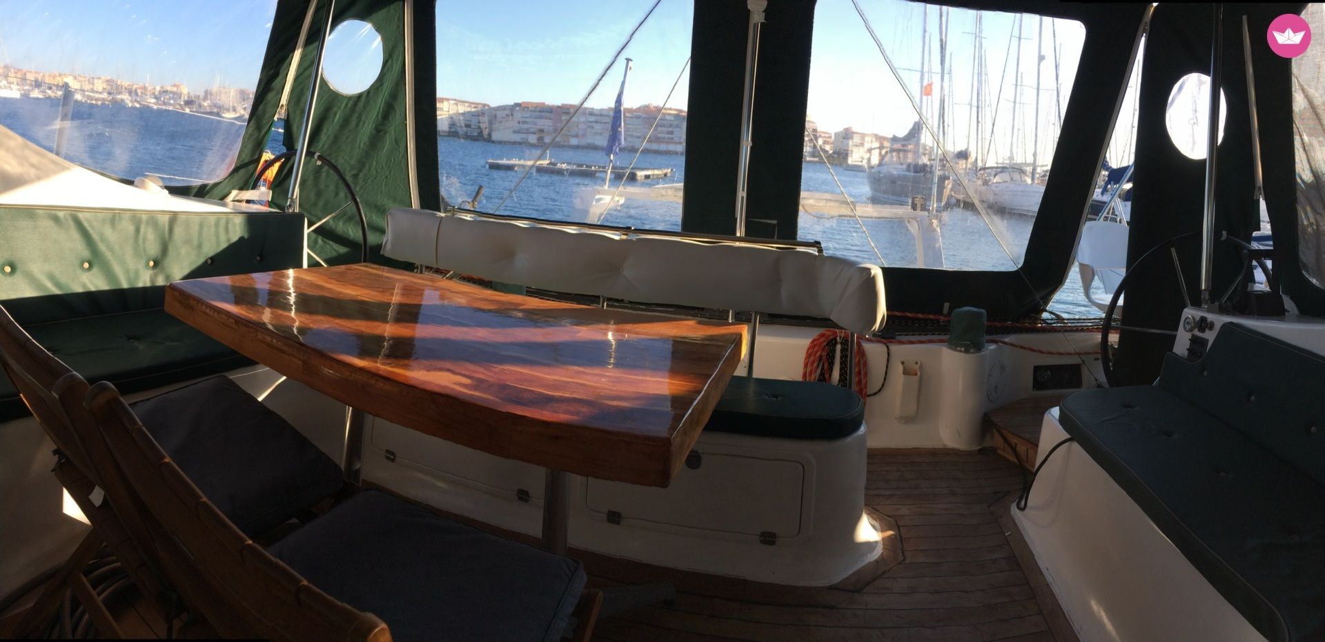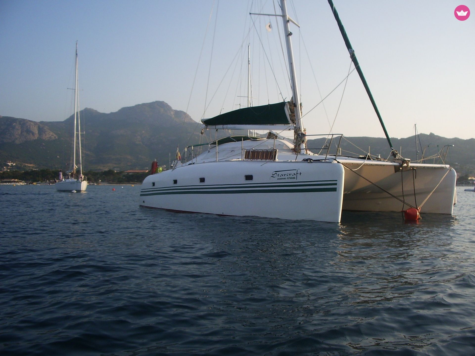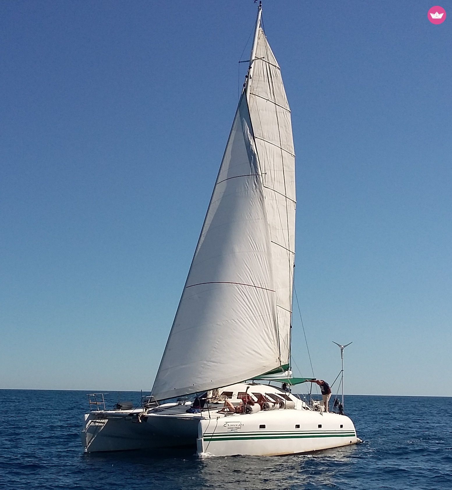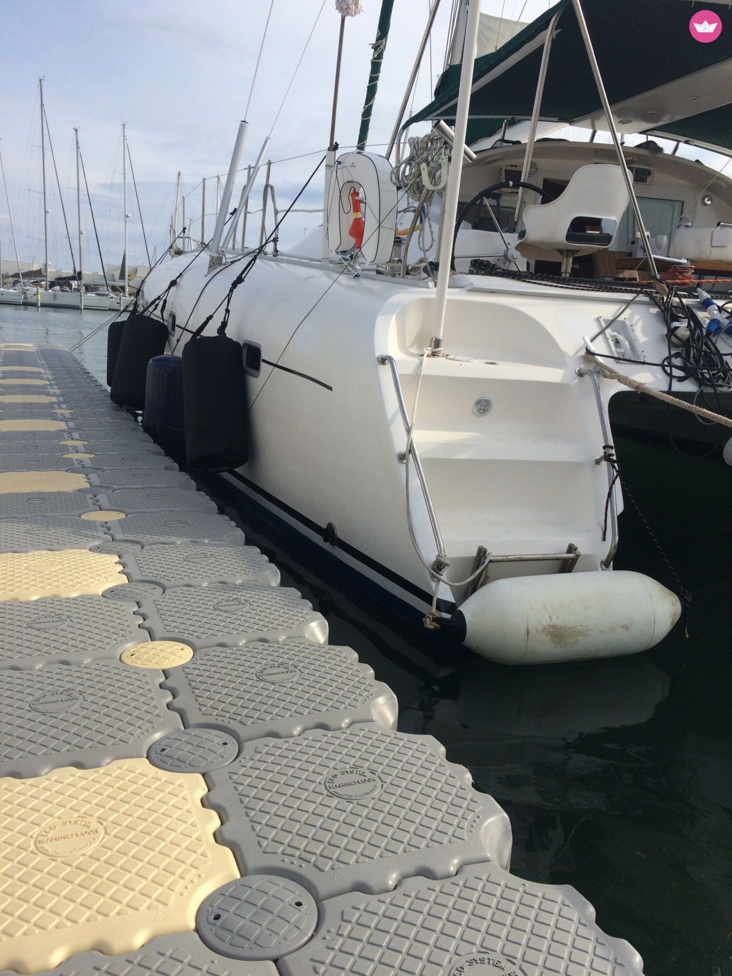 Description of Jean-Yves's catamaran , Bonjour à tous, Je vous propose des nuitées à quai à bord de mon catamaran situé dans le port du Cap d’Agde. Le bateau dispose de 4 cabines (8 couchages),1cabine au prix de 70€ l’unité la nuit.et 2 cabines à100€ l’unité la nuit. cependant comme je serai également à bord je pourrai accueillir un total maximal de 6 personnes. Le catamaran possède un équipement complet, vous retrouverez à l’intérieur une cuisine entièrement équipée : four, réfrigérateur, évier. Il dispose également d'un spacieux carré qui vous permettra de vous détendre. L'équipement électronique est également présent à bord, en effet le bateau possède une télévision ainsi que des prises USB et 220 volts. N'hésitez pas à me contacter sur ma messagerie Catamaran Yacht Charter pour obtenir plus d'informations.