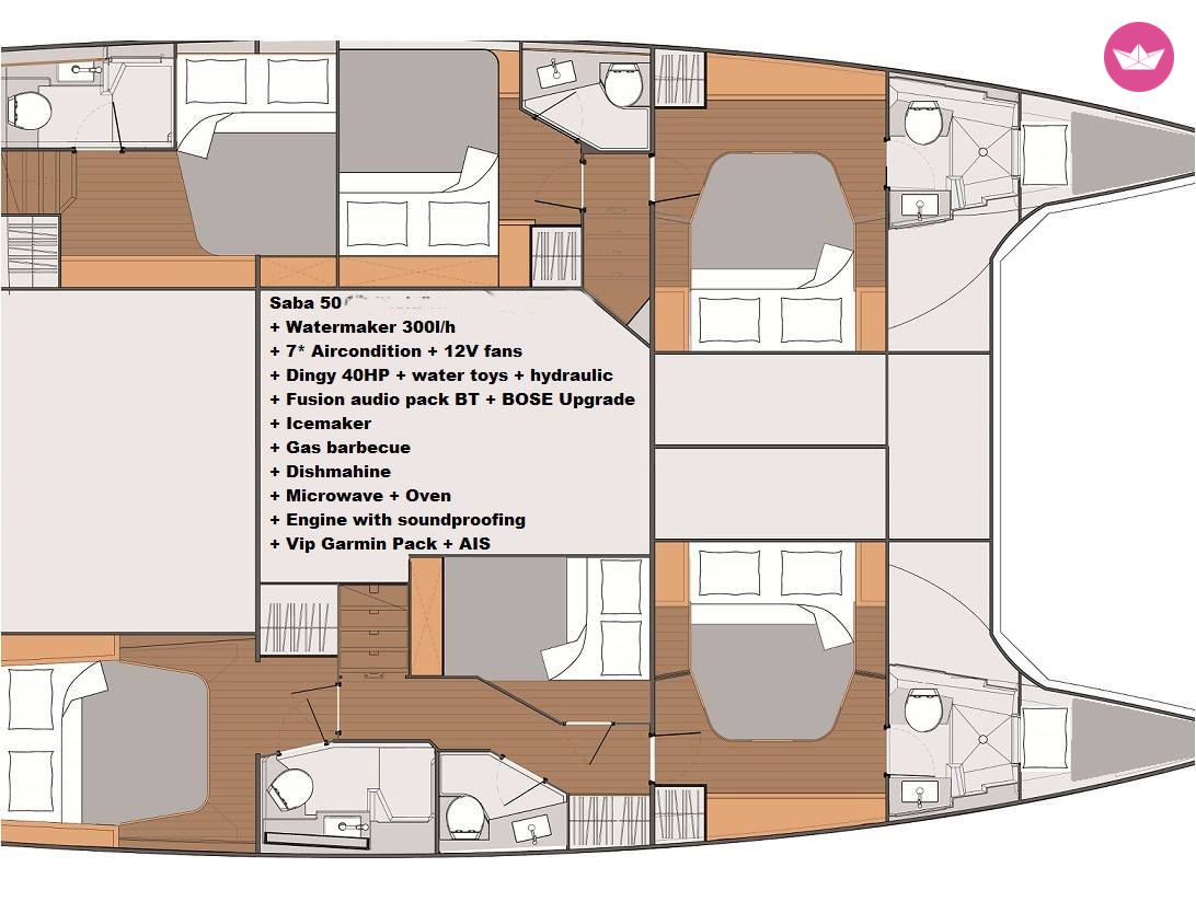 Description of Alicja 's catamaran Welcome to Cape Verde! Read carefully because you are not going to find anything like this. The price vs quality of this Saba 50 is incredible. We are talking about a brand new boat prepared to fill the most demanding need. The boat is fully equipped, you would have everything you need. If you love sailing, enjoy the sea with comfort this is your boat. Mandatory extras: - Skipper: 150 Euro / day + food - End Cleaning: 300 Euro / booking - APA 2,000 Euro / week Optional extras: - Hostess: 90 Euro / day + food - Cook: 130 Euro / day + food - Bin linen & towels 200 Euro / week The price includes: - Includes 7 day cruise - Dinghy with steering console and SUZUKI 40 HP engine - Inflatable toys (inflatable water sofa, inflatable banana) Do not hesitate to contact us through Catamaran Yacht Charter if you have any questions!!