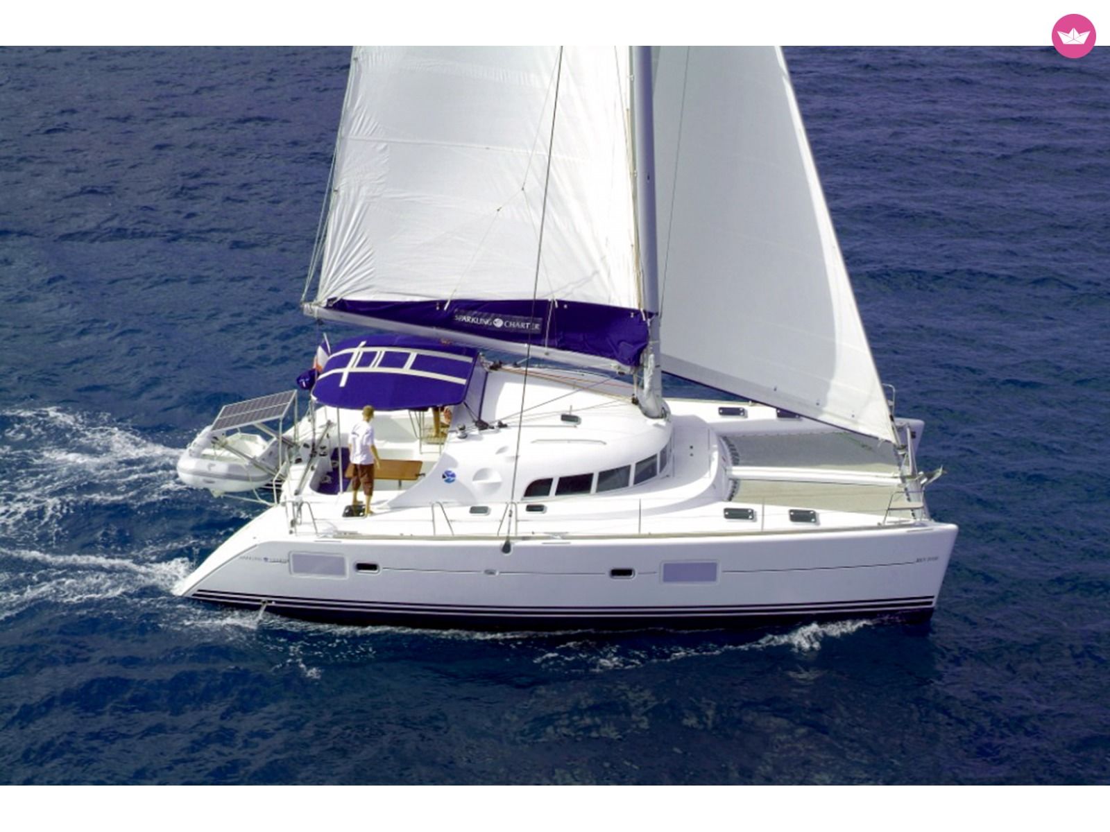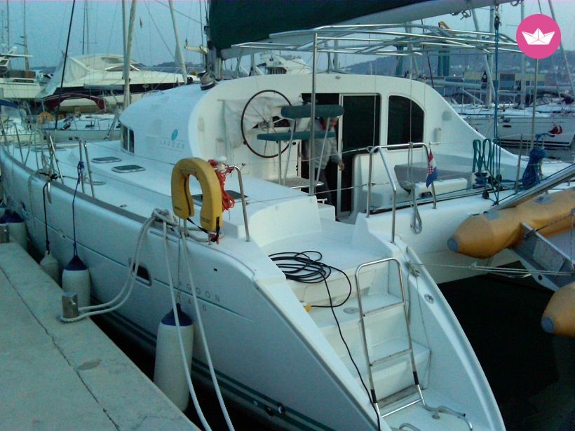 Description of Milena's catamaran Beneteau Lagoon 410 S2 is our catamaran available for charter. The beautiful multihull is located in Murter, in ACI Marina Jezera. This starting position is one of the most ideal starting harbors in Croatia because it allows you to work you way towards both south and north of Dalmatia depending on what you want to experience for your holiday sailing the Croatian seas. The adriatic sea, particularly so in this area is crystal clear and just the right temperature as a refreshment after a day of tanning and relaxing. The catamaran is equipped with all of the safety items you require for a safe and care free environment. The multihull was manufactured in 2002 and since it has been perfectly maintained and service by dedicated technicians so that it remains in best shape. The navigation and other equipment on boar are plentiful and you won't miss a thing with our catamaran. The boat is equipped with 5 cabins and 2 heads as well as a dining area and fully operational and equipped kitchen. There exist mandatory extra payments such as the Transit Log - 220 EUR, and 1 EUR per person per day as a port and tourist tax. There also exist extra costs you might want to take based on your needs and preferences such as skipper service - 150 EUR/day + food. If you have any questions about the yacht, the prices, discounts, extras or anything else, do not hesitate to contact me through Catamaran Yacht Charter.