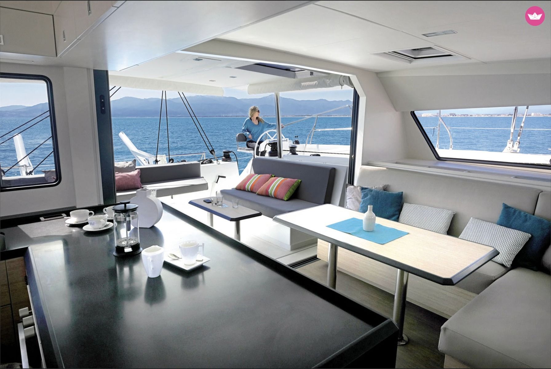 Description of Antoine's catamaran , Bonjour, Nous vous proposons à la location avec skipper, notre sublime Catana 53, disponible au départ de Cogolin. ** Une semaine de location minimum ** La capacité d'accueil à bord est limité à 8 personnes, de jour comme de nuit. On compte à bord 3 cabines doubles, 2 bannettes simples et 4 salles de bain. Ce catamaran est mis à l'eau en Juillet 2019, il est donc neuf, et full options : dessalinisateur, climatisation, cave à vin, lave-vaisselle, lave-linge, TV, machine à café, micro-ondes, générateur 7KVA, panneaux solaires .. Confort garanti, il ne vous reste plus qu'à définir votre itinéraire de navigation. Au départ de Cogolin, de nombreuses croisières s'offrent à vous ; cap vers la Corse, longer la French Riviera, rejoindre les côtes italiennes ... C'est à vous de décider ! * A prévoir en supplément : - Skipper obligatoire 300€ par jour. - Carburant consommé durant la location. Pour de plus amples renseignements, n'hésitez pas à nous contacter via la messagerie de Catamaran Yacht Charter en nous indiquant le nombre de passagers. Nous serons ravis de vous accompagner dans votre projet de navigation. A bientôt,
