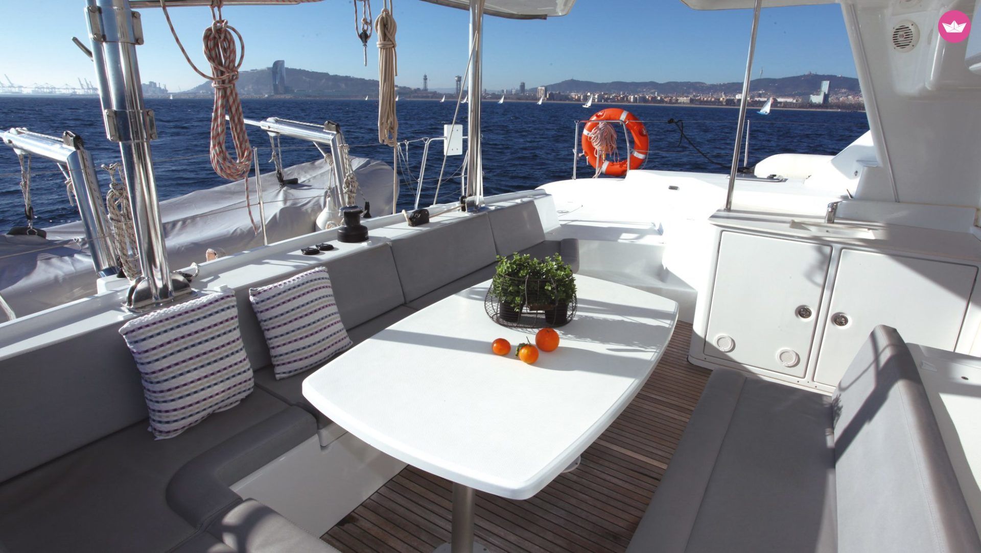 Description of Deborah's catamaran , Noleggio questo meraviglioso Lagoon 440 per trascorrere rilassanti giornate in compagnia della famiglia o degli amici. I catamarani sono il mezzo ideale per chi vuole veleggiare senza dover rinunciare al comfort di casa grazie ai loro grandi spazi e la loro stabilità. Questo Lagoon 440 dispone di quattro comode cabine con letto matrimoniale a disposizione degli ospiti e di quattro bagni con doccia. La dinette è ampie e comoda e include un grande tavolo con divano per mangiare all' interno, cucina attrezzata per molteplici preparazioni e il tavolo da carteggio. Il catamarano è dotato di aria condizionata in tutti gli ambienti interni. All'esterno c'è un comodo pozzetto con tavolo e divano per mangiare all'aria aperta, a prua invece c'è un prendisole e una zona relax con divano e cuscini. Questo catamarano fa base a Portorosa, da qui potrete comodamente veleggiare verso le meravigliose isole Eolie e fare stupendi bagni in una delle tante calette presenti in zona. Il costo dello skipper(obbligatorio) è di 150€/giorno, su richiesta è disponibile anche una hostess al prezzo di 120€/giorno. Scrivetemi su Catamaran Yacht Charter per avere maggiori informazioni!