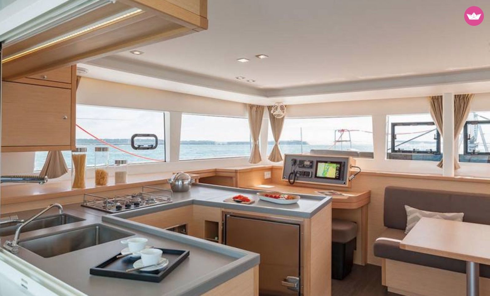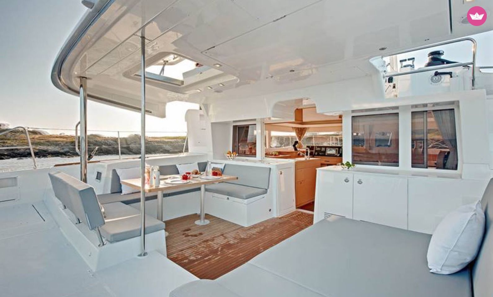 Description of Danilo's catamaran , Noleggio meraviglioso Lagoon 450F, un’imbarcazione di 14 metri ideale per soddisfare le esigenze dei viaggiatori più esigenze. Gli spazi comuni sono ampi e ideali per passare indimenticabili momenti in compagnia all'insegno del relax e del divertimento. Questo catamarano è il mezzo ideale per avventure alla volta delle isole Tremiti, della Croazia della costa dei Tranocchi, del Gargano e di Termoli. La barca dispone di ampio prendisole di prua e salone esterno a poppavia con tavolo da pranzo e comodi divani con cuscineria. Il fly bridge panoramico inoltre da la possibilità di godere di panorami mozzafiato. All’interno del catramarono un grande salone interno con cucina completamente equipaggiata accoglierà tutto l'equipaggio. La barca dispone di 4 comode cabine matrimoniali più una dinette convertibile e due cabine per lo skipper e il marinaio. Extra Obbligatori: - skipper 150€ - carburante - pulizie finali 200€ - cambusa - porti Il catamarano è il mezzo ideale per una crociera da sogno all’insegna della comodità e del divertimento, contattatemi su Catamaran Yacht Charter per maggiori informazioni!