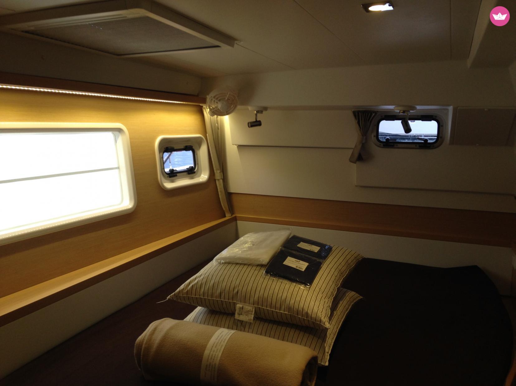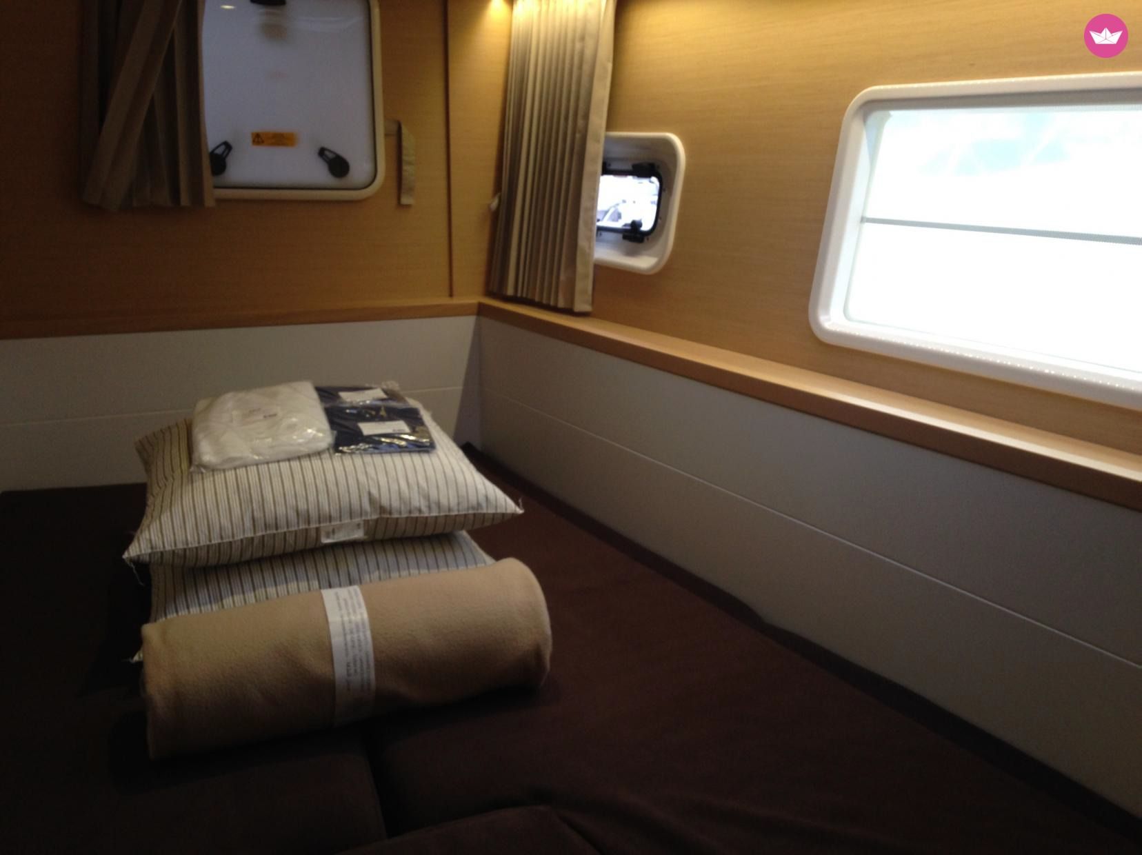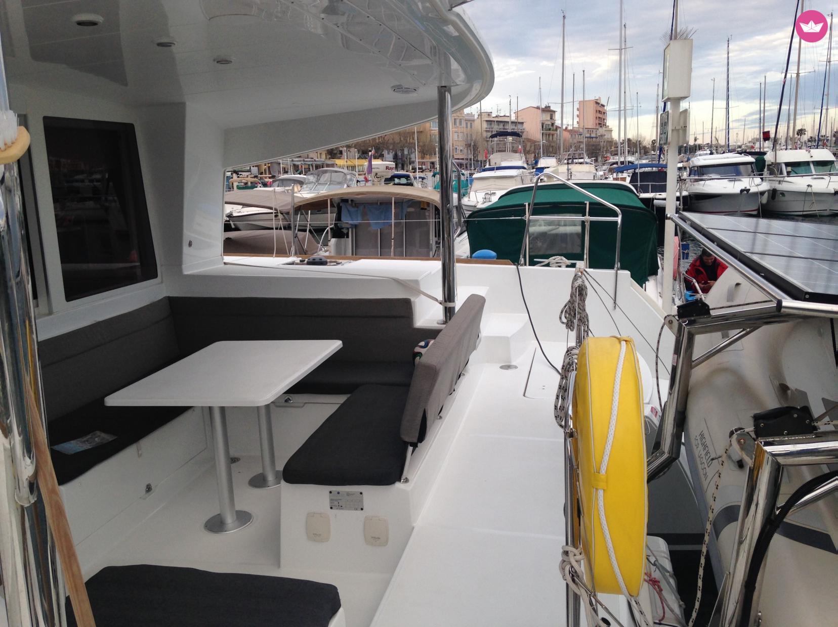 Description of Rodolphe's catamaran , Bonjour, Vous pouvez louer ce catamaran avec ou sans capitaine depuis Golfe Juan (proximité Vallauris) pour découvrir les beautés de la Côte d'Azur : d'abord le Golfe de la Napoule, les Îles de Lérins (Sainte Marguerite et Saint Honorat par exemple) puis décidez d'aller : - Vers le Golfe de Saint-Tropez et pourquoi pas les Îles d'Hères (Porquerolles, Port Cros, l'Île du Levant) ; - Du côté de Nice, Saint Jean Cap Ferrat, puis le Cap d'Ail et Monaco ; - Vers le nord de la Corse et Calvi, l'Île Rousse, le Cap Corse... Ce Lagoon 400 S2 de 2014 est le catamaran qu'il vous faut pour explorer la Méditerranée, avec ses 4 cabines, les 2 pointes à l'avant et le carré potentiellement transformable, c'est jusqu'à 12 personnes qui pourront monter à bord de cette unité. Ainsi n'hésitez pas à nous contacter pour prévoir ensemble vos prochaines sorties depuis Golfe Juan. ***** Option obligatoire ***** - Nettoyage fin de location : 230 € ***** Options facultatives ***** - Moteur hors-bord : 60 €/semaine - Ocean kayak ou Paddle : 80 €/semaine - Coach plaisance : 250€/jour - One way : Nous consulter - Literie coton et serviettes de toilette : 45 €/cabine. - Frais de port (1ère et dernière nuit offerte) : 55 € - Parking : nous consulter. Location longue ou courte durée : - 4 jours : 70 % du prix de la semaine - 5 jours : 85 % du prix de la semaine. - 2 semaines et plus : remise 10 %. N'hésitez pas à nous contacter via la messagerie Catamaran Yacht Charter pour de plus amples informations. À bientôt !