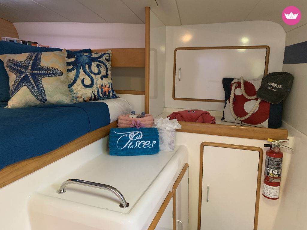 Description of Scott's catamaran This luxury sailing catamaran offers three guest cabins and high end touches S/Y Pisces is a 47' luxury Sailing Catamaran (Robertson and Caine) with a spacious salon and galley kitchen that opens on to an expansive back deck with comfortable seating and dining. The bow of the boat offers more relaxing seating with bean bag chairs and two large trampolines for great conversations, breezy tanning or intense whale watching (certain times of the year). You'll almost always catch a dolphin or sea turtle in the clear warm waters of the Caribbean. Each of the three available cabins has a serenely tranquil queen bed with en-suite bathroom and shower. The cabins are air-conditioned at night to ensure the ocean will rock you to into a perfectly restful sleep. With plenty of water toys to keep you entertained throughout the day, you'll certainly enjoy the Stand Up Paddleboards (SUPs), floats, snorkel gear or perhaps spend time behind the brand new 14' Achilles center console tender with a 40hp engine as you kneeboard or ski on the calm waters in the bay. You'll wake up feeling refreshed and be met with a warm cup of coffee and a tasty breakfast to start your day as you sail through the British and the US Virgin Islands. The Captain will take you to quiet snorkeling stops where your senses will be delighted with a wide array of tropical fishes and corals. Next, you will be whisked away to some prime stops within the BVI for you to enjoy time soaking up the local culture and lunch or dinner; from Foxy's on Jost Van Dyke to the Baths on Virgin Gorda or our favorite gem of a place on Cooper Island. If you're a certified SCUBA diver or interested in a Discover SCUBA course, we can arrange for open-water dives for you and your group. Dinner aboard the Pisces can include fresh lobster or mahi-mahi on a bed of orzo pasta with locally sourced vegetables; all skillfully prepared by your incredible Chef/First Mate. A nightcap on the bow under the stars before you retire to your cabin will complete the perfect day on the water, only to begin again the next morning. Join Us Won't You, For a Vacation Beyond Compare! Rates quoted are for Captain Only. Rates do not include food, beverages, fuel, customs fees, mooring fees or any incidental expenses. SY Pisces does have an all-inclusive rate S/Y all inclusive rate includes Captain and Crew/Chef and moorings, taxes, permits, fuel, captain and crew and onboard meals and drinks as you sail through the British and US Virgin Islands. 6 person $14,000 USD 5 person $13,500 USD 4 person $13,000 USD 3 person $12,500 USD 2 person $12,000 USD SY Pisces is certified for 12 guests and 2 crew. Each additional guest over 6 is $250 per person, however, sleeping arrangements would need to be discussed since SY Pisces has 3 cabins available for guests. The fourth cabin is reserved for Captain and Crew. Additional $2000 USD for Christmas and New Years Weeks. New Years to start 12/28 through 1/6: $15,000 Contact us for bareboat rates and requirements.