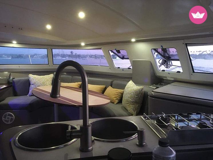 Description of Reuben's catamaran Come explore the amazing Newport Beach area and have a blast on the water with this amazing Fountaine Pajot 42' Catamaran which can accommodate up to 6 passengers. This spacious Catamaran is the perfect match to enjoy a thrilling experience on the sea or simply to relax on board. It has everything needed for a memorable time on the water. There are lots of remarkably comfortable seating, sleeps for 6 people, sweeping views from both indoor & outdoor salons, 2 Heads with Showers, a fully Equipped Kitchen: Coffee Maker, Cook Top, Stove, Refrigerator and Freezer, BBQ. Also included a TV/DVD, Bluetooth and 2 Zone Stereo. Some Kayaks, Wind Surfer, Snorkel Gear are provided. (Pet-friendly accommodations) Rates: Half day/4H: $1450 Full day/7H: $1731 Contact me on the Catamaran Yacht Charter messaging if you have any questions.